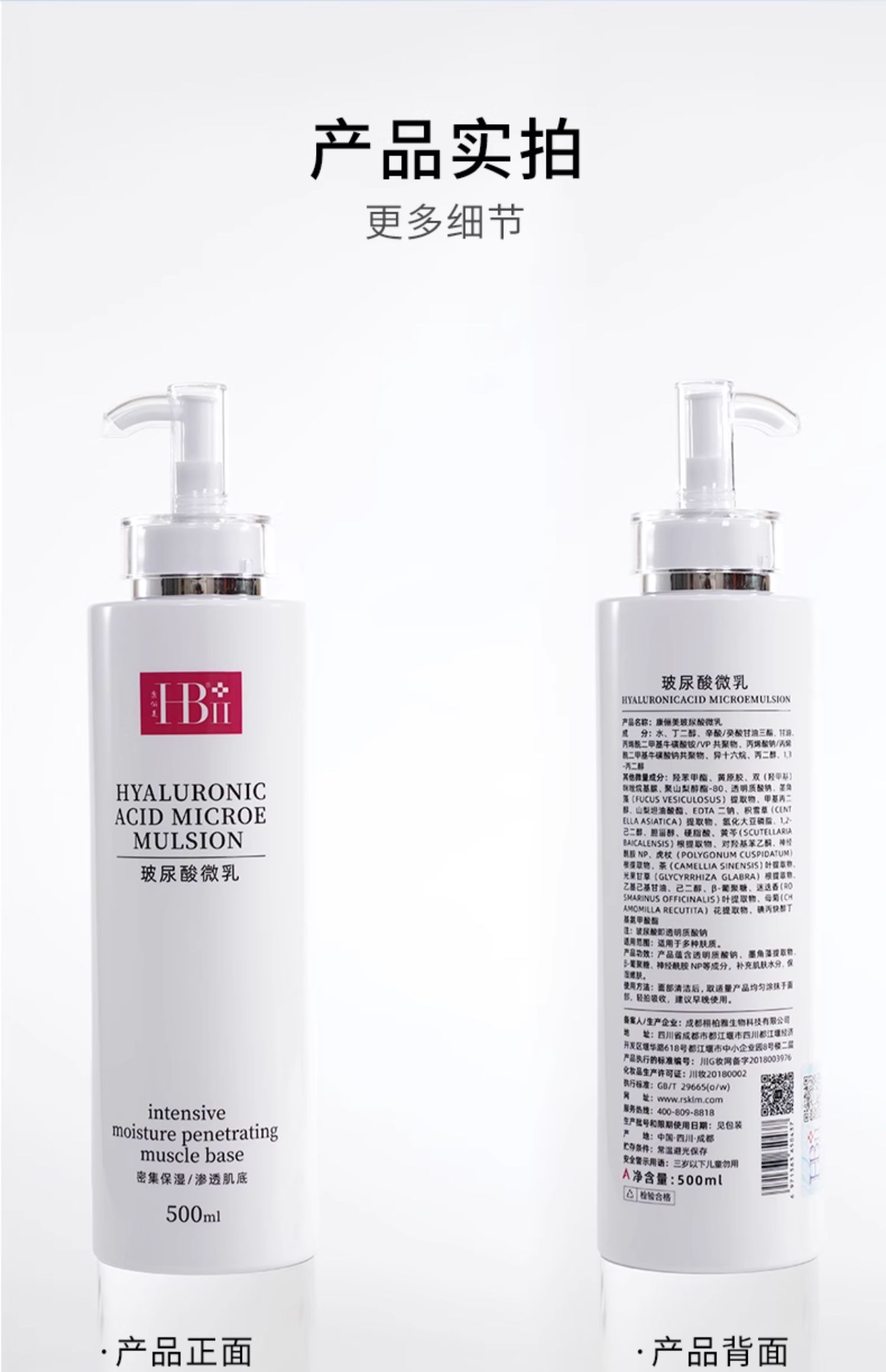 HBII Hyaluronic Acid Microemulsion 500ml is delicate, moisturizing, moisturizing and softening the skin