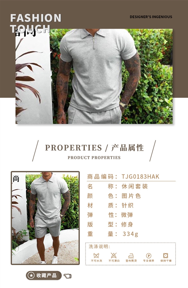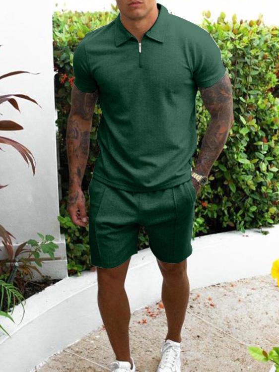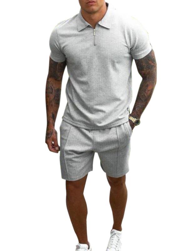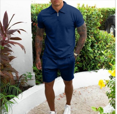 Summer cross-border explosive European and American Amazon men's casual short-sleeved slim shorts sportswear handsome men's two-piece set