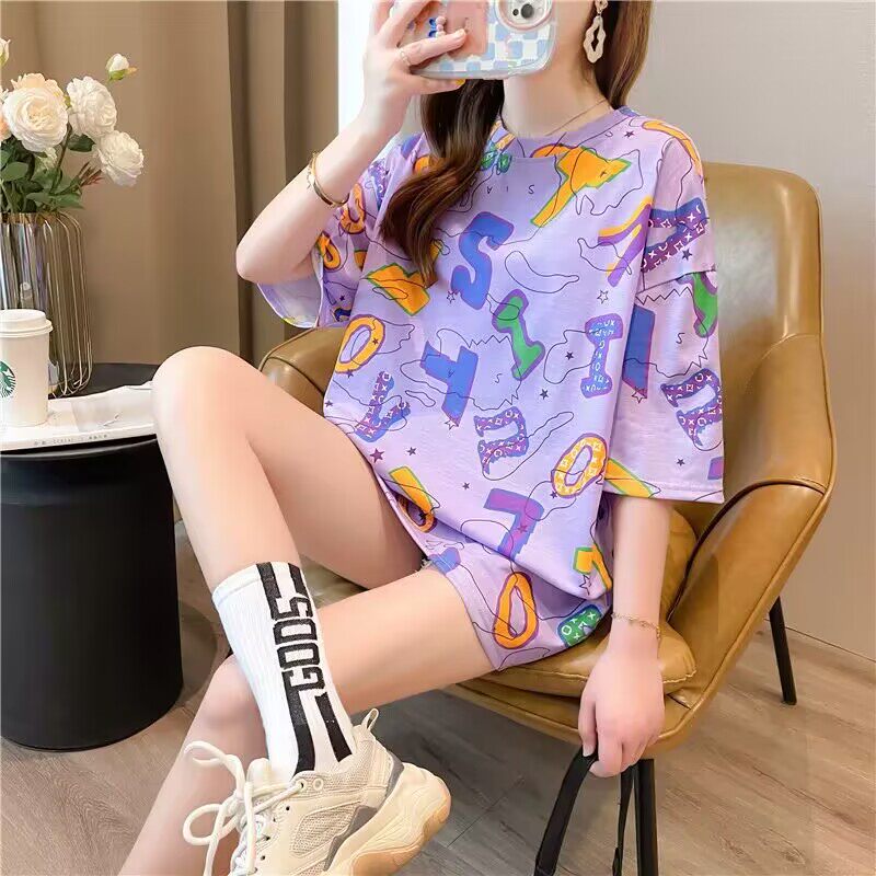2026 new summer plus-size T-shirt women's short-sleeved plus-size women's slimming mid-length loose Korean printed top