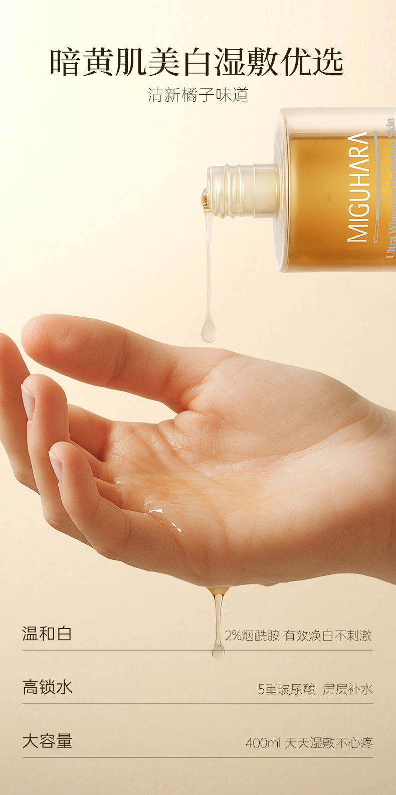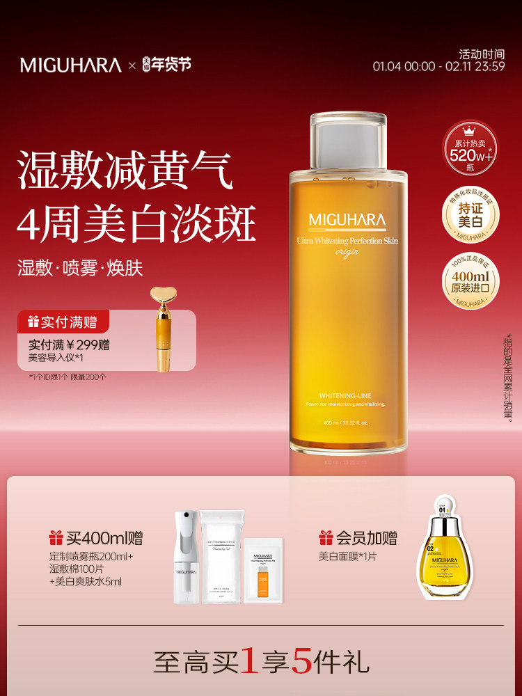 MIGUHARA Wet Compress Miguhara Whitening and Spot Lightening Toner Brightens, Moisturizes and Moisturizes