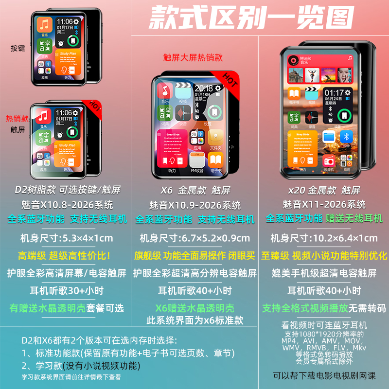 Dongda Meiyin full screen MP3MP4 Walkman student version Bluetooth high school students special touch screen P3 player