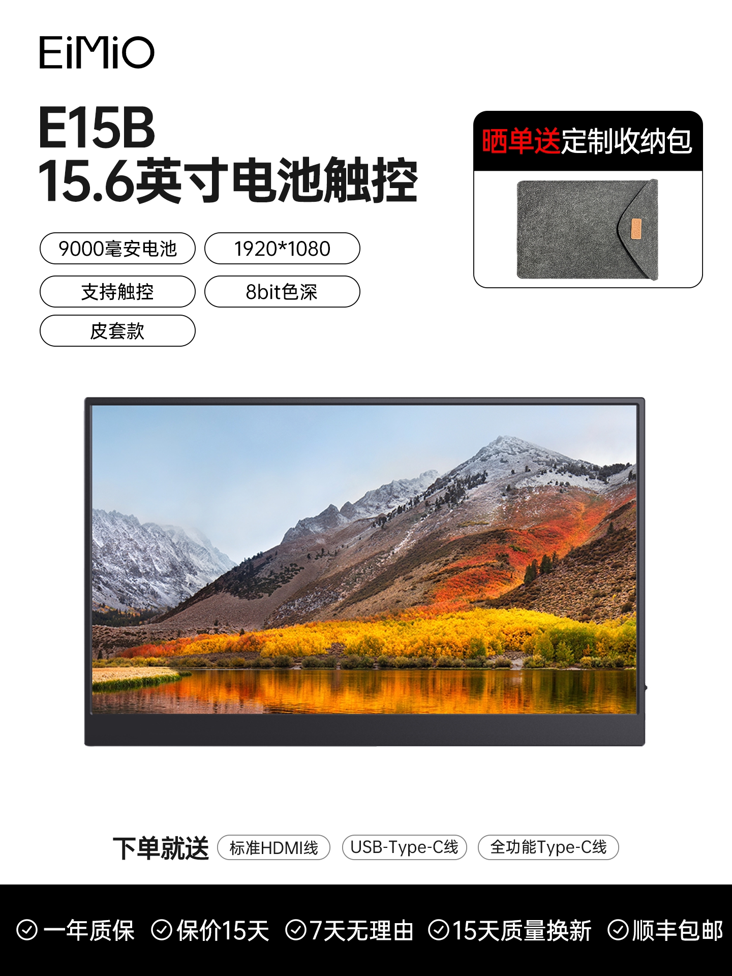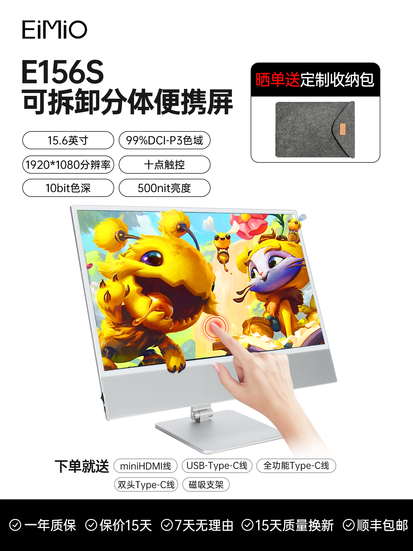 EIMIO4K touch portable display, mobile phone wireless projection, laptop expandable display, secondary screen