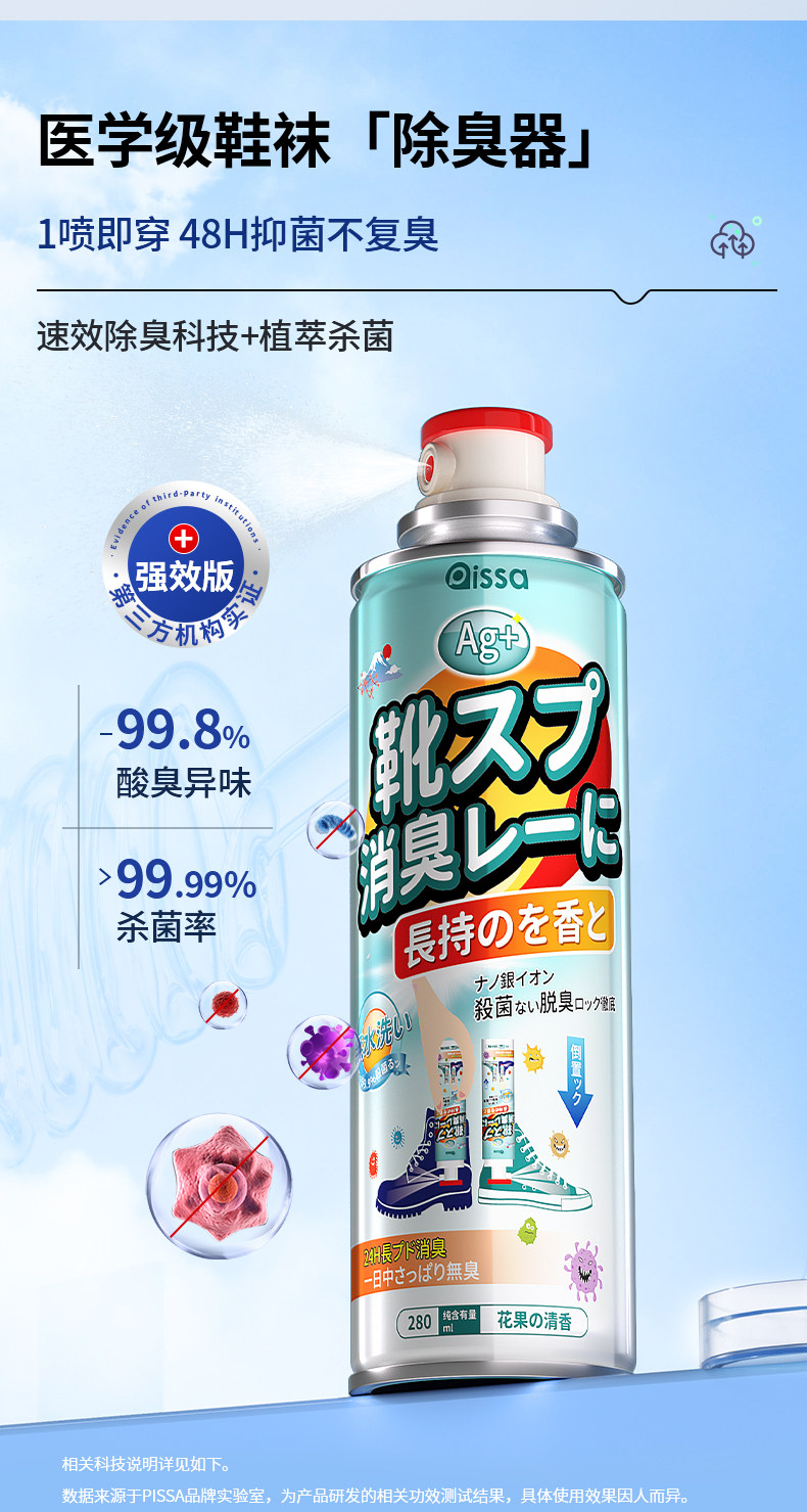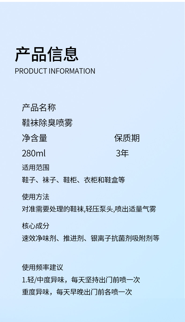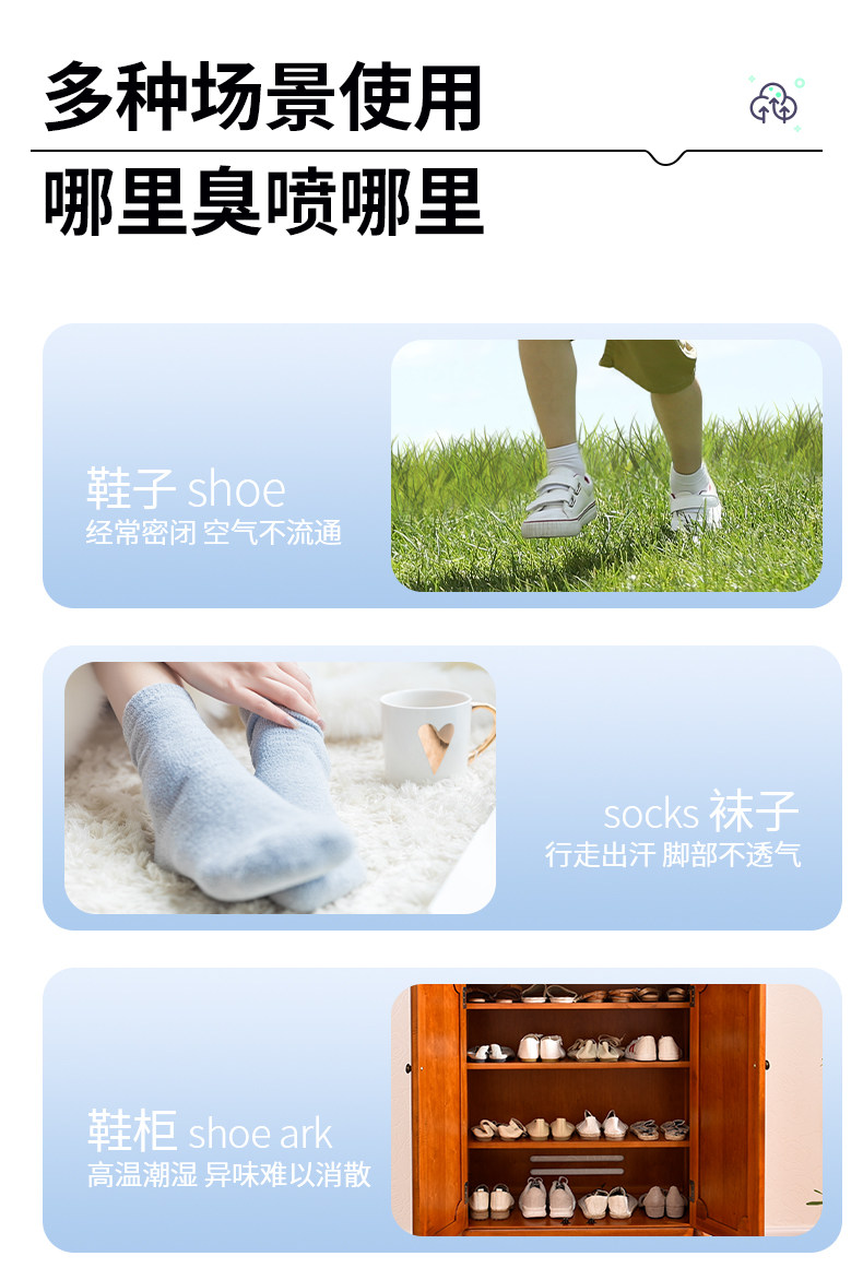Shoe deodorant spray, sneakers, shoes and socks, sneakers, anti-odor shoe cabinet, odor removal, sterilization, sterilization, disinfection artifact
