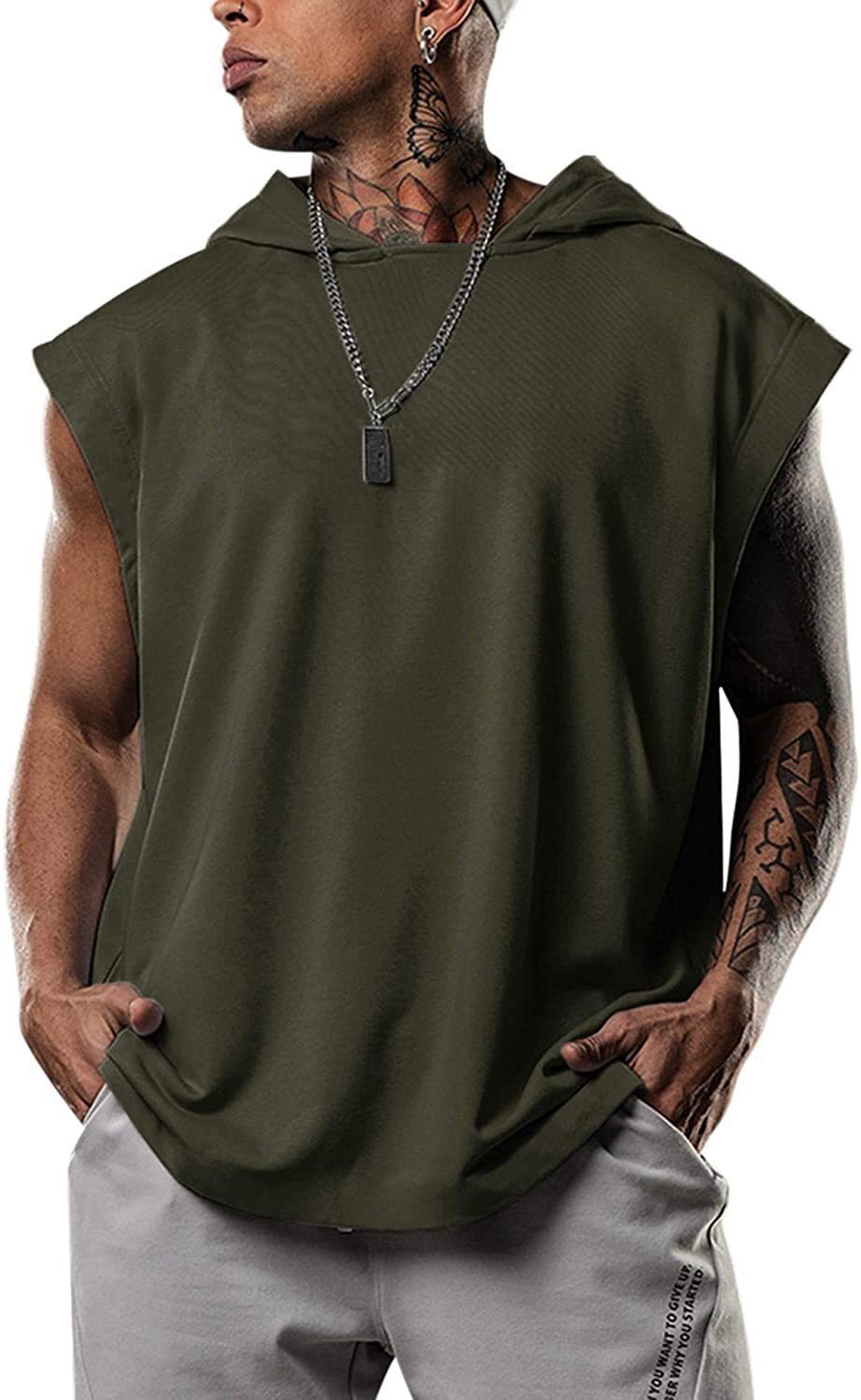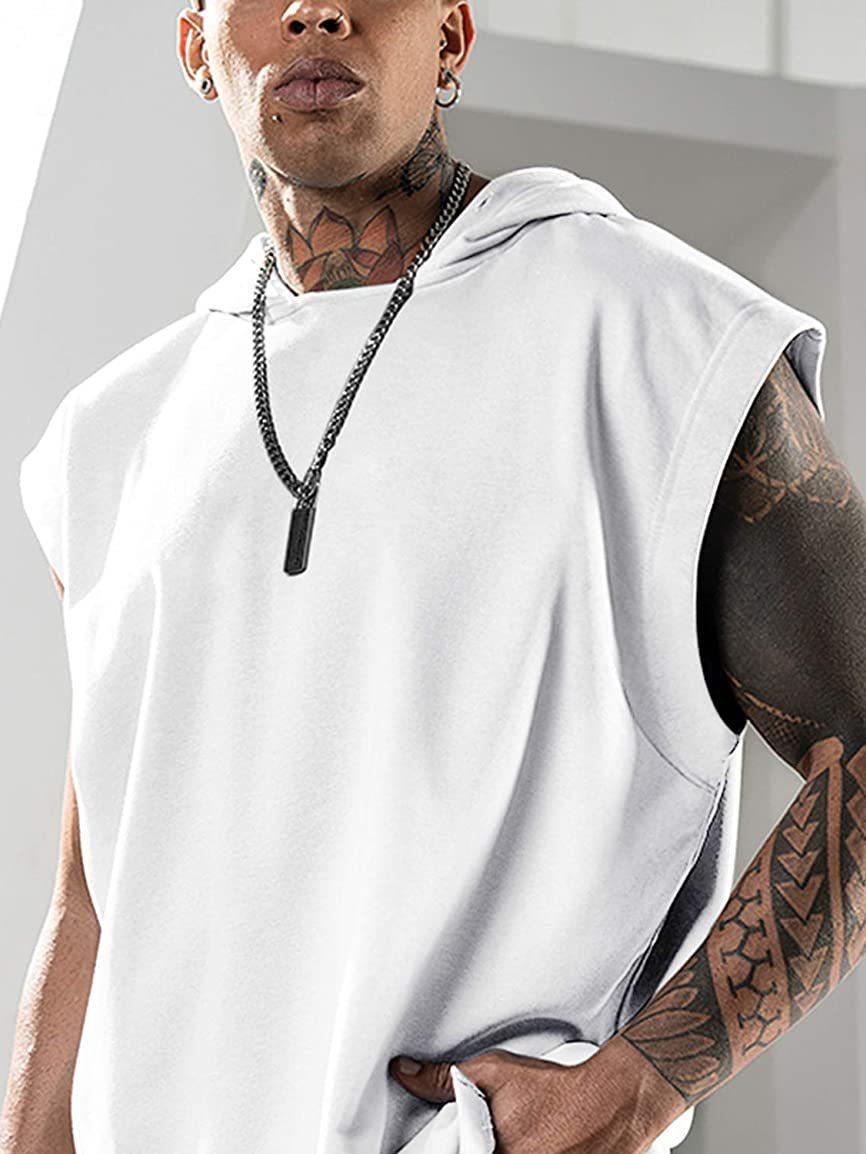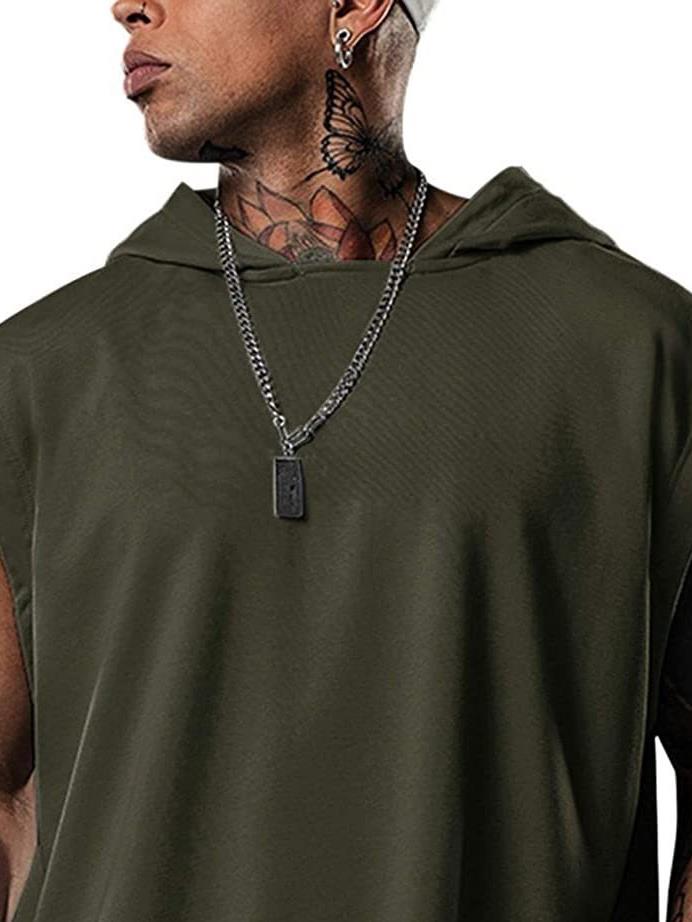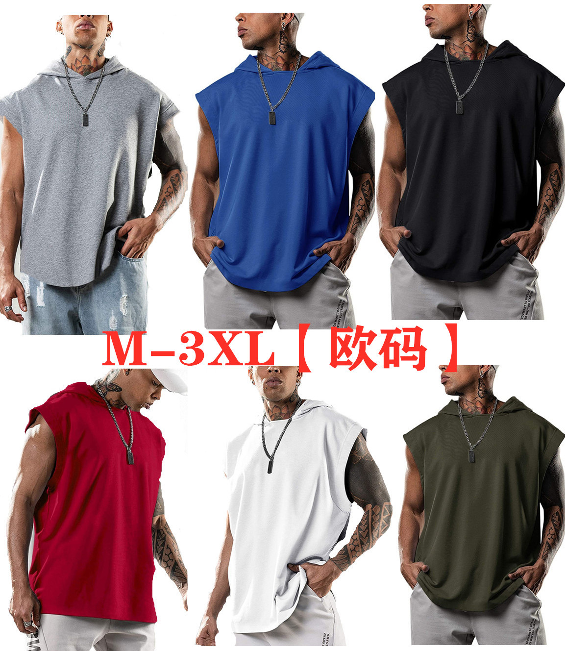 Foreign trade men's 2025 summer men's print hooded sports sleeveless vest plus size loose t-shirt men t-shirt