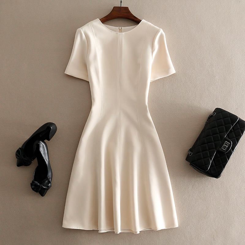 AMT Summer 2025 New French Hepburn Style Temperament Slim Little Black Dress First Love Solid Color Short Sleeve Dress