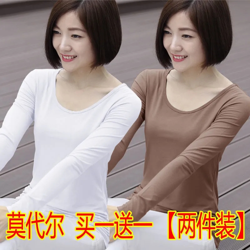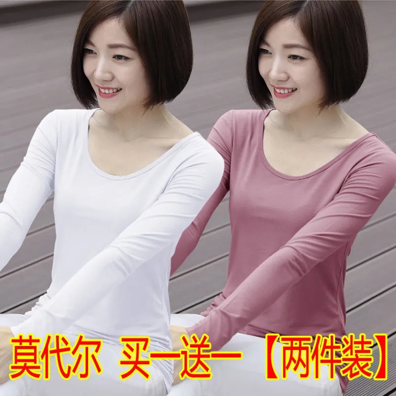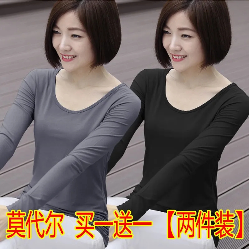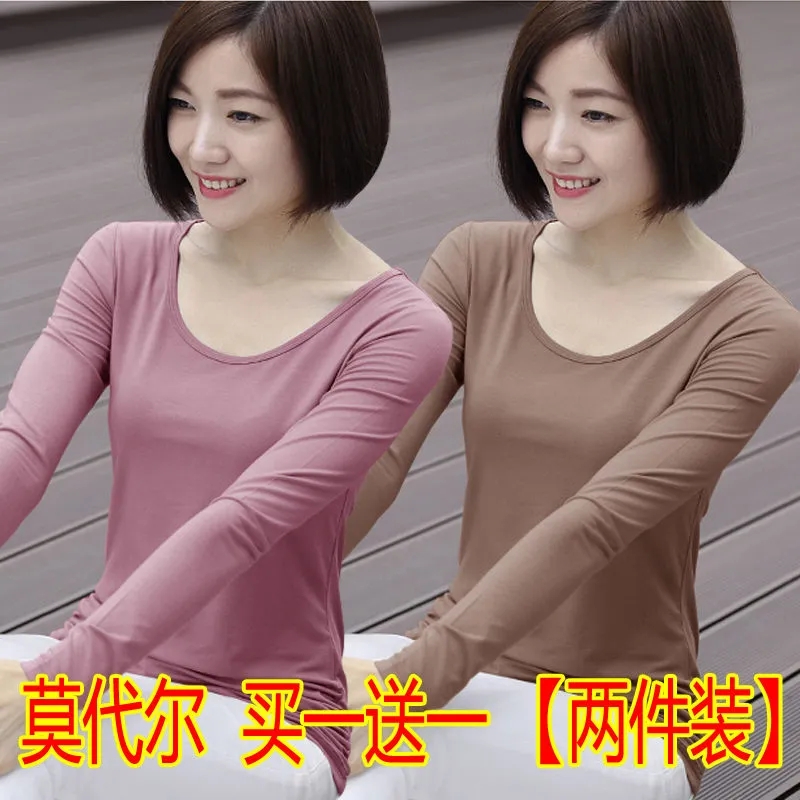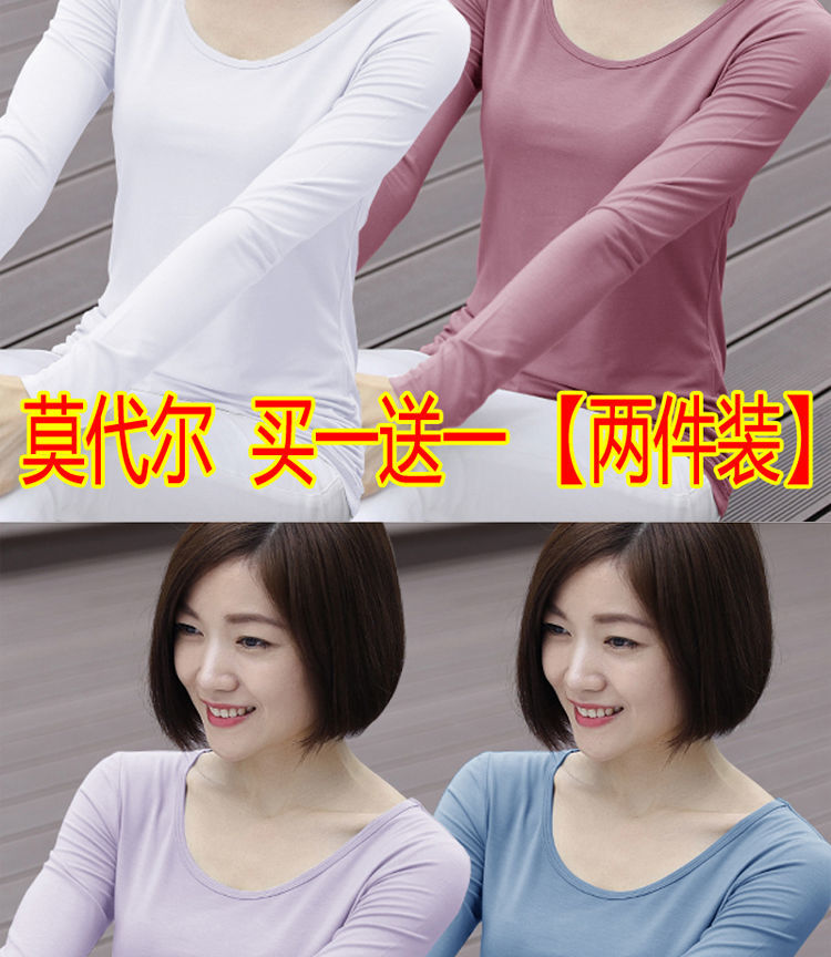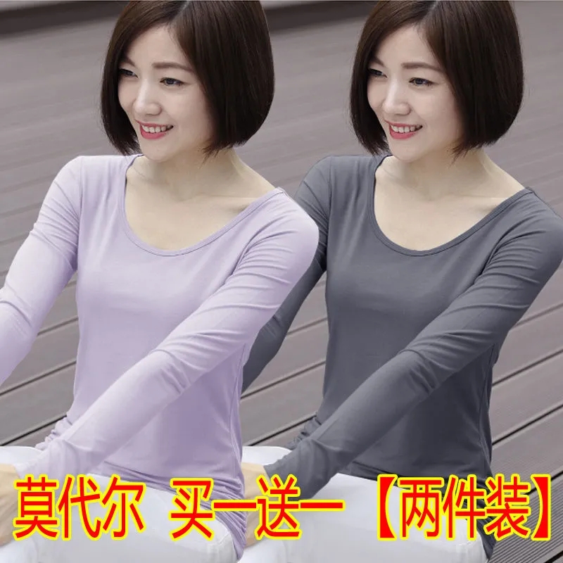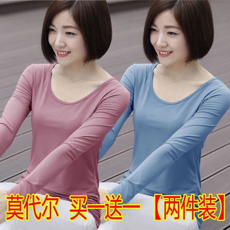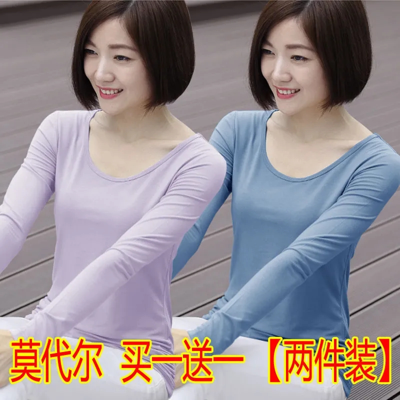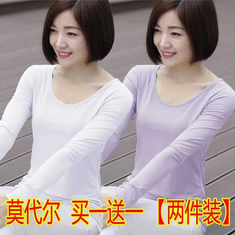Single two-piece modal long-sleeved T-shirt women's inner wear round neck base shirt women's spring and autumn new slim slim top