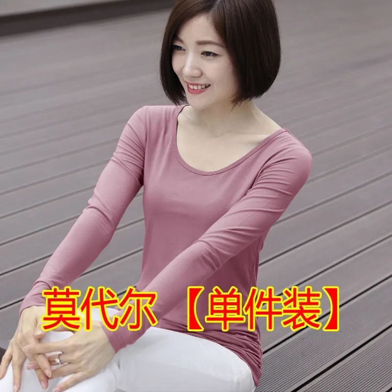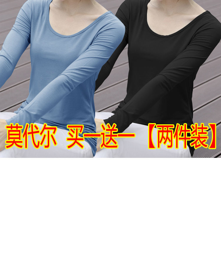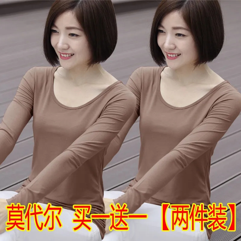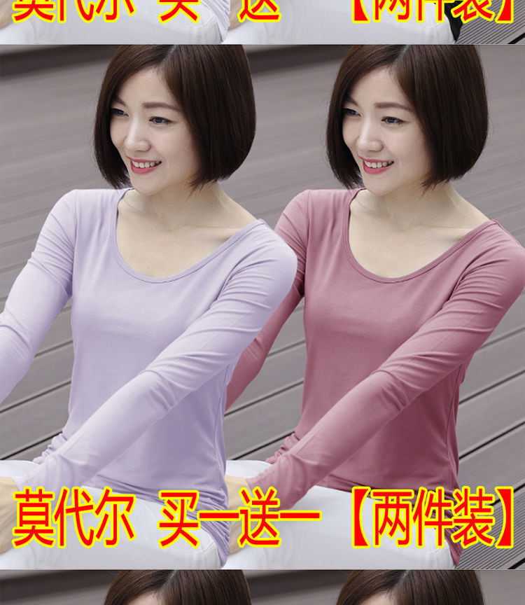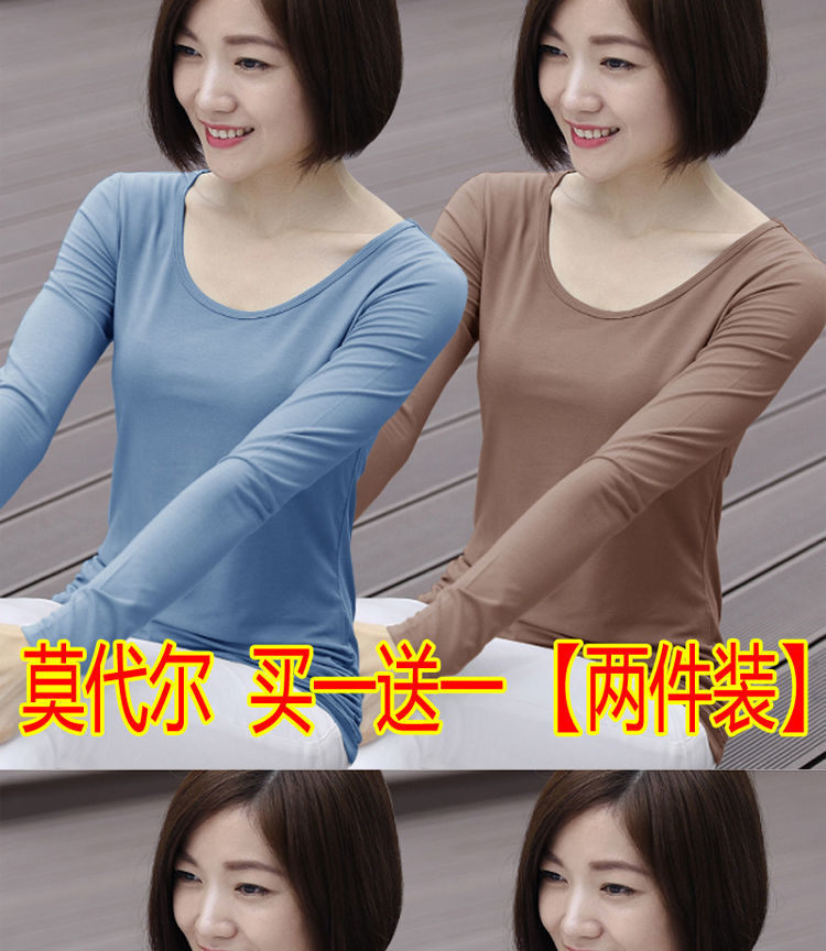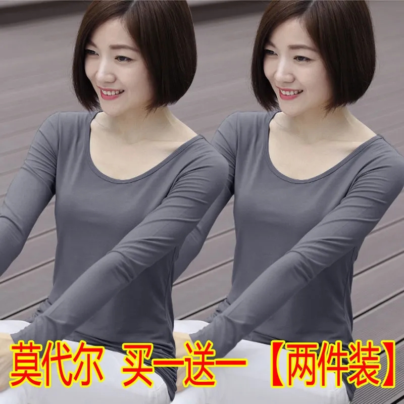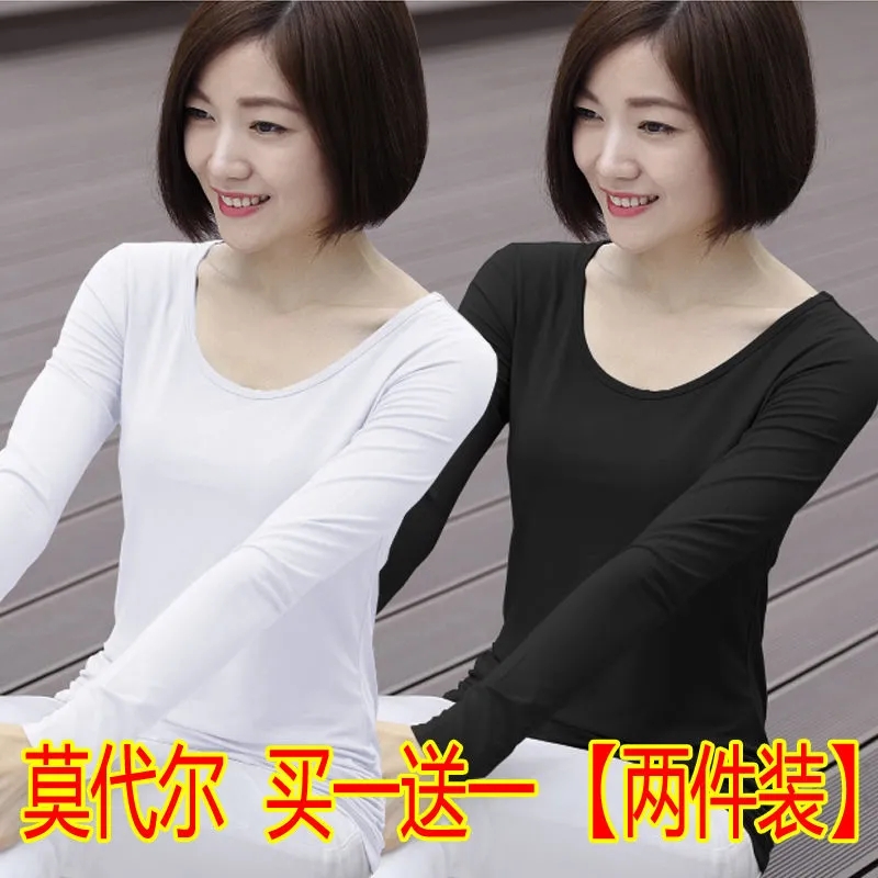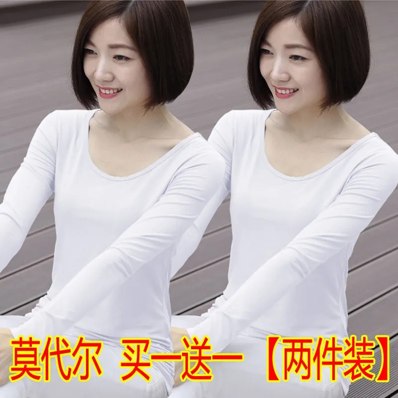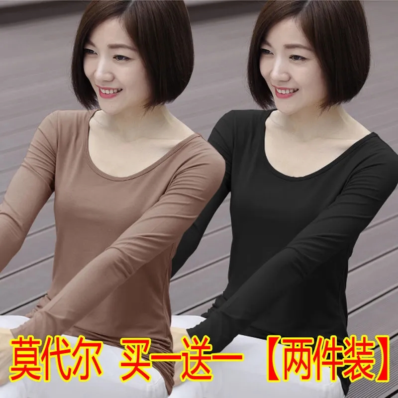 Single two-piece modal long-sleeved T-shirt women's inner wear round neck base shirt women's spring and autumn new slim slim top
