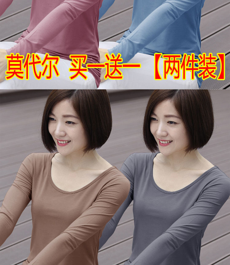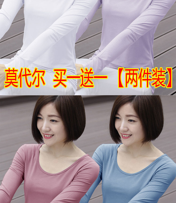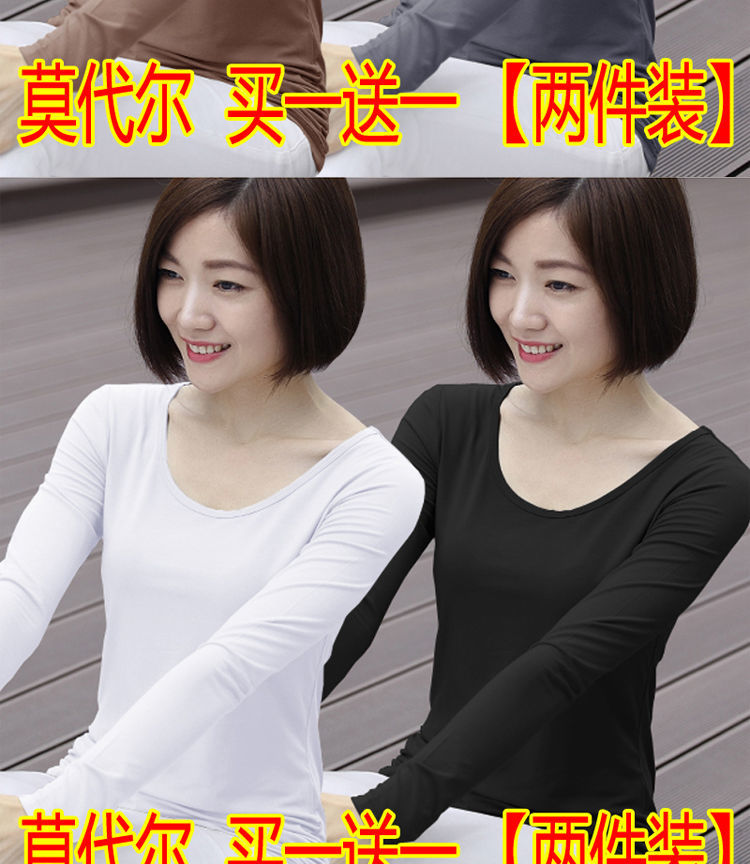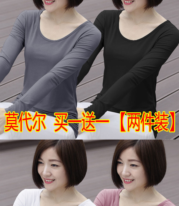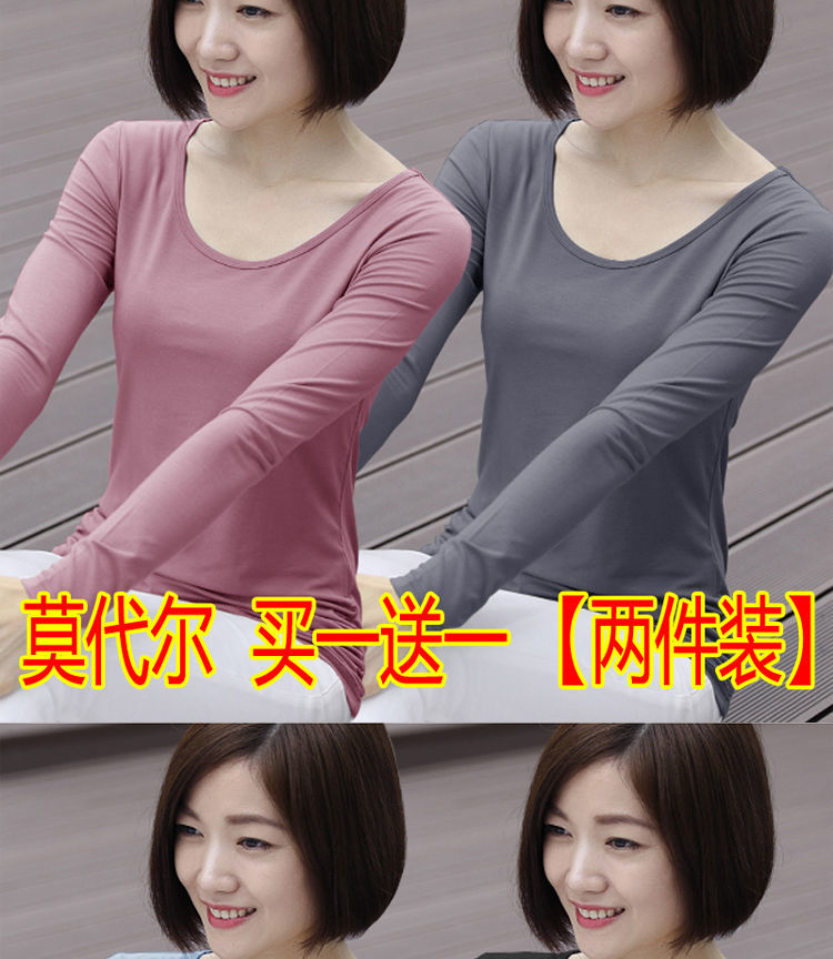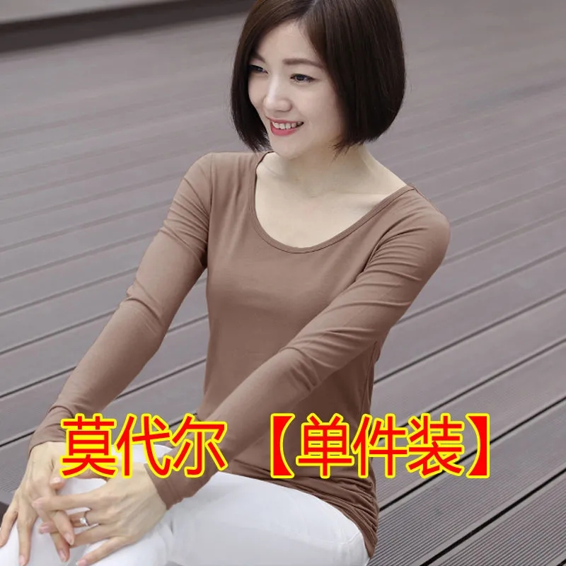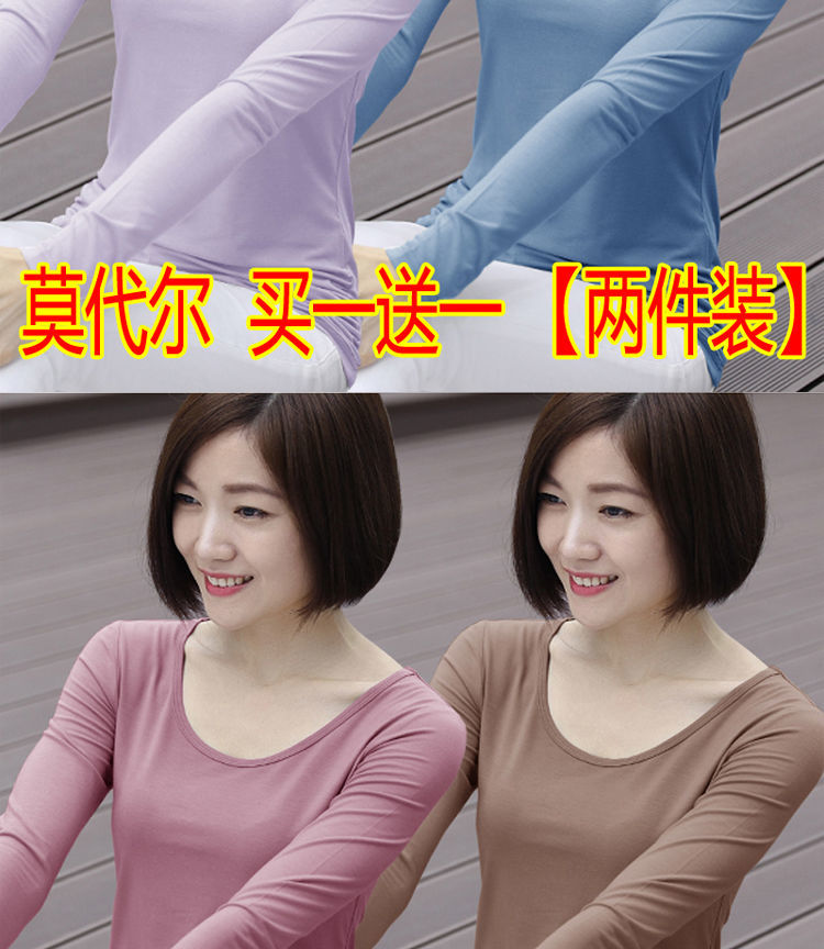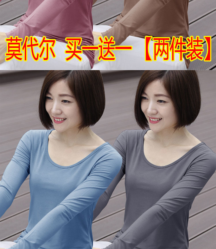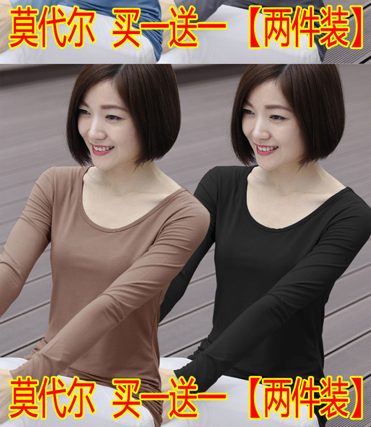 Single two-piece modal long-sleeved T-shirt women's inner wear round neck base shirt women's spring and autumn new slim slim top