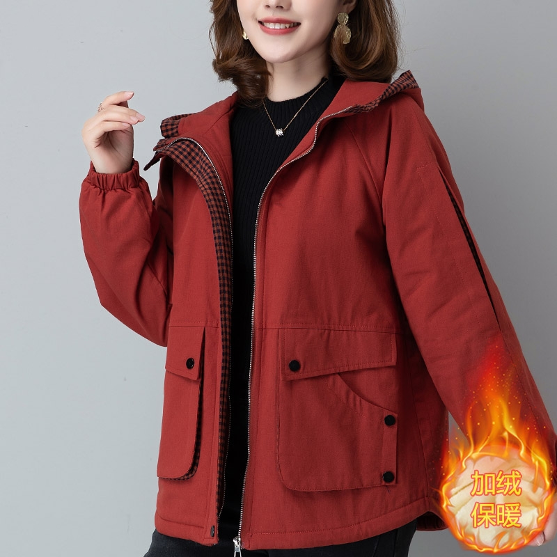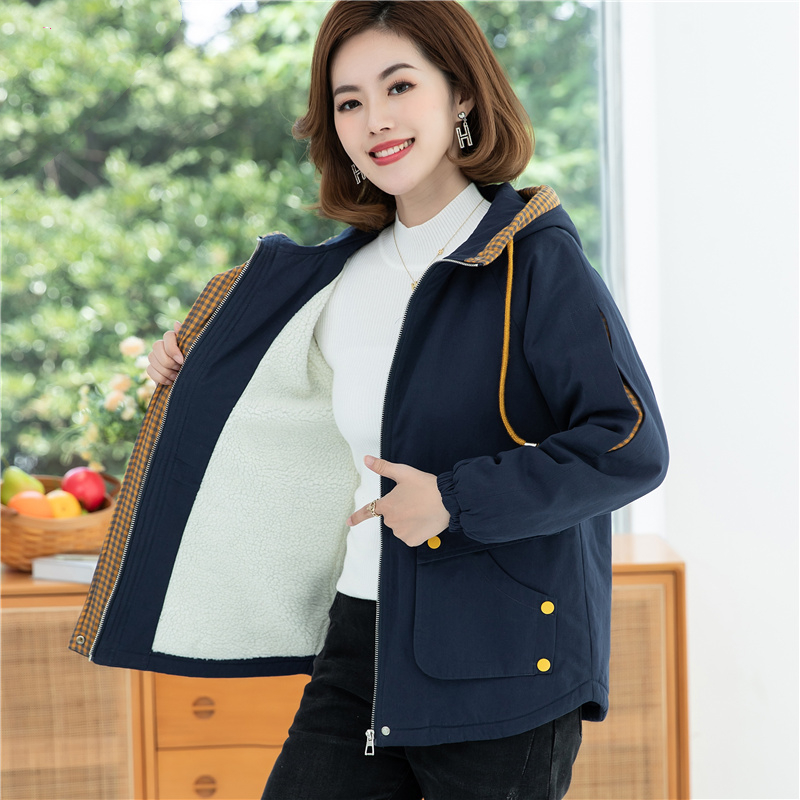 Women's short coat mother's new middle-aged plus-size foreign cotton fleece thickened trench coat jacket for women's short coat mother in autumn and winter 2025