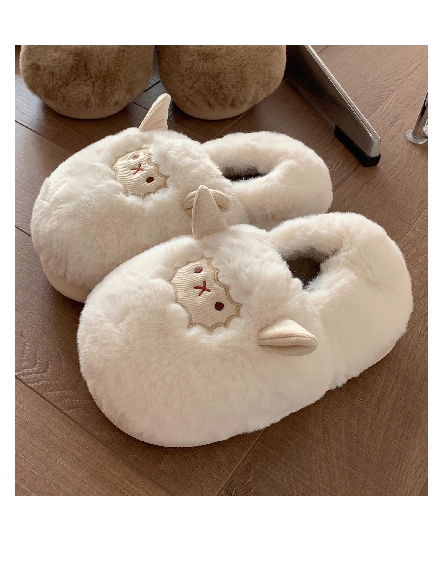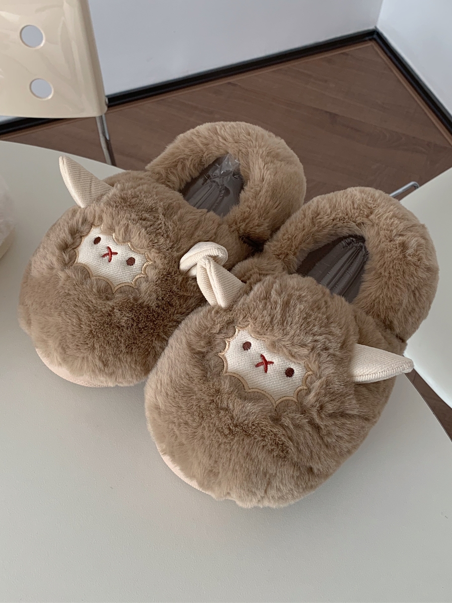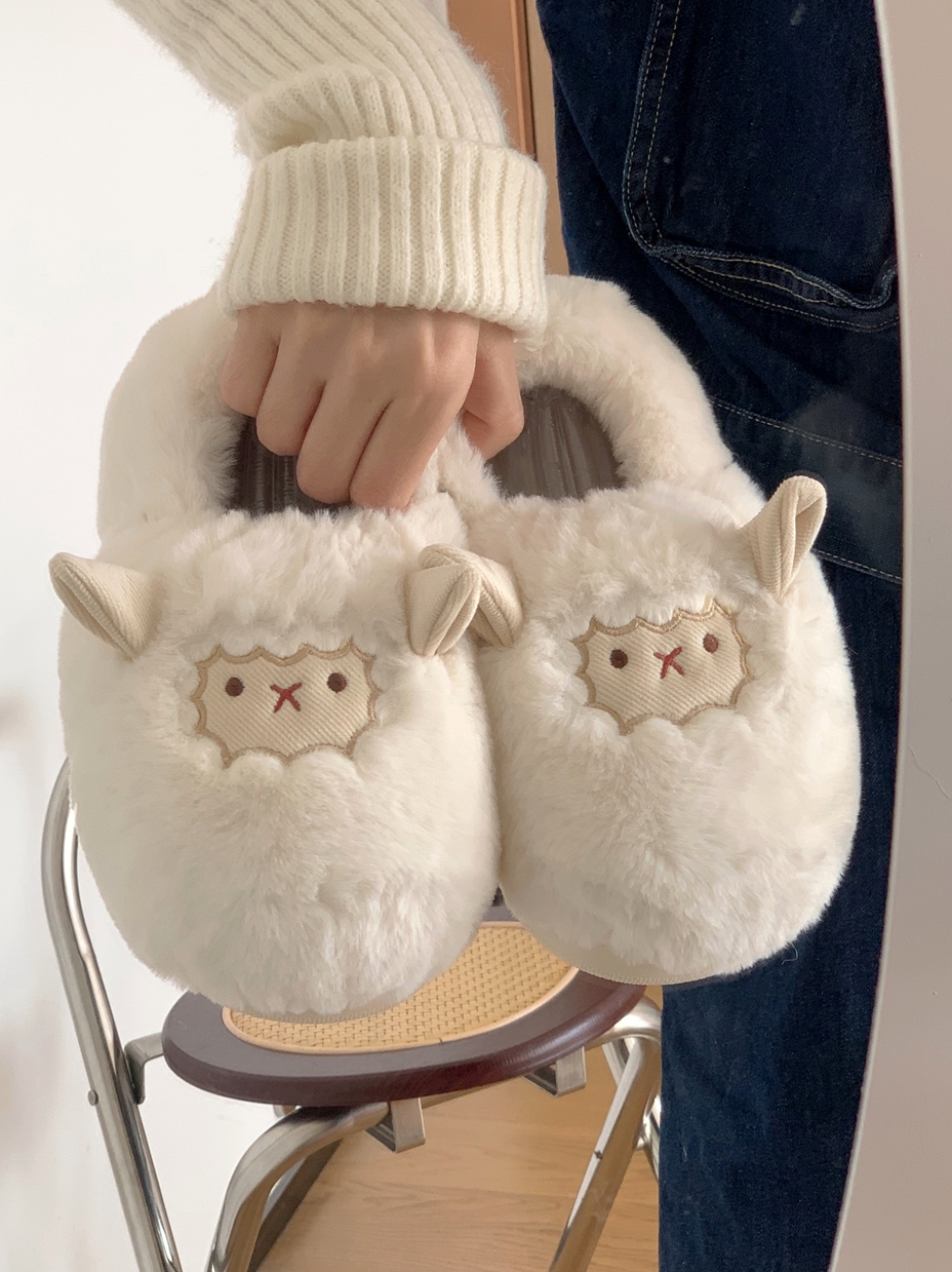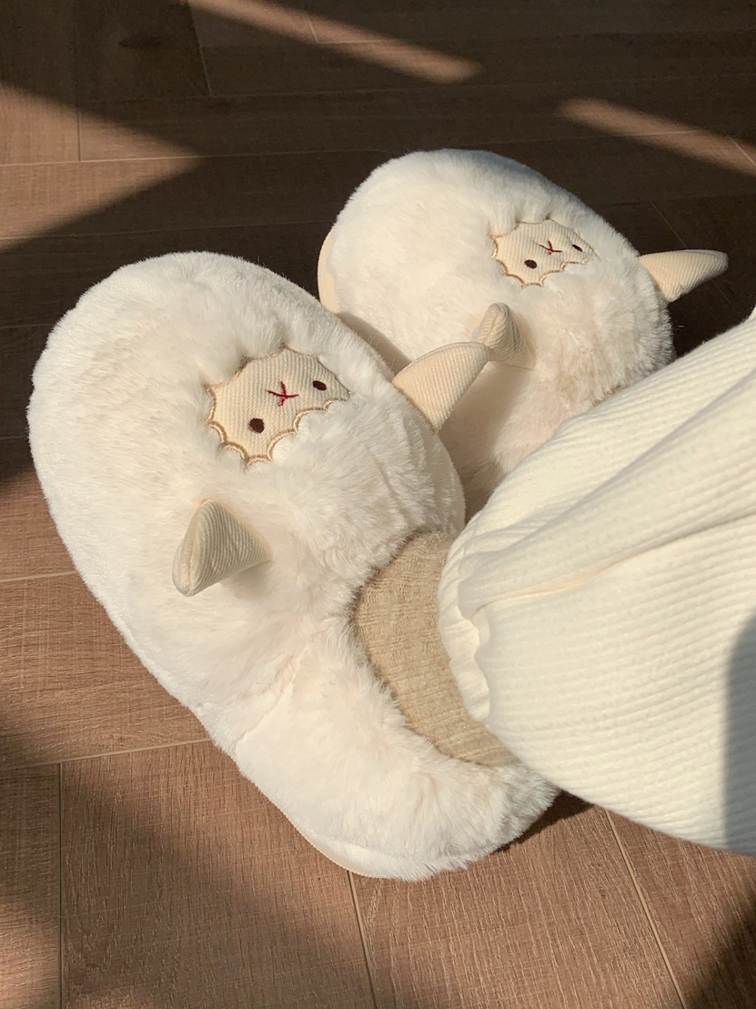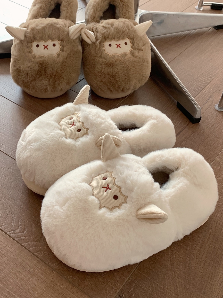 Slim couple cute little sheep cotton slippers men and women winter home bag with warm non-slip confinement shoes ins
