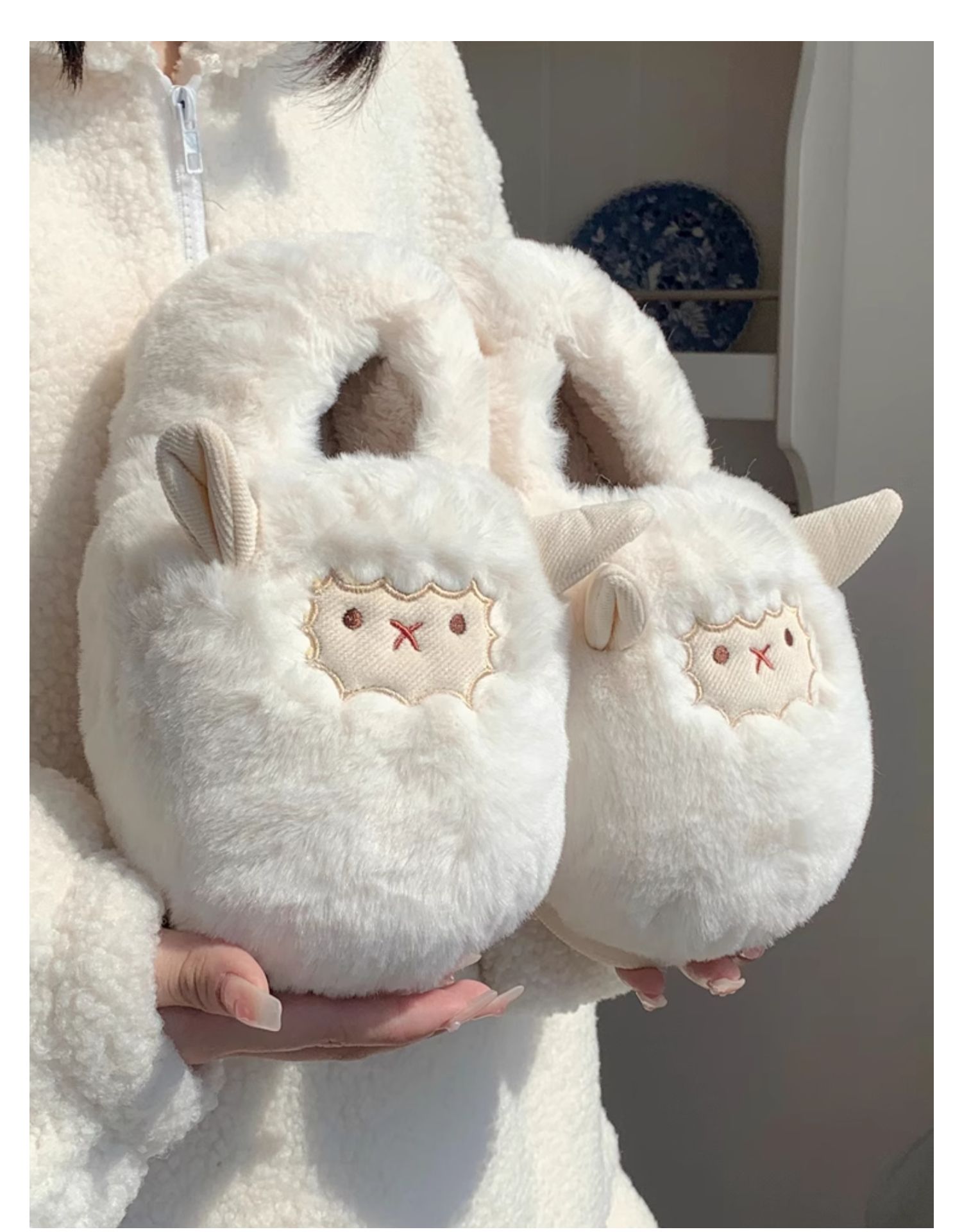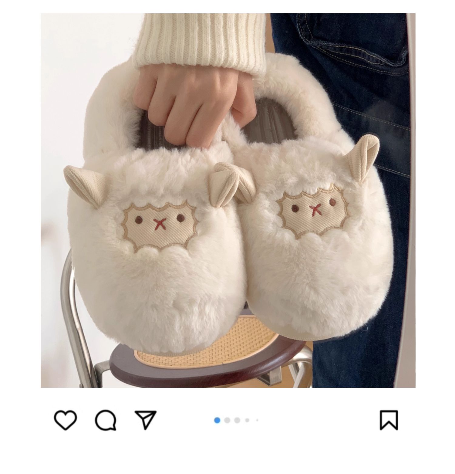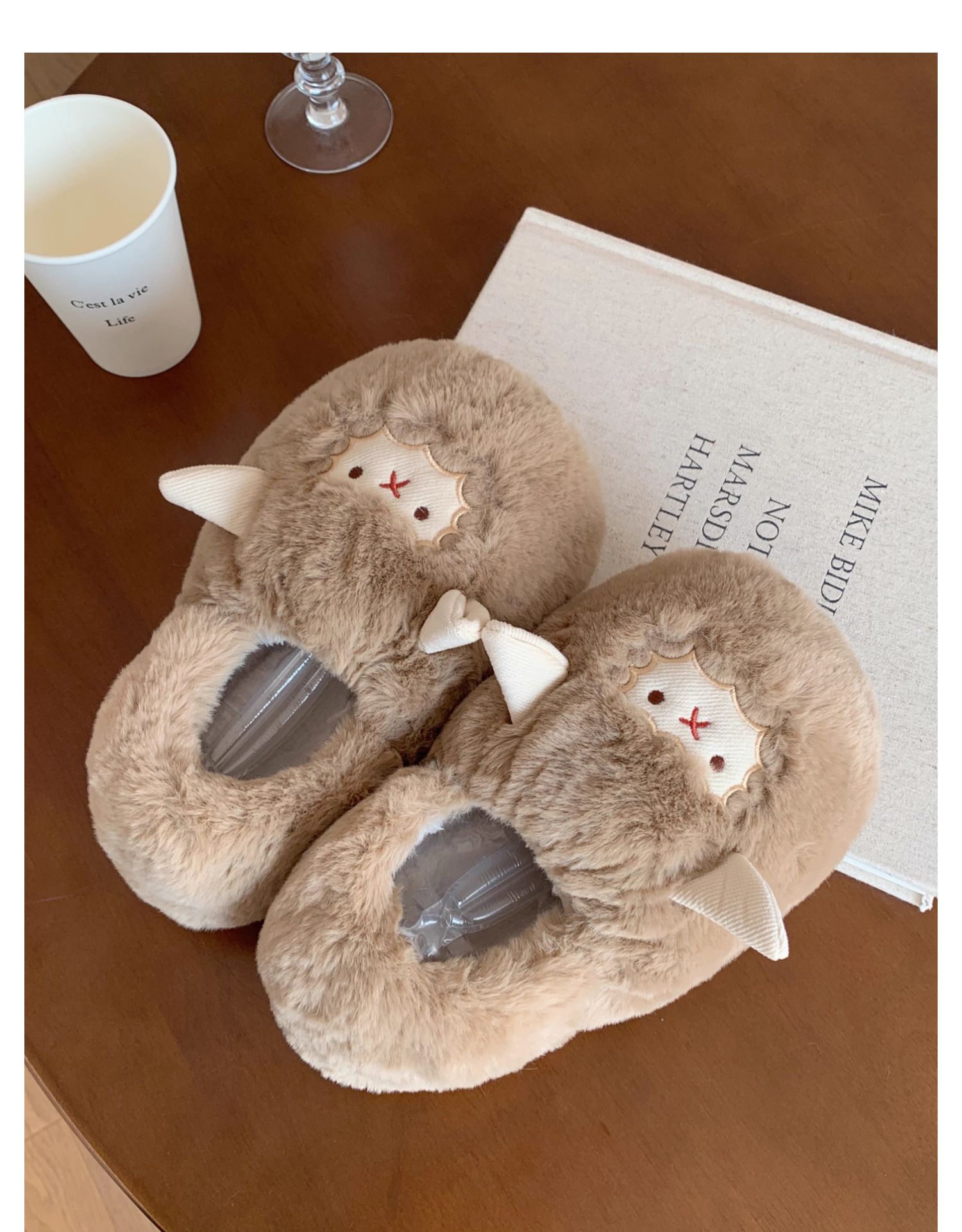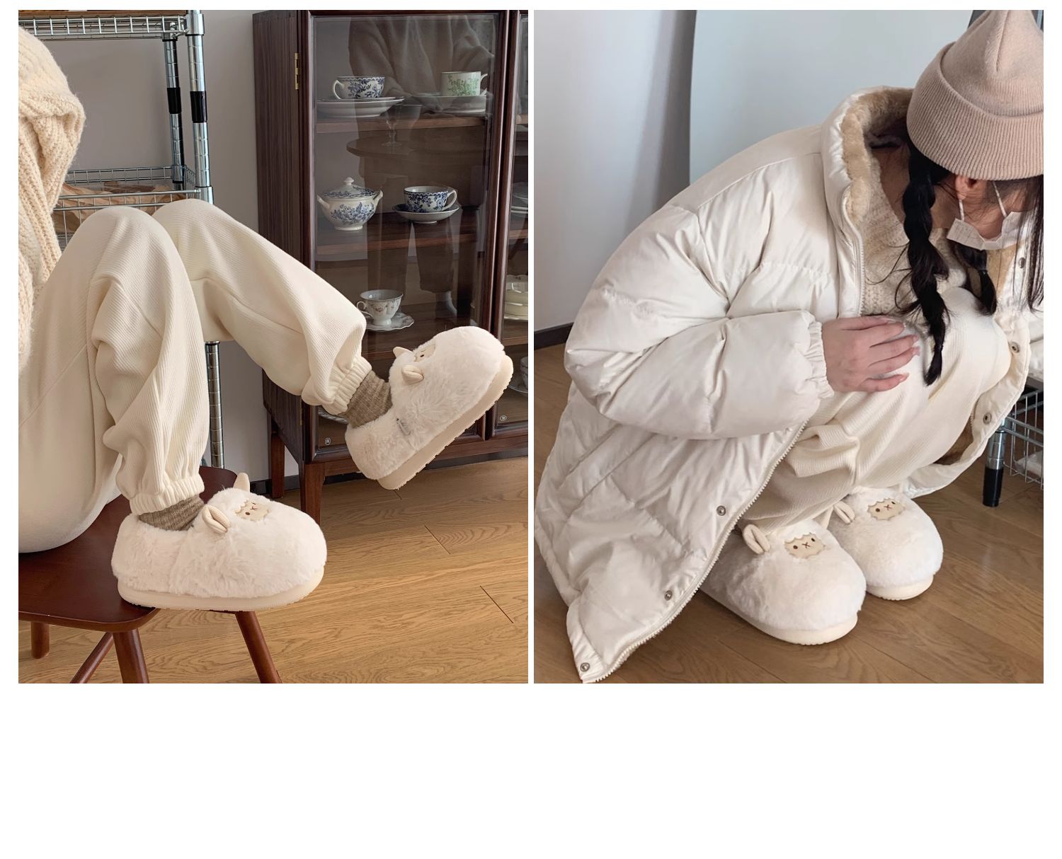 Slim couple cute little sheep cotton slippers men and women winter home bag with warm non-slip confinement shoes ins