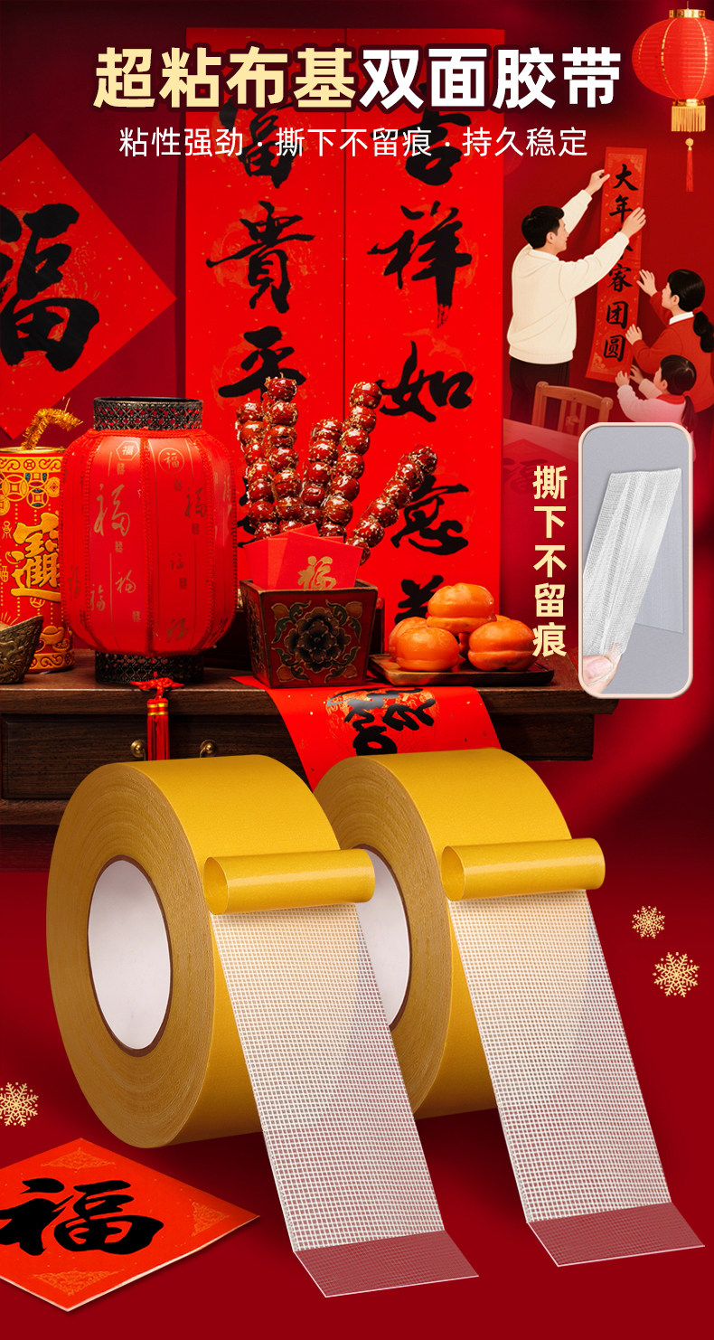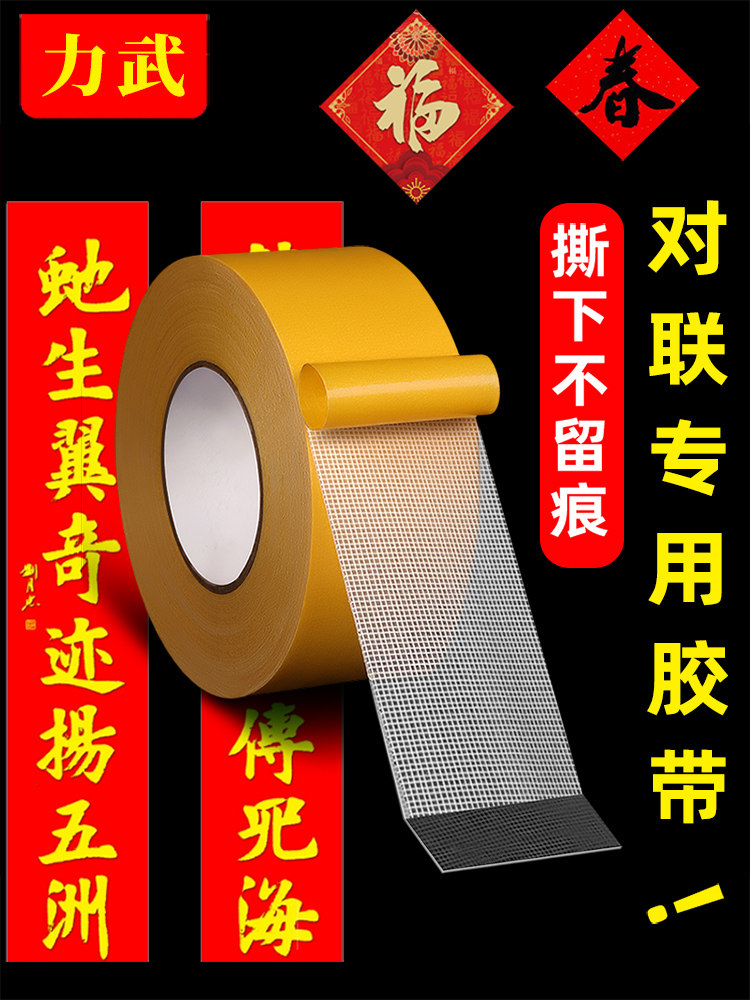 Grid double-sided tape, high viscosity Fu Zi, strong fixing, sticky carpet, Spring Festival couplets, special non-trace, transparent, non-trace, wall, non-glue, floor, floor mat, door pair, splicing, cloth tape artifact
