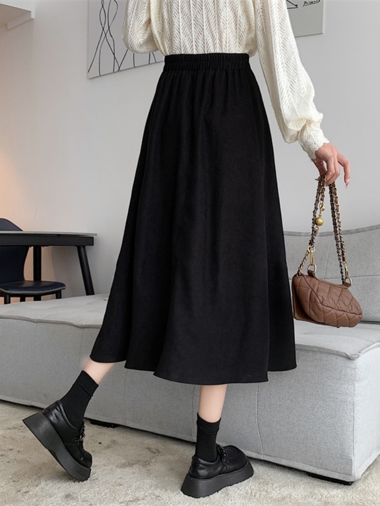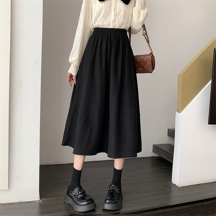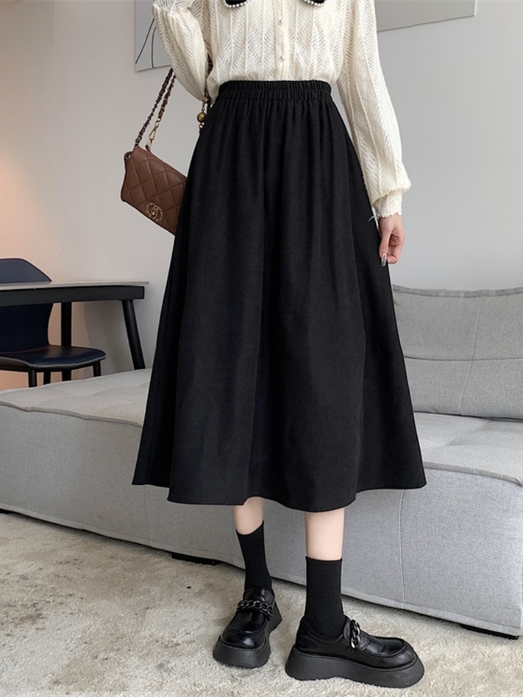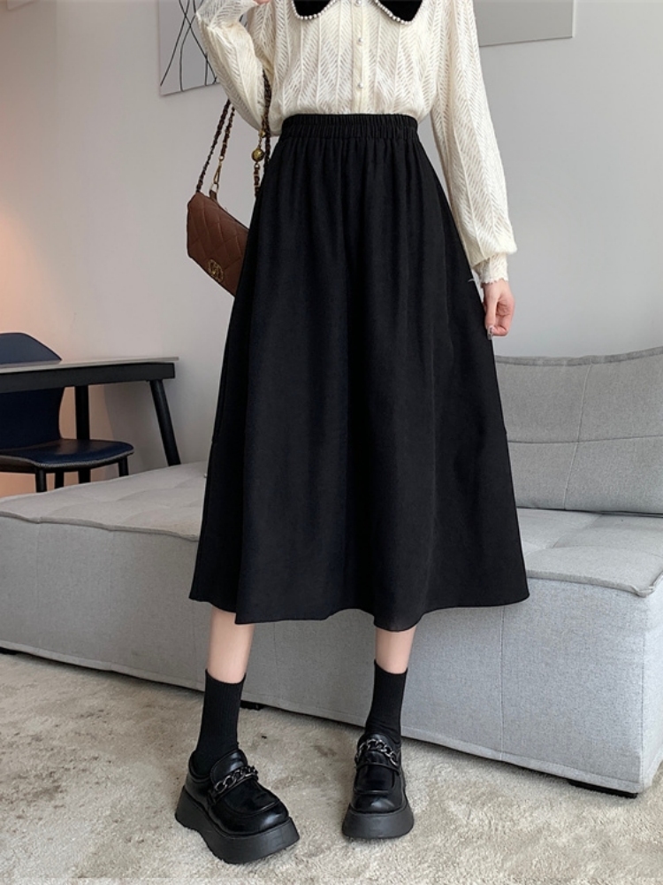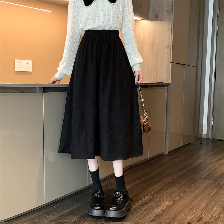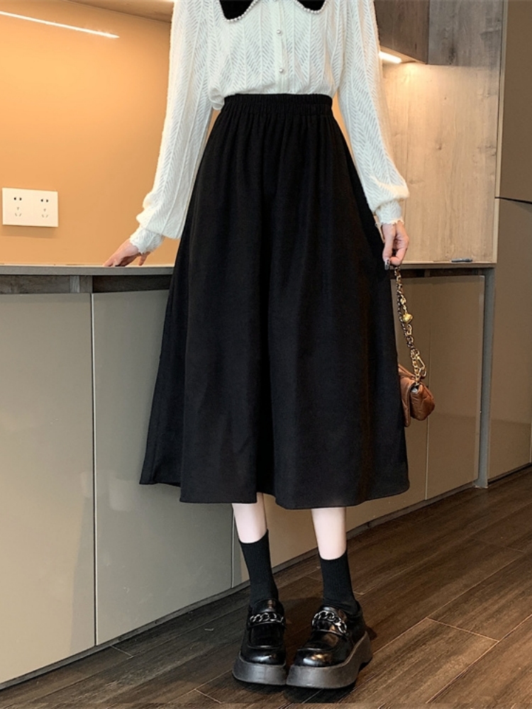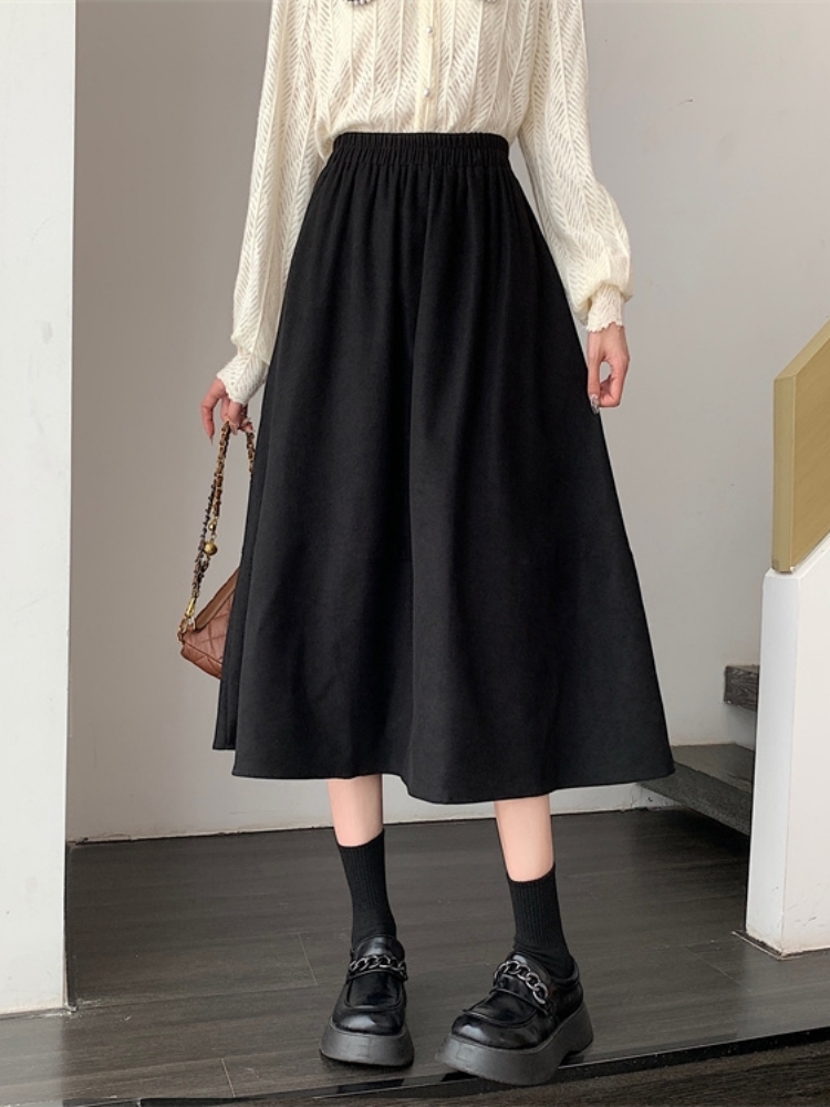 Autumn and Winter 2025 New Loose Temperament Umbrella Skirt High-waisted Pure Black Skirt Women's Mid-Length A-Line Pendant Skirt