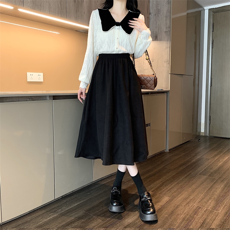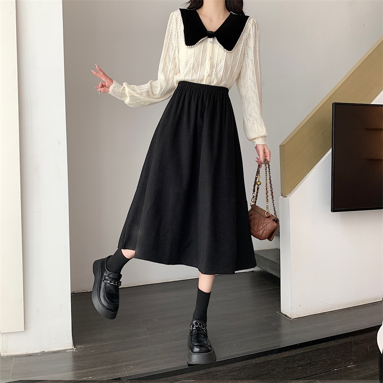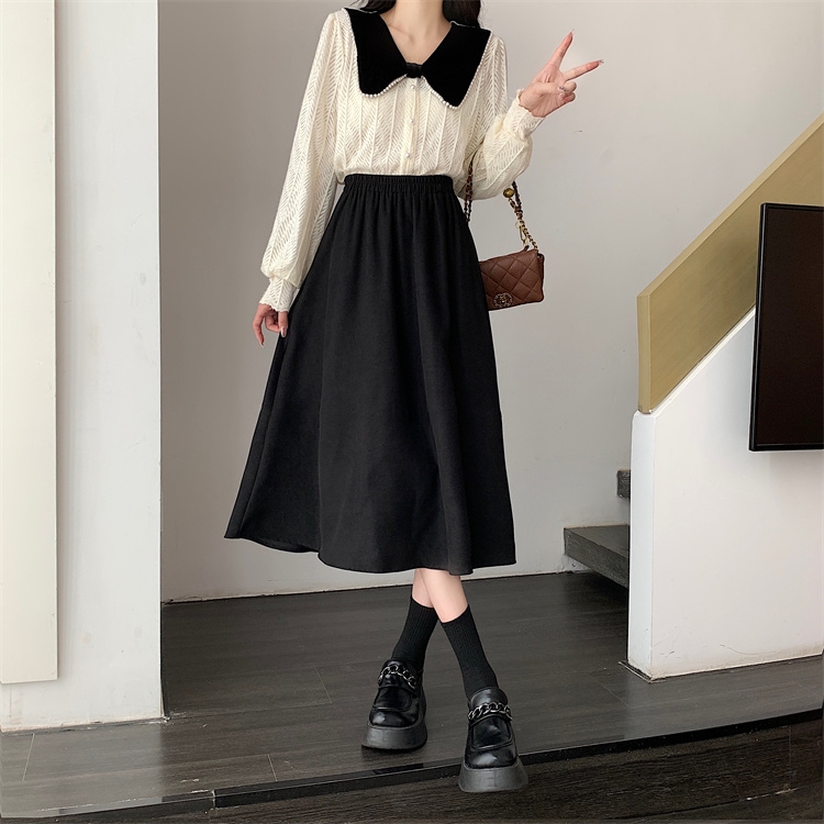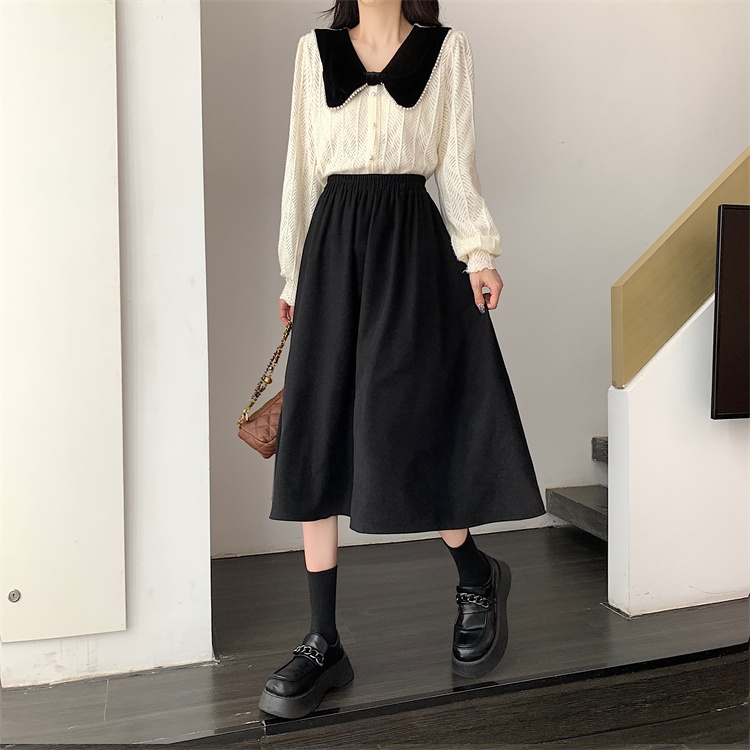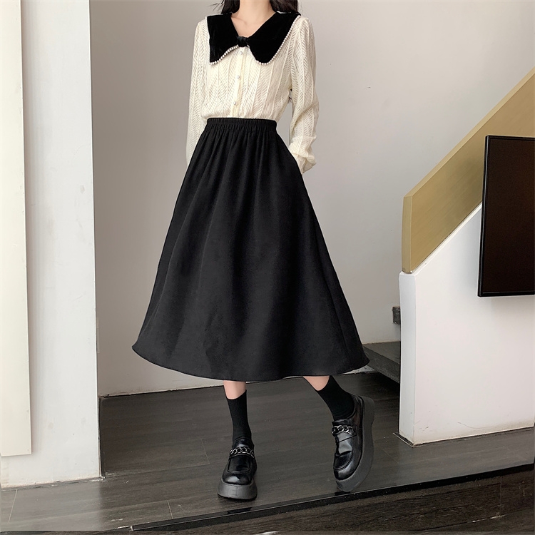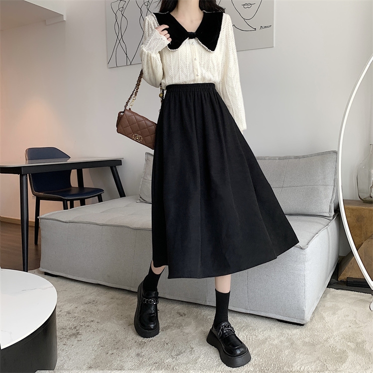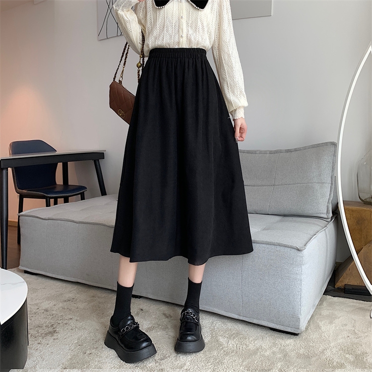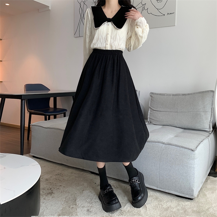 Autumn and Winter 2025 New Loose Temperament Umbrella Skirt High-waisted Pure Black Skirt Women's Mid-Length A-Line Pendant Skirt