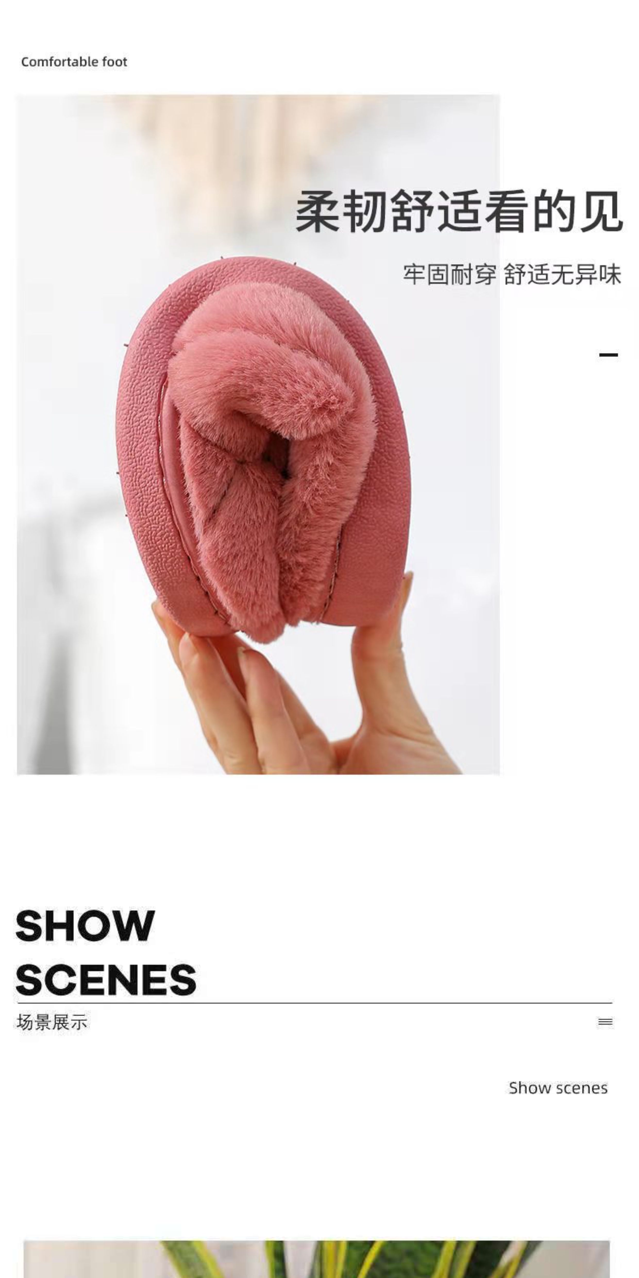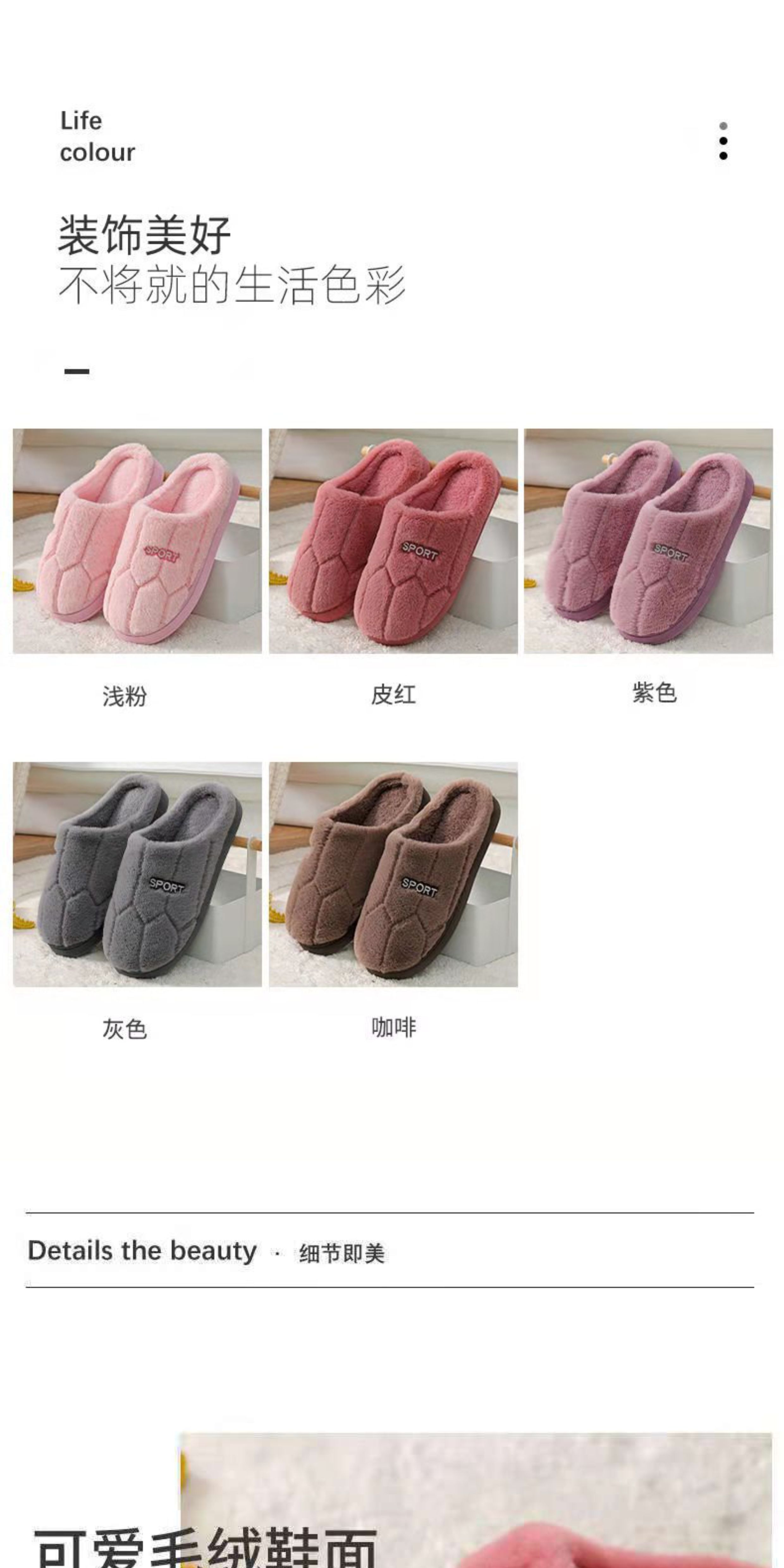Cotton slippers women's autumn and winter indoor home wool slippers warm and cute home couple cotton slippers non-slip men's slippers