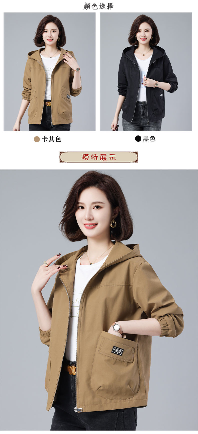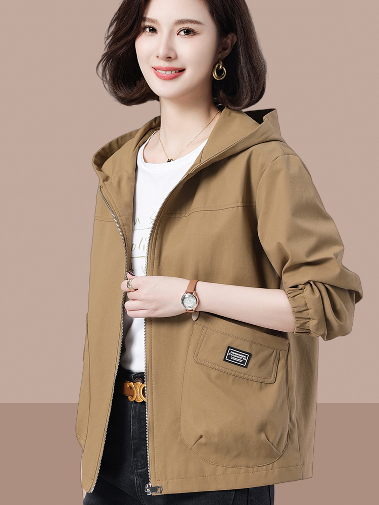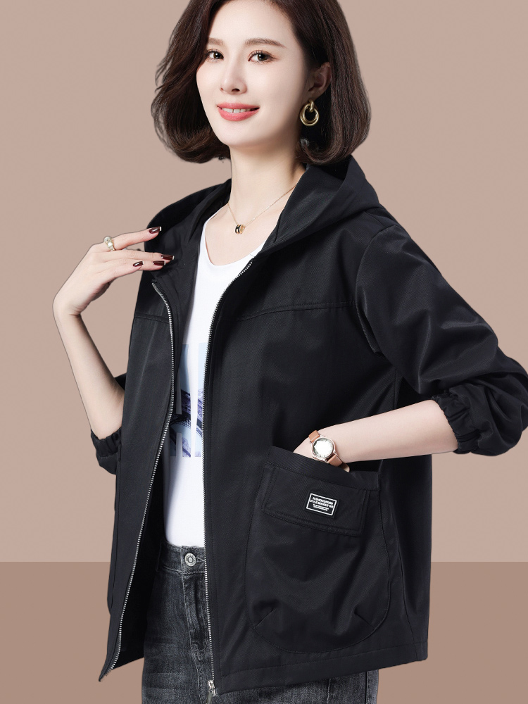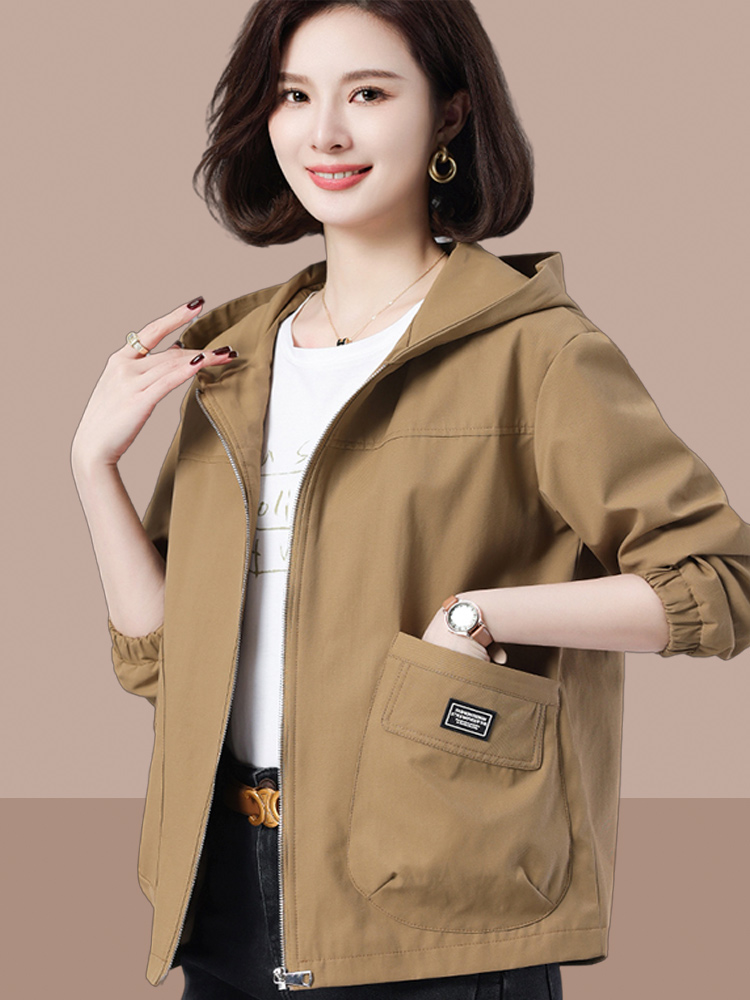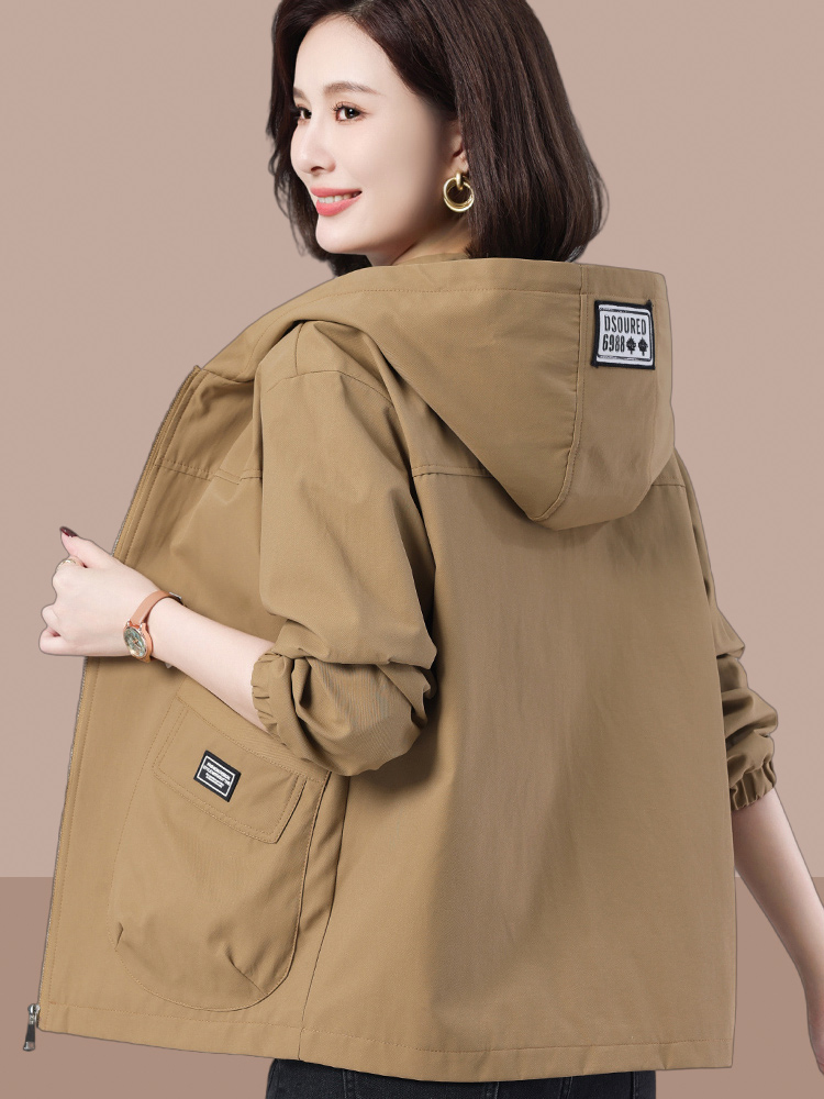 Casual Plus Size Loose Hooded Women's Short Jacket 2025 Spring and Autumn New Middle-aged and Elderly Mom Outfit Age Reduction Jacket