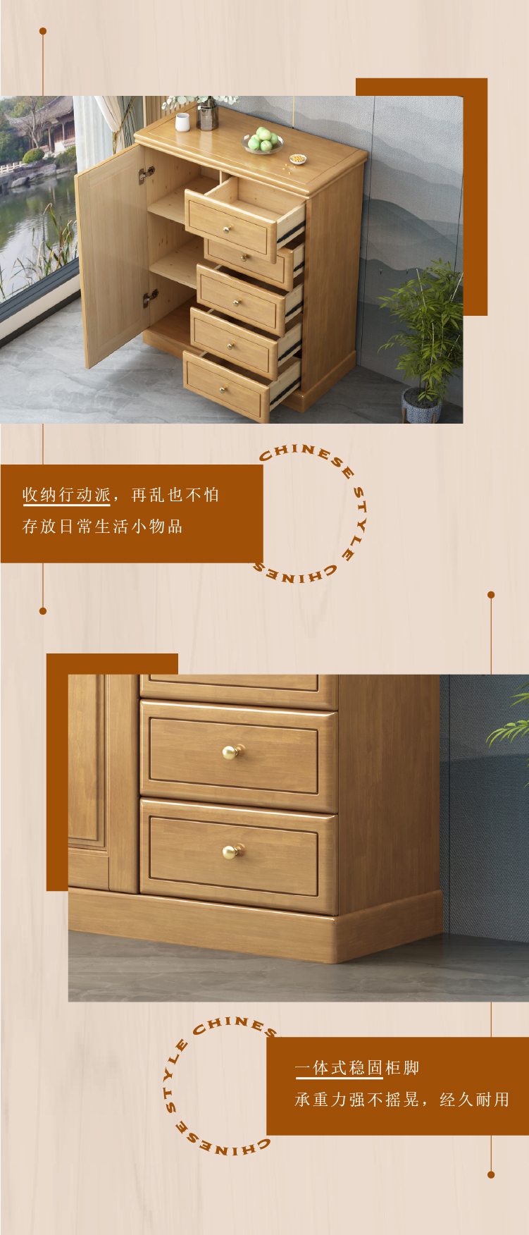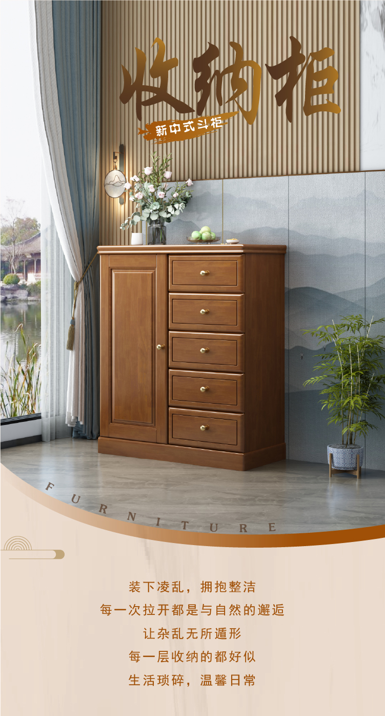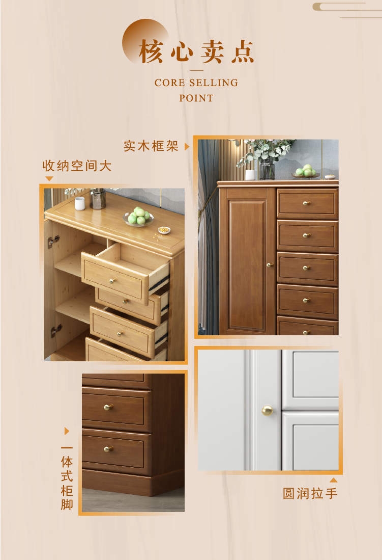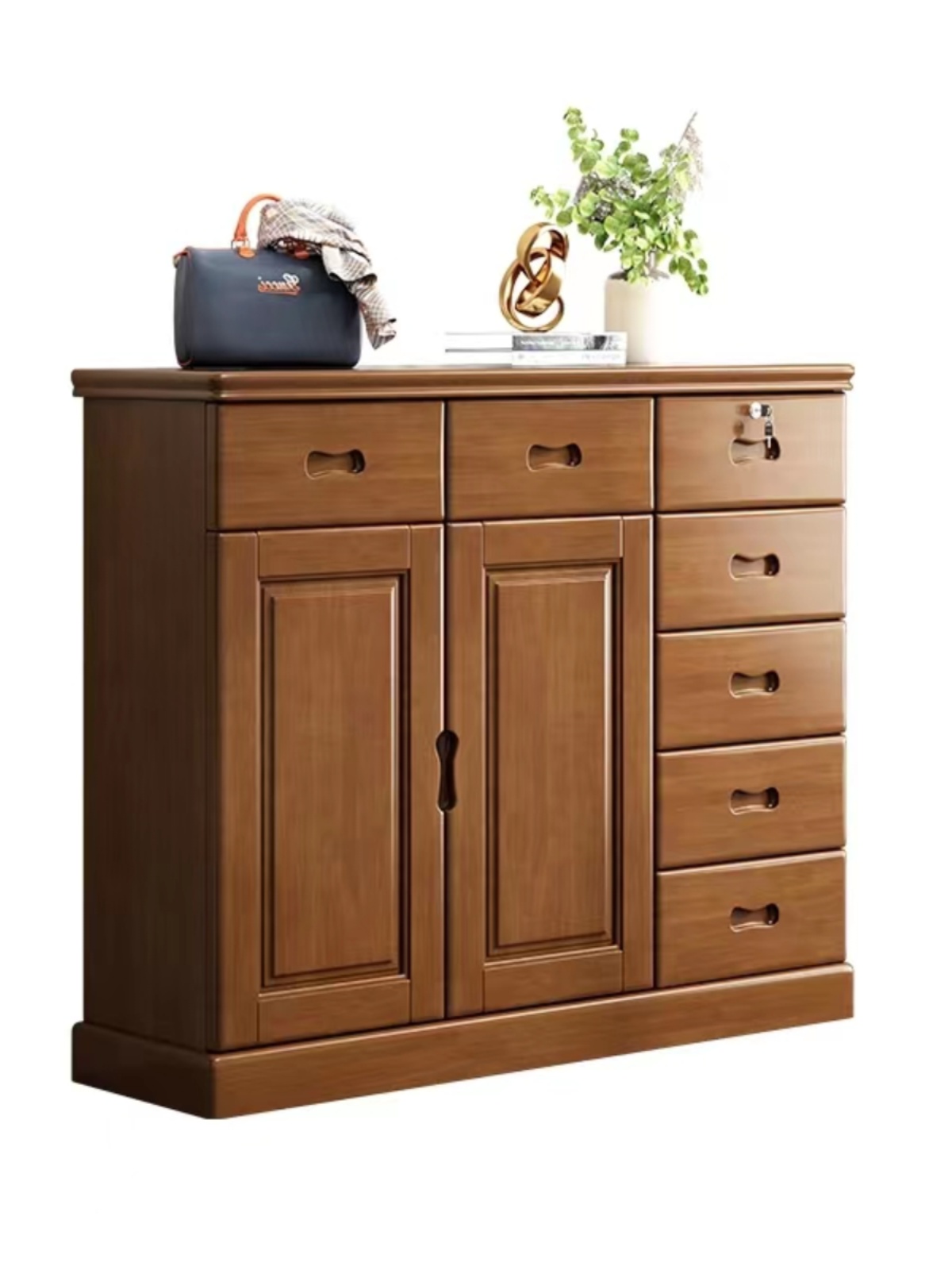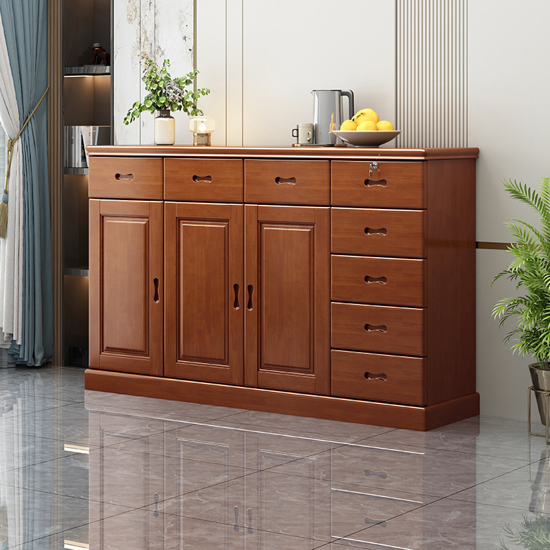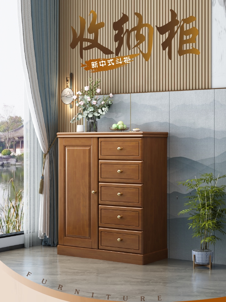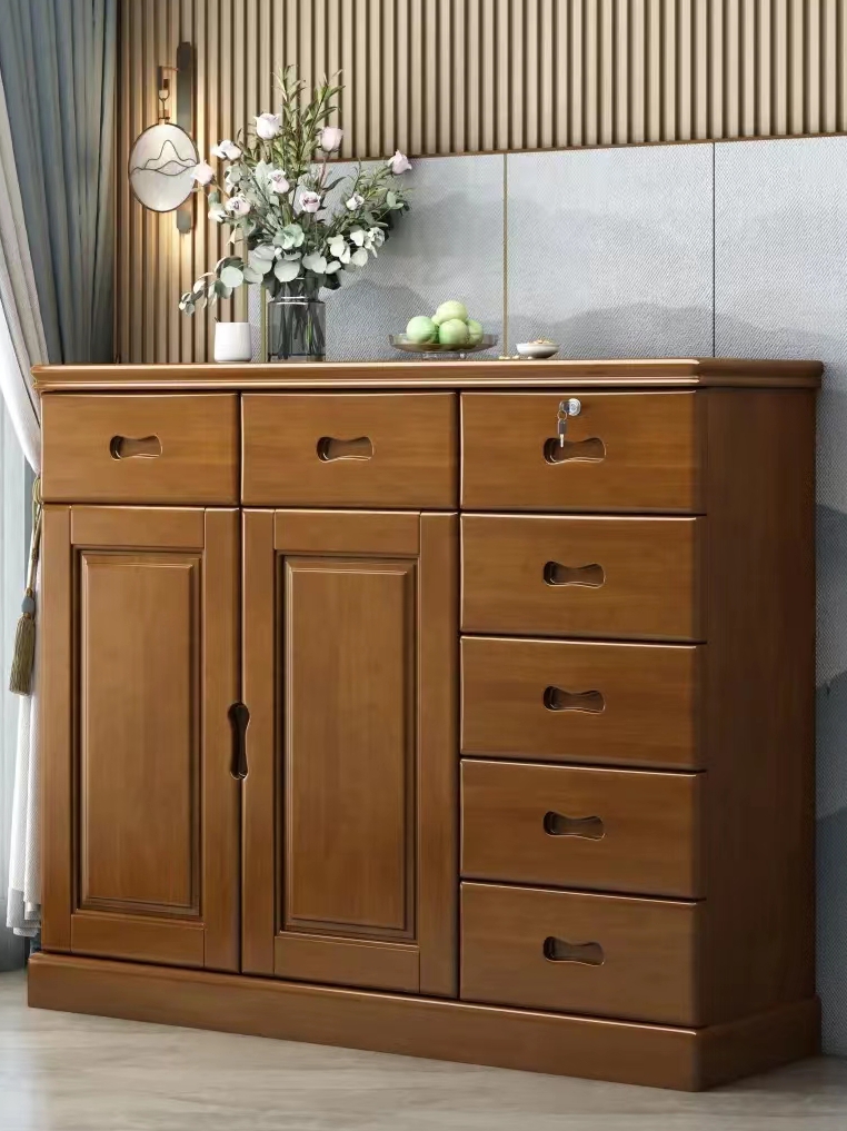 Chinese solid wood storage cabinet, large capacity storage chest of drawers, lockable drawers, living room entrance, home bedroom against the wall