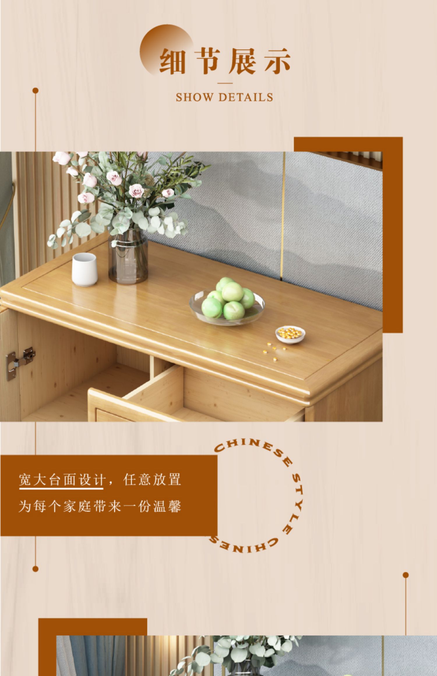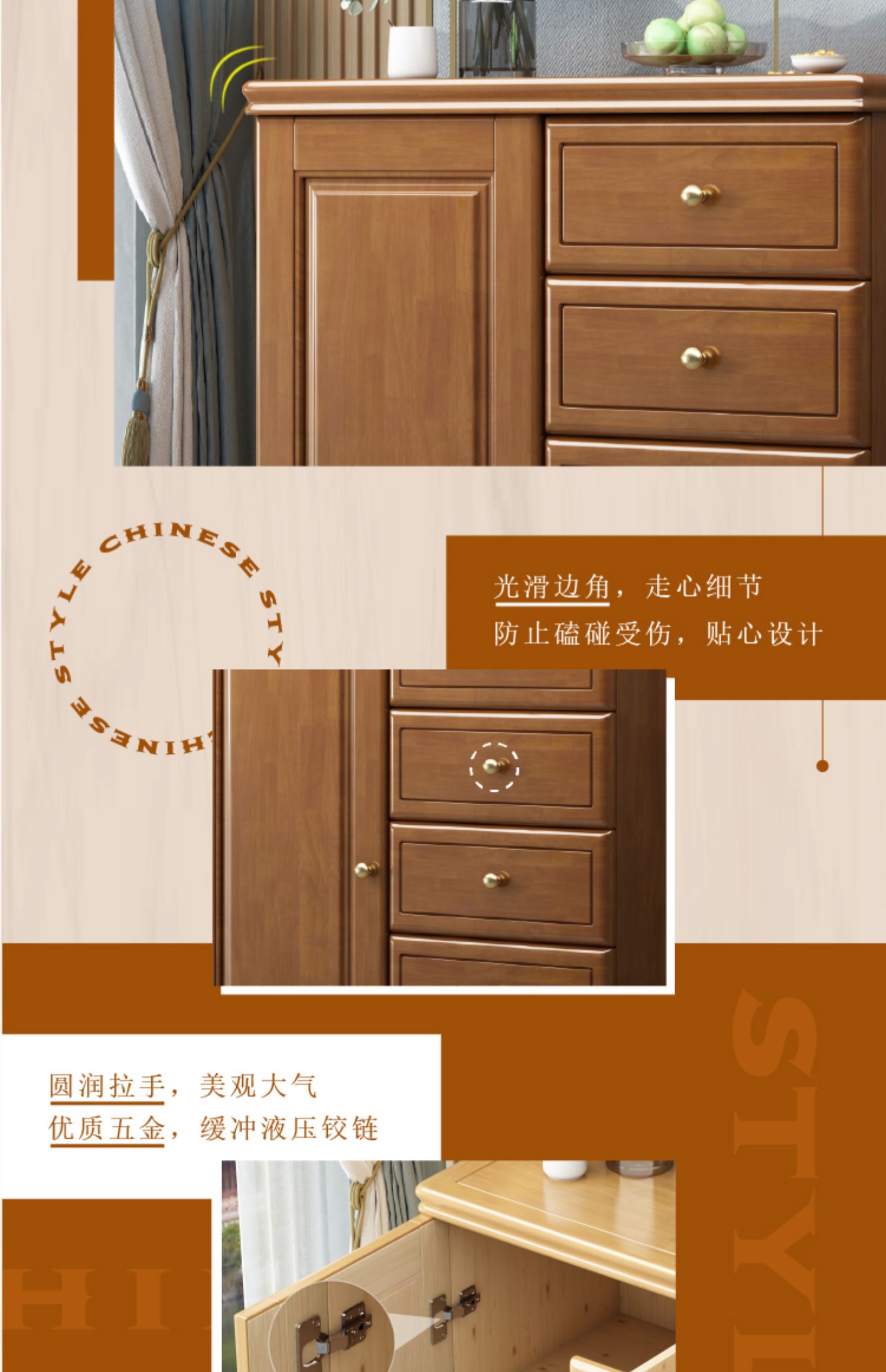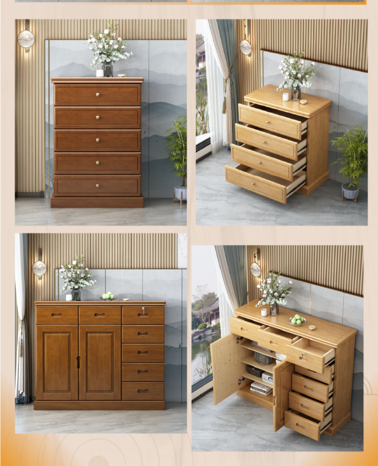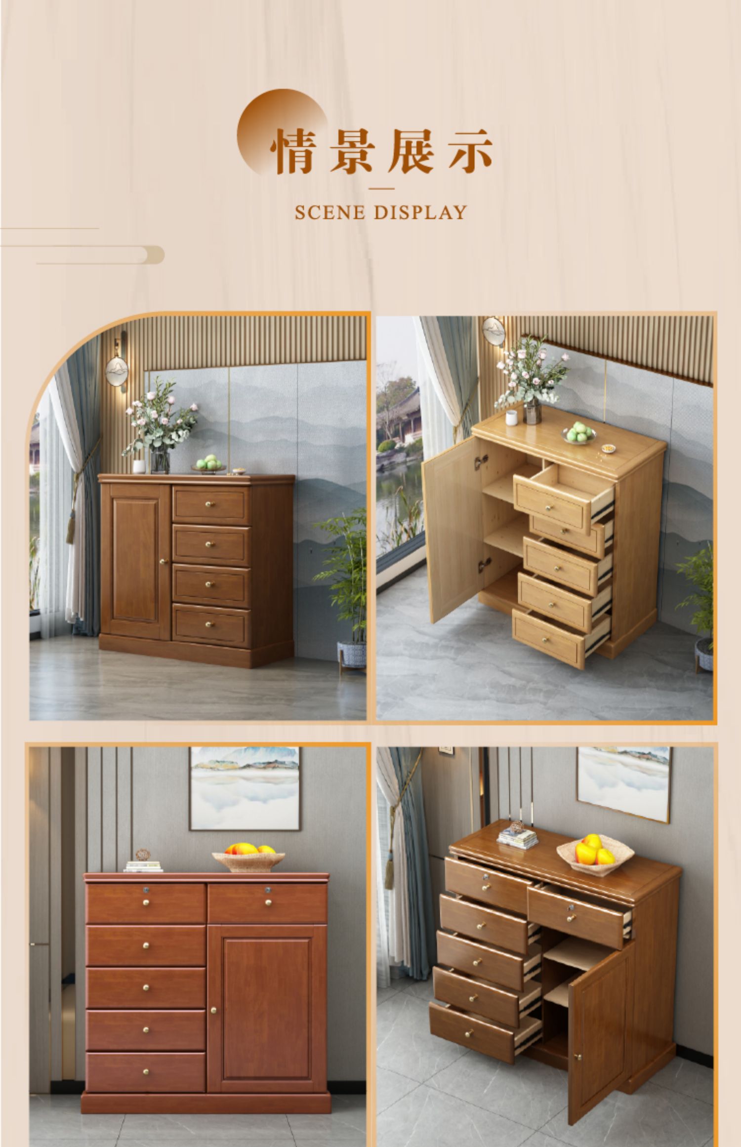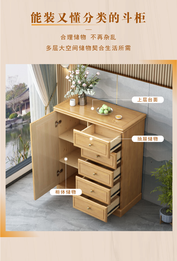 Chinese solid wood storage cabinet, large capacity storage chest of drawers, lockable drawers, living room entrance, home bedroom against the wall