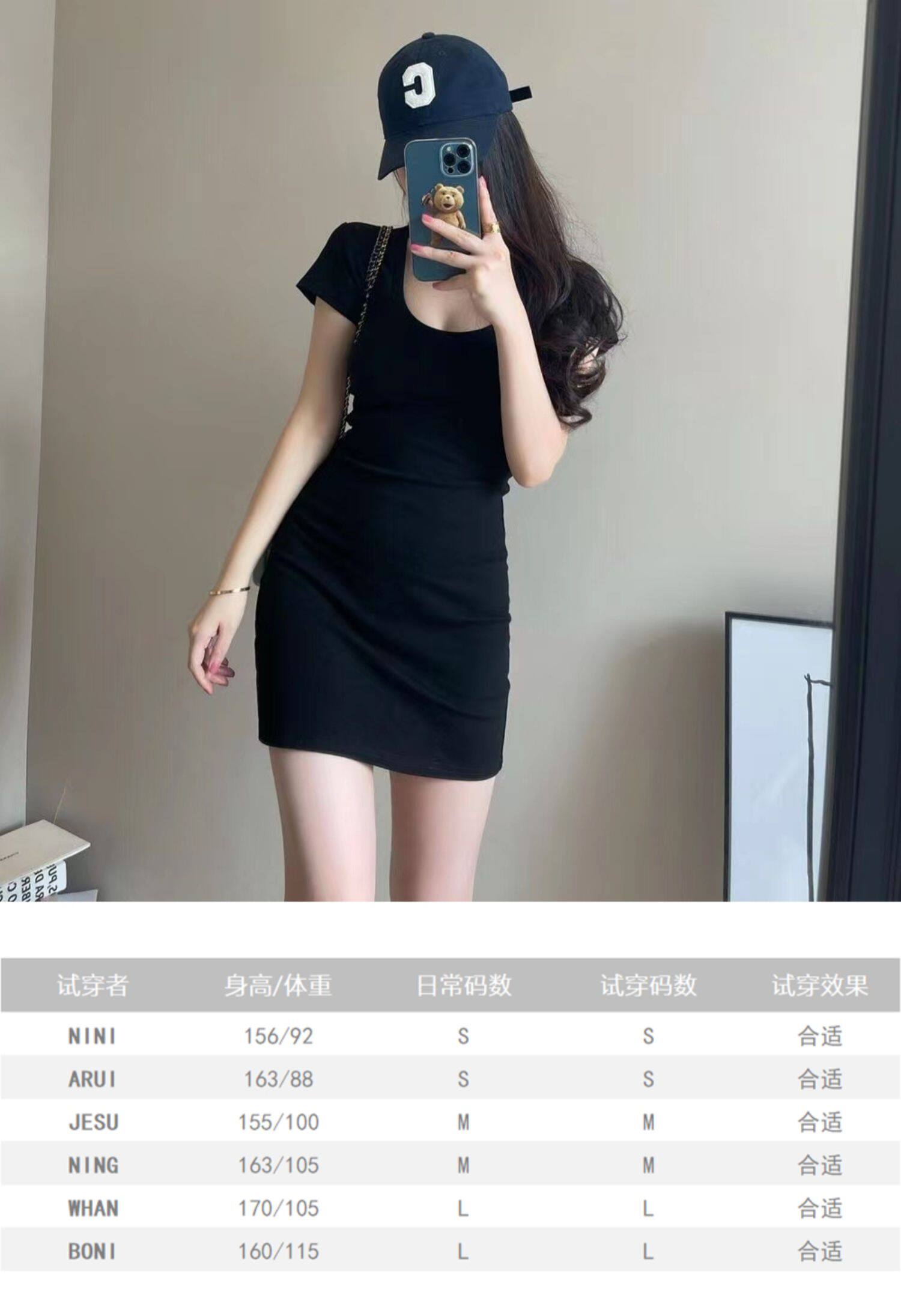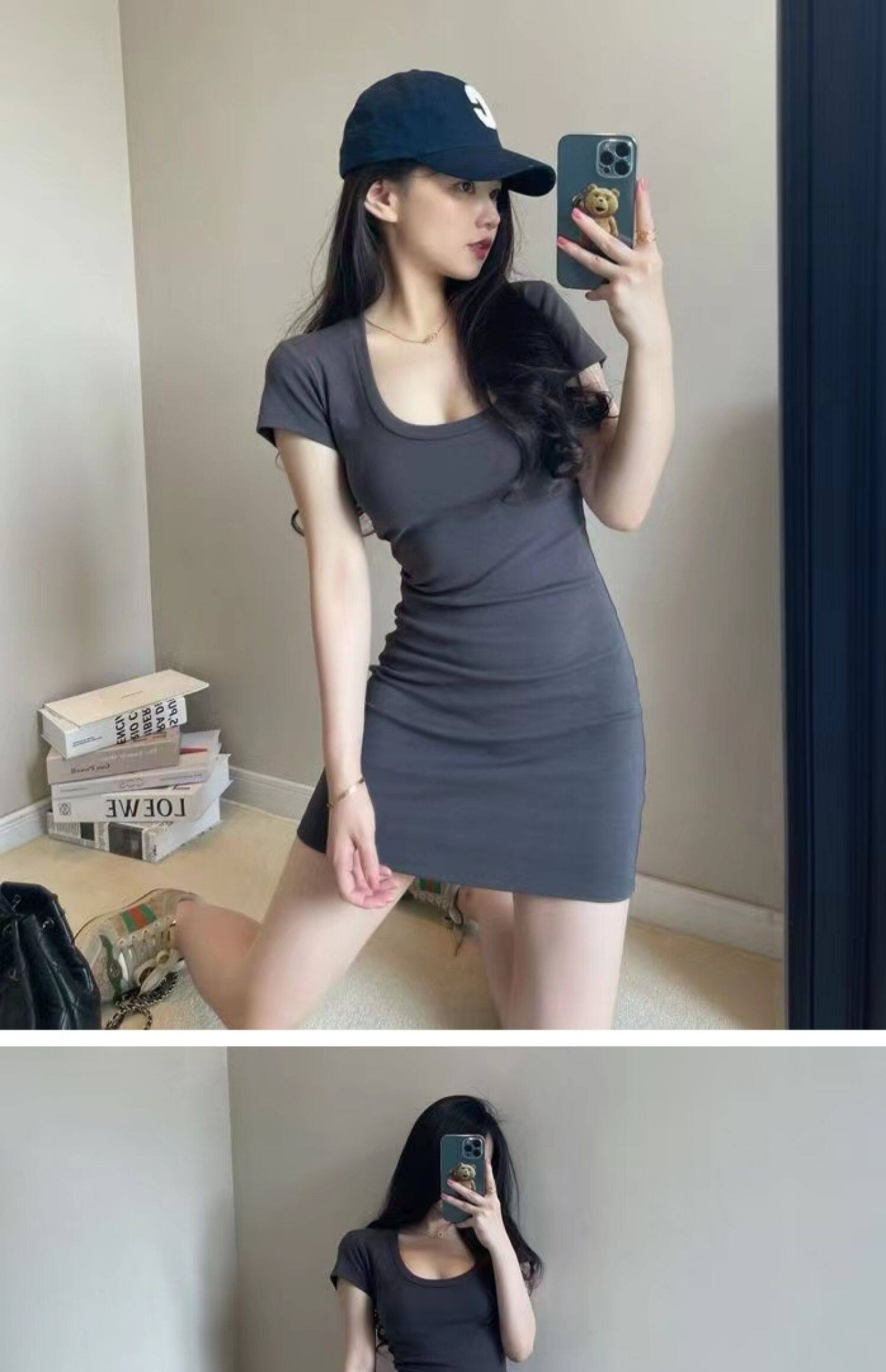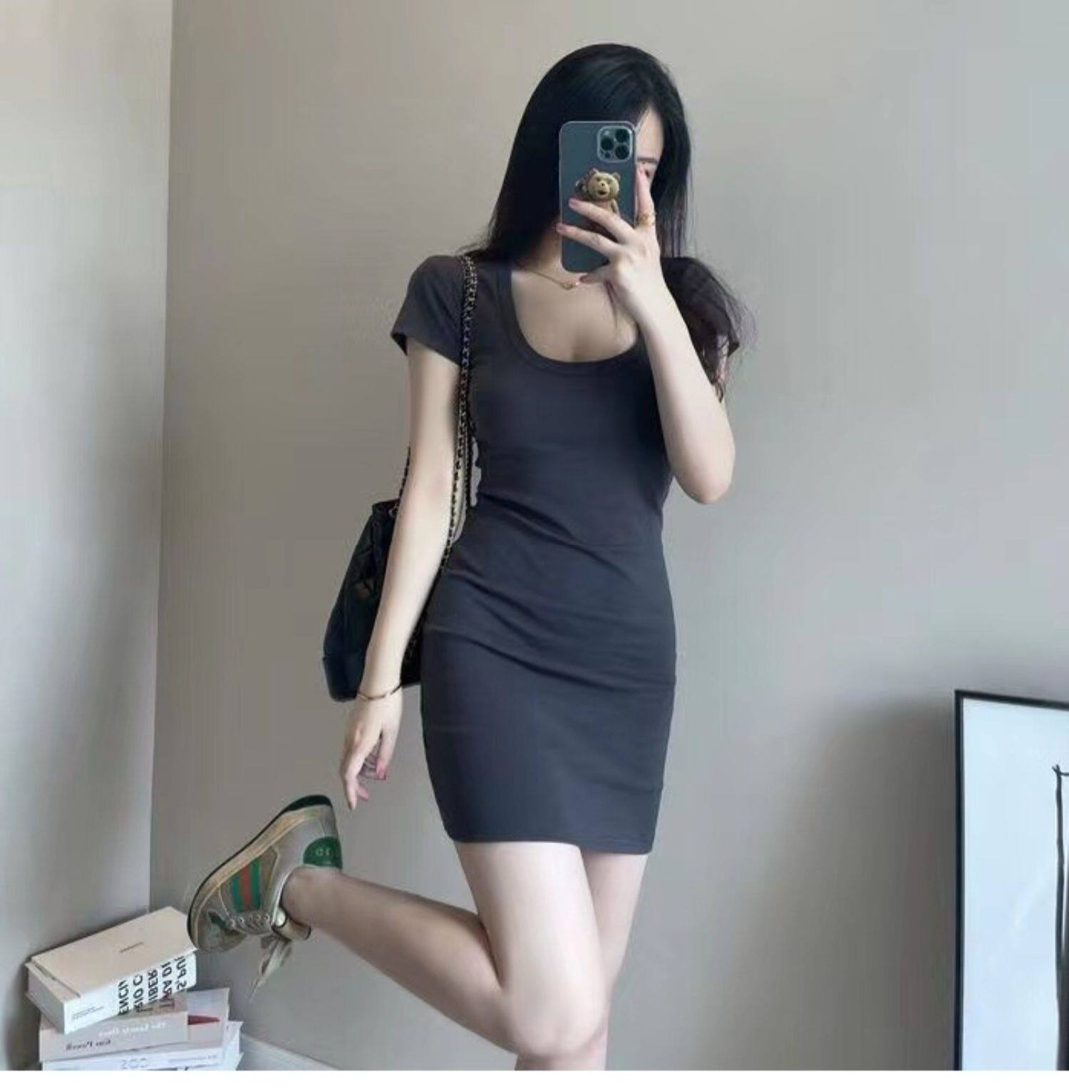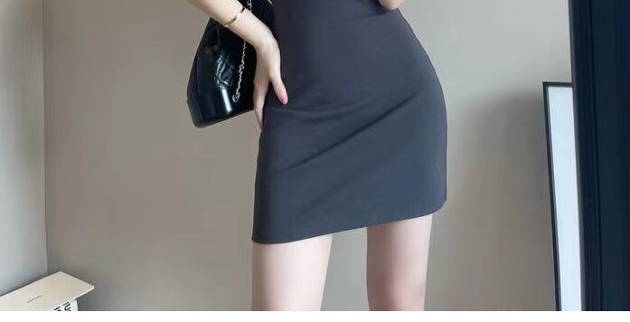 Pure lust U neck low cut t-shirt hip skirt black dress women's tight sexy short skirt slim thin bottom skirt