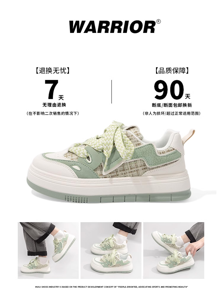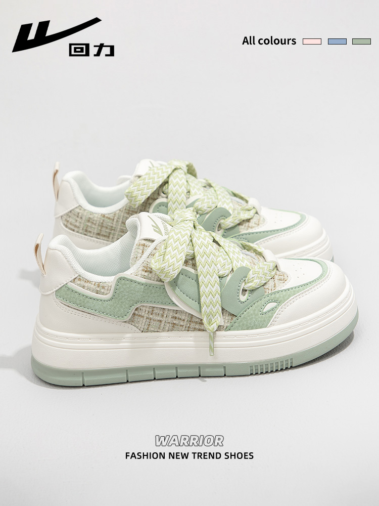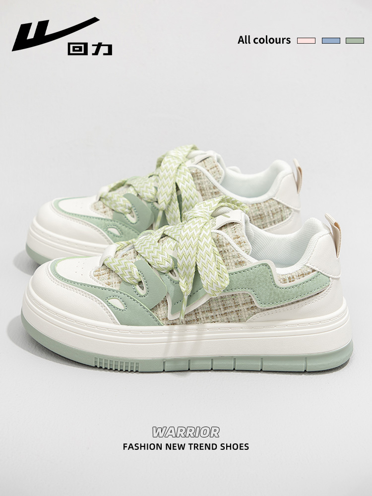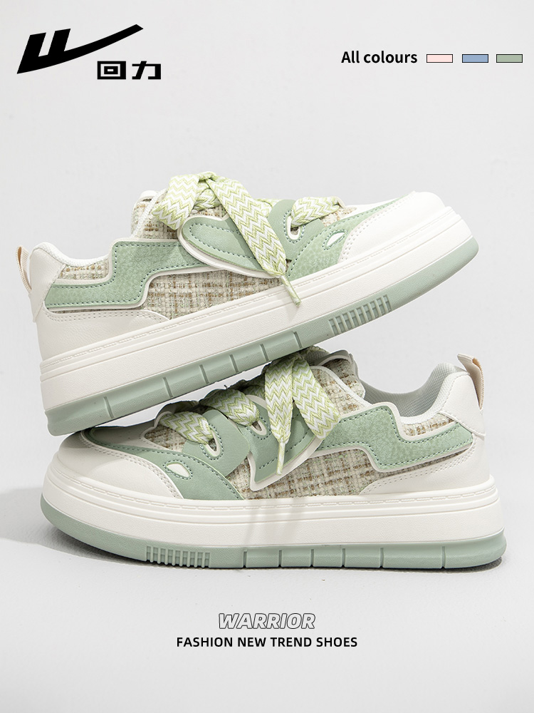 Huili matcha green white shoes women's 2025 autumn and winter new versatile niche casual bread shoes thick-soled explosive board shoes