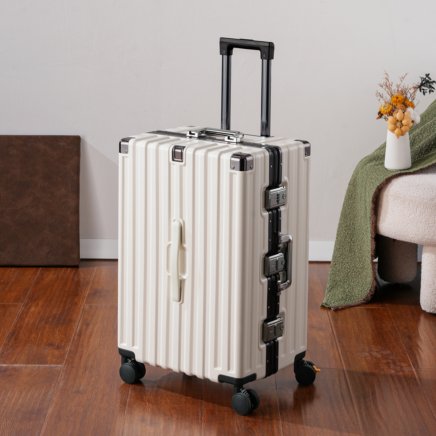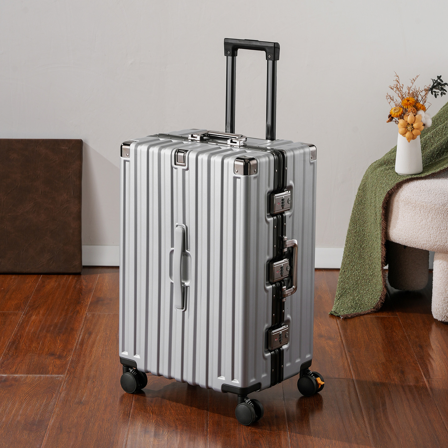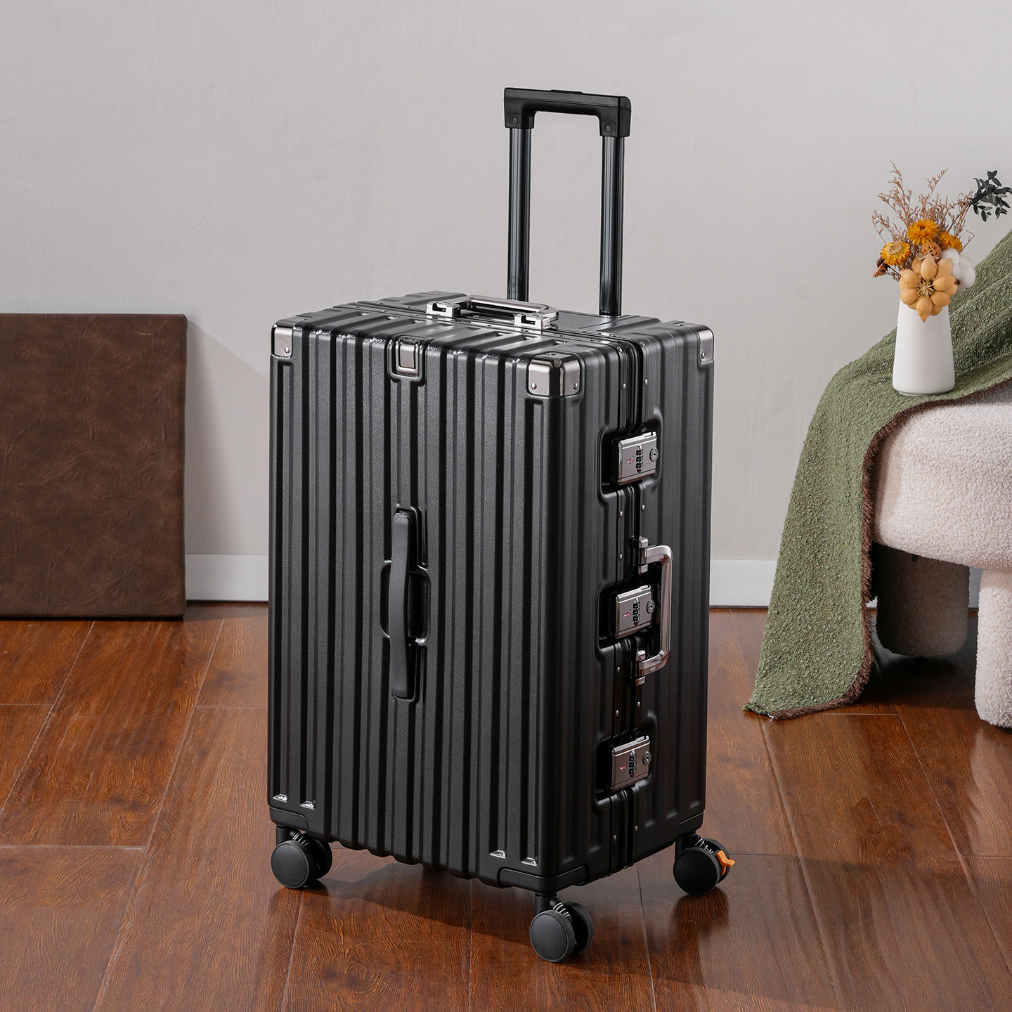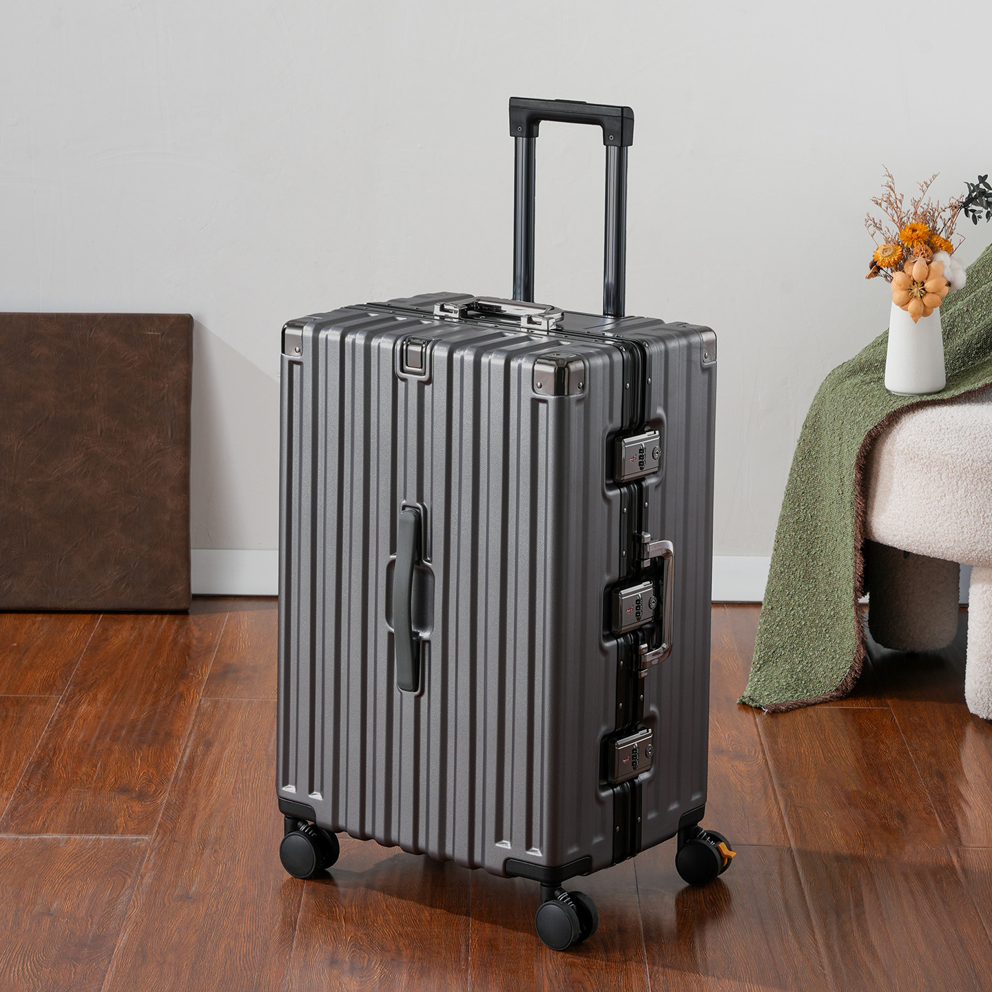 Suitcase trolley case female 2025 new male student aluminum frame suitcase spinner wheel 20 boarding code leather suitcase