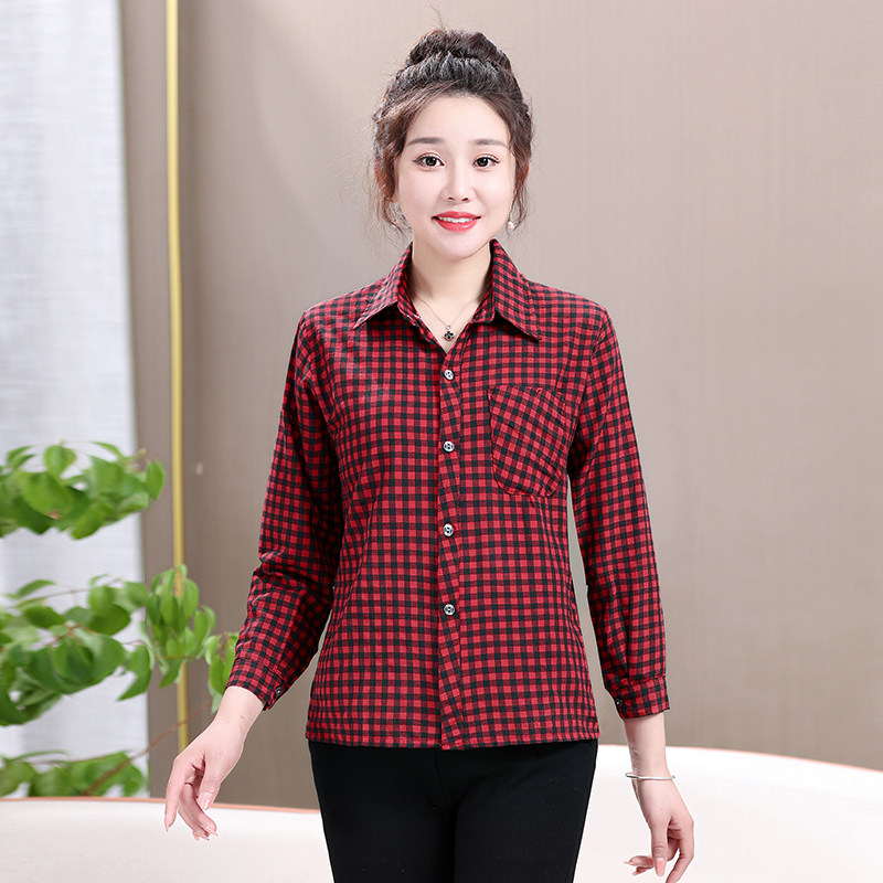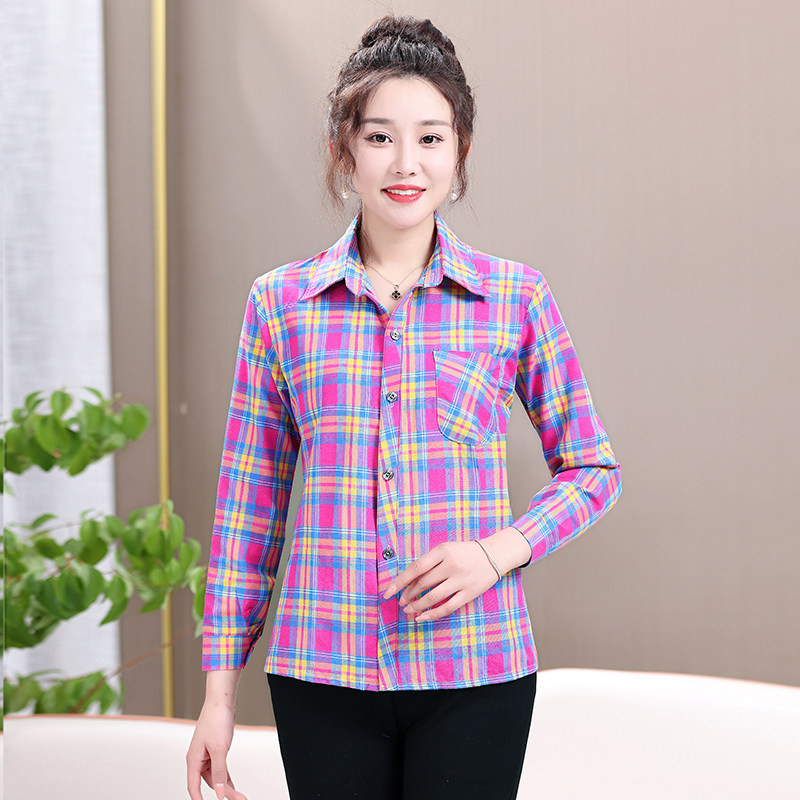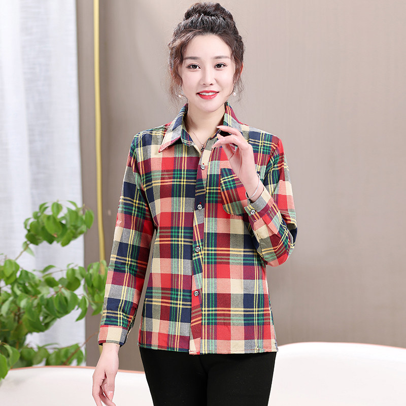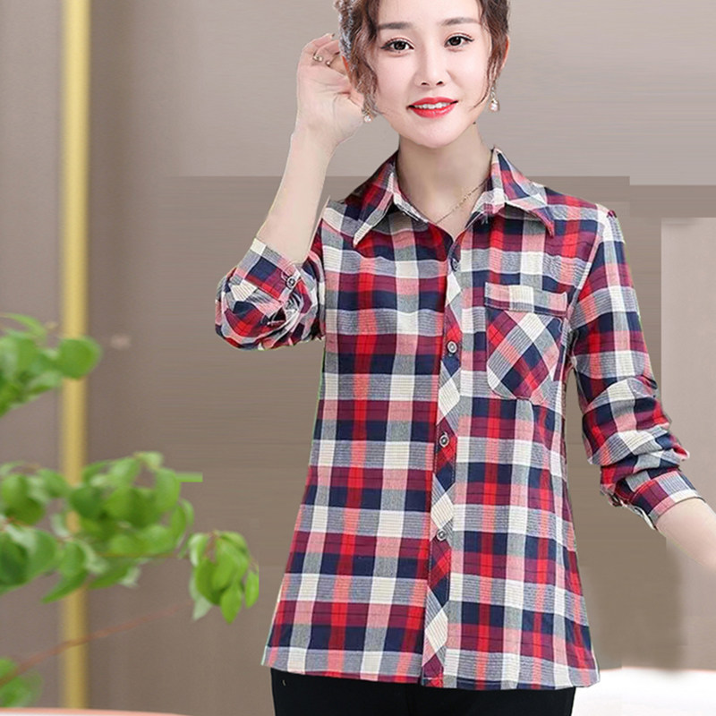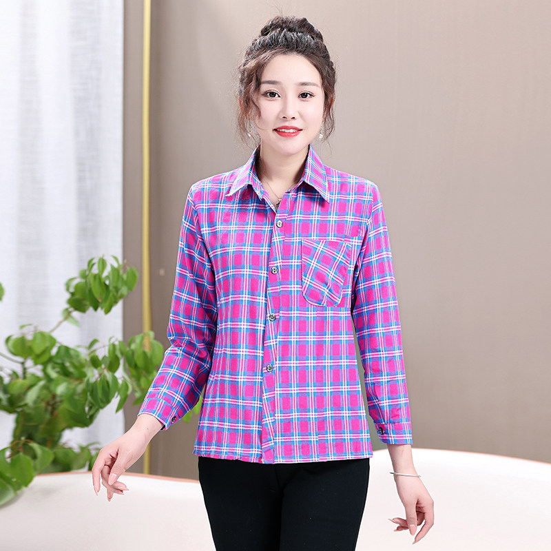Mom plaid shirt cotton casual sunscreen cardigan summer middle aged women's long sleeve base shirt jacket jacket women