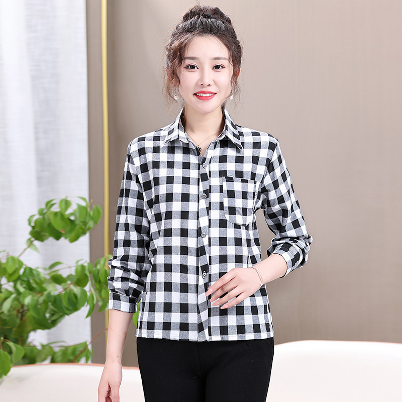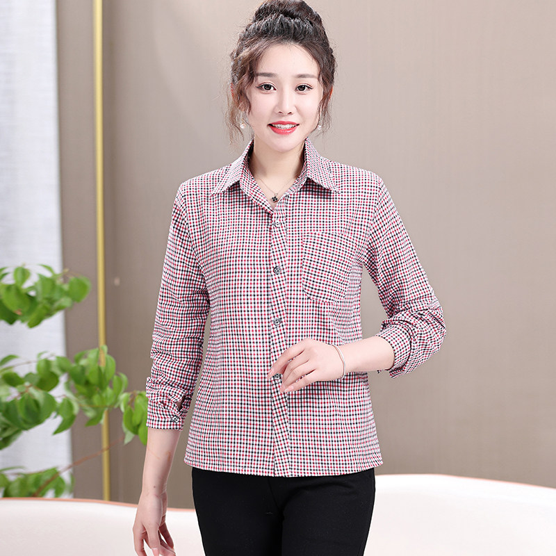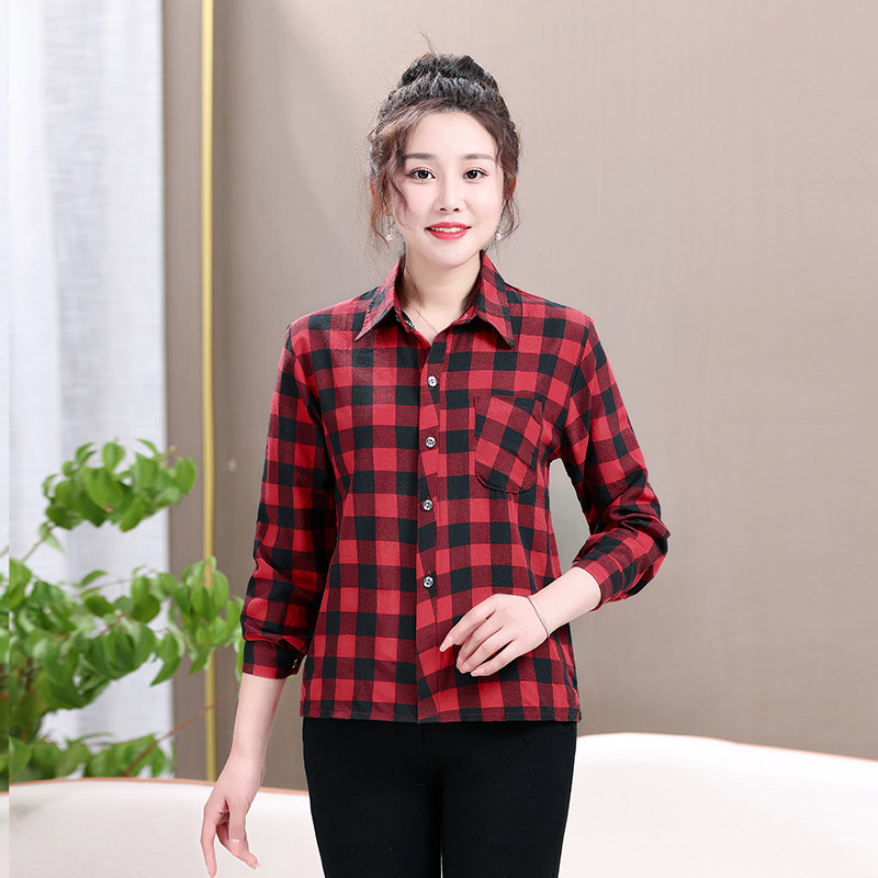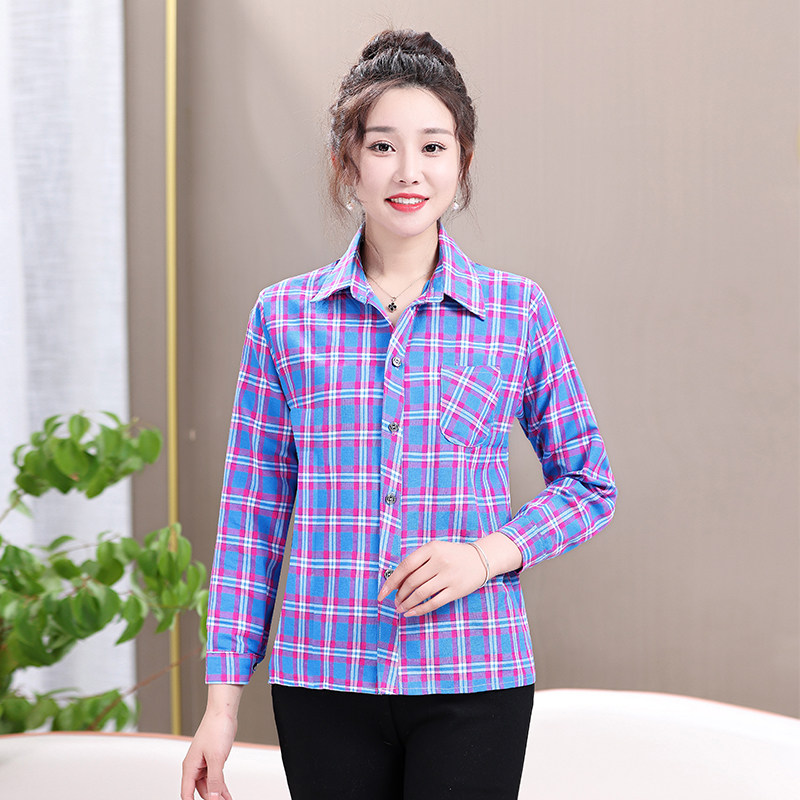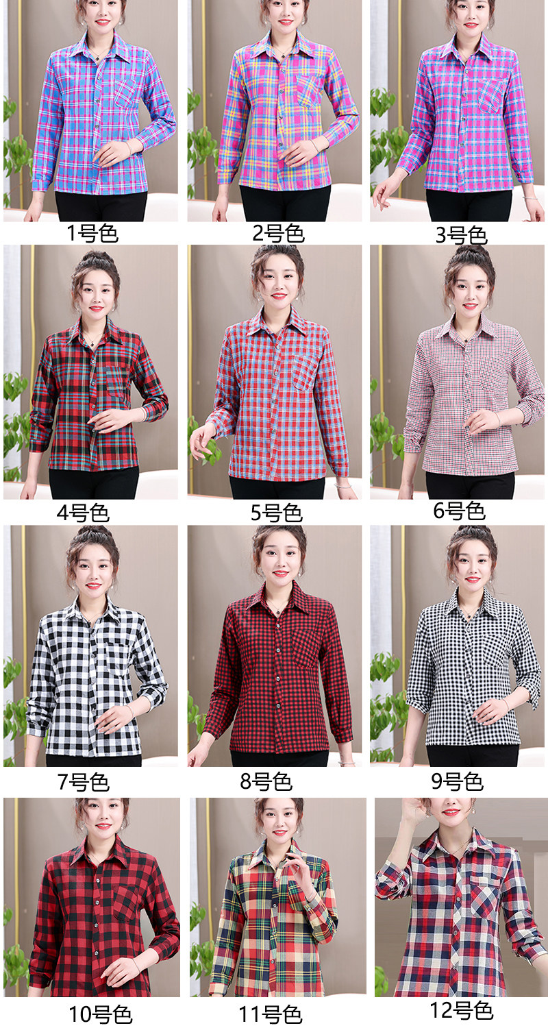 Mom plaid shirt cotton casual sunscreen cardigan summer middle aged women's long sleeve base shirt jacket jacket women