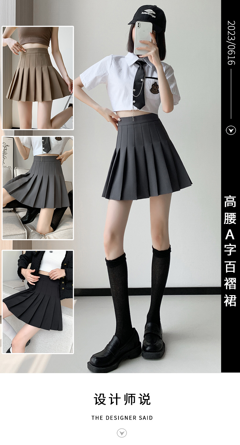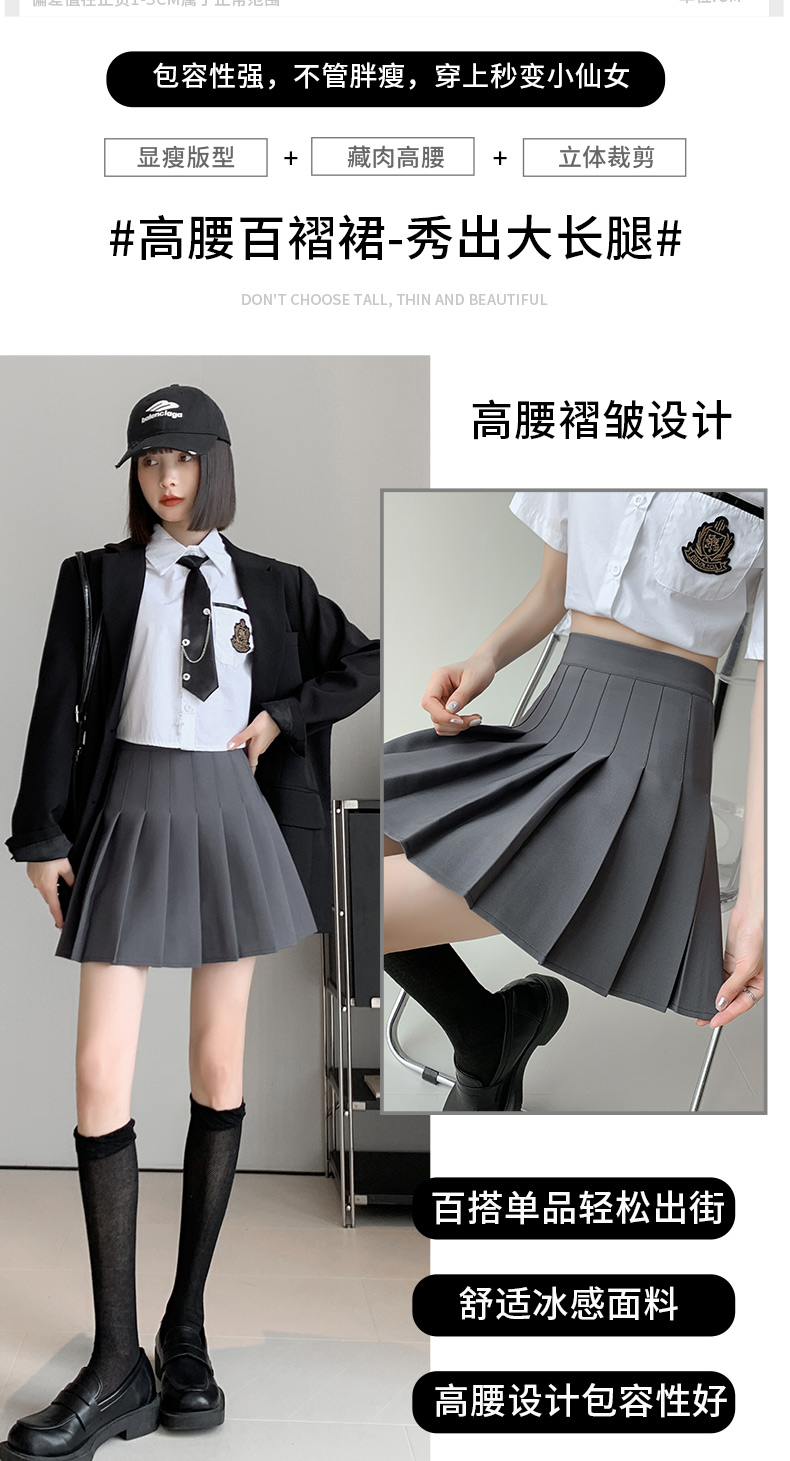 Black Pleated Skirt Women's 2025 New Summer High Waist A-Line Skirt Autumn Slim Gray Short Skirt Small Skirt