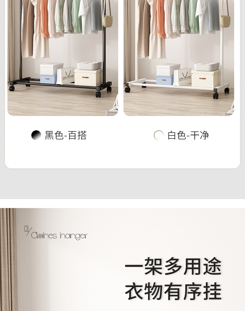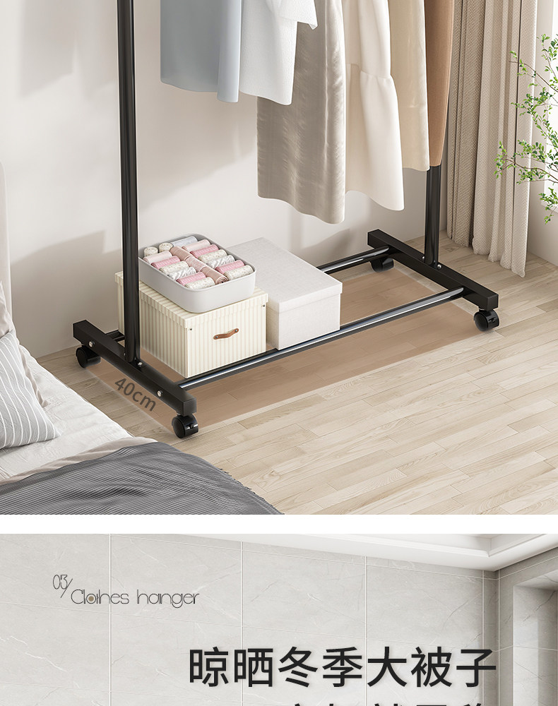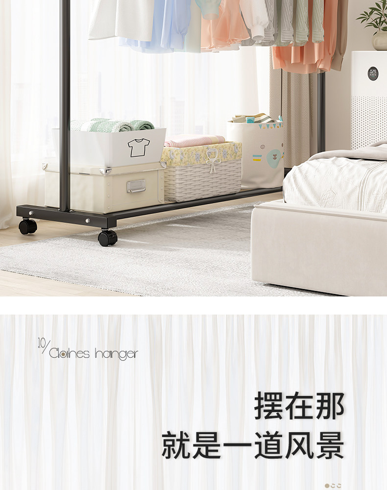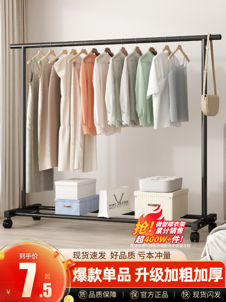 Clothes hanger floor home bedroom hanging clothes folding single pole simple indoor dormitory mobile drying clothes rack
