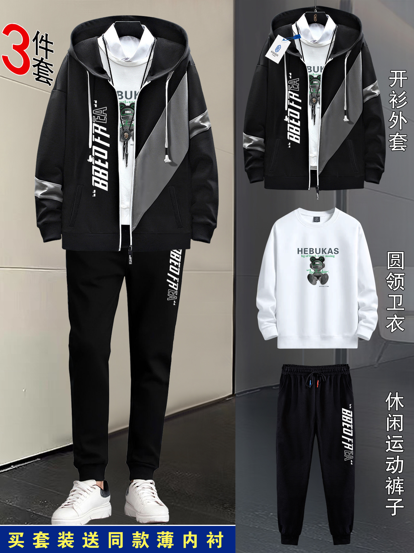 2025 Fall/Winter Jacket Sweatshirt Men's Casual Sportssuit Men's Handsome Set with Hooded Students and Teenagers