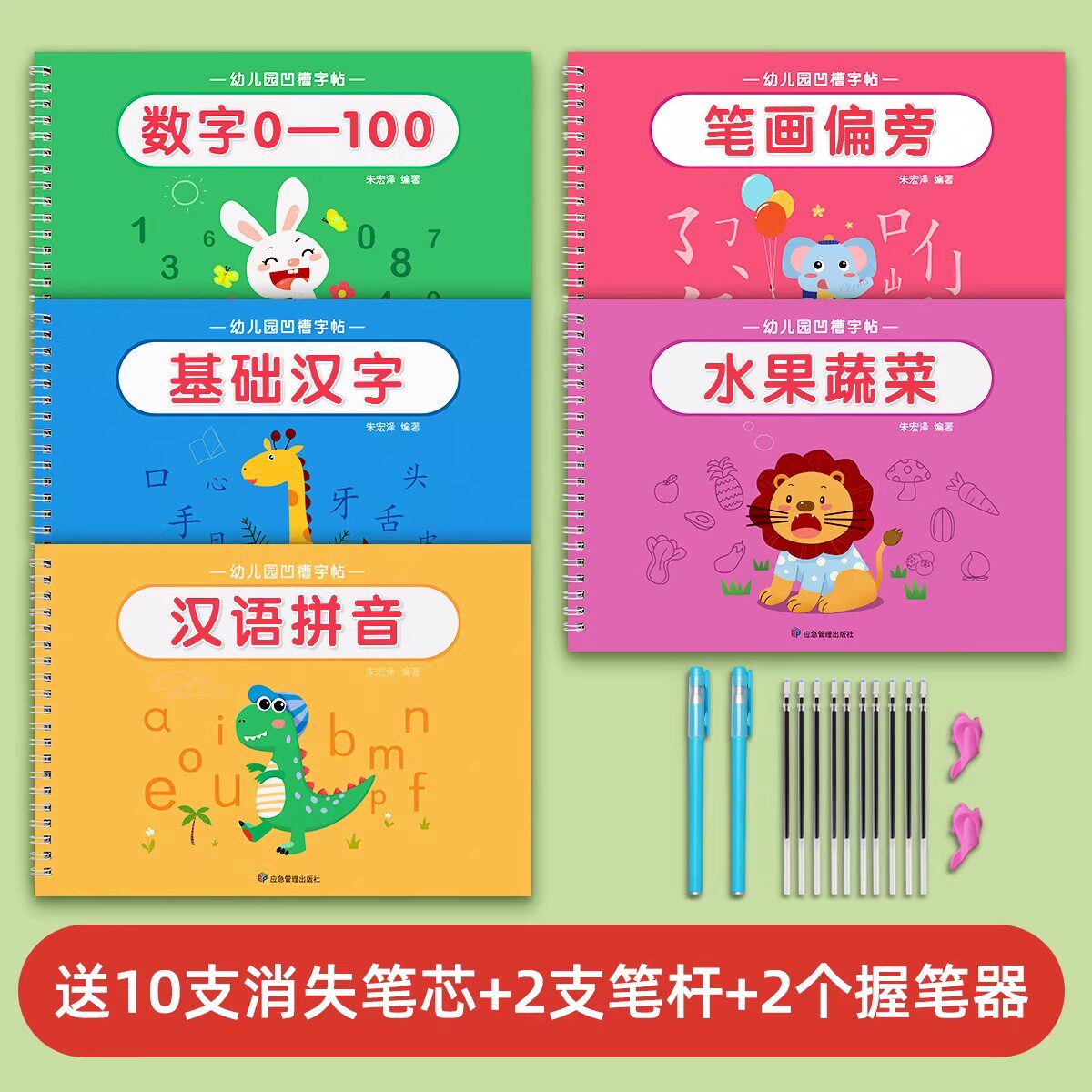 Digital calligraphy practice book, kindergarten groove pen control training, children's practice calligraphy introductory red book special middle class, large class, daily practice to learn to write baby calligraphy book, 1 to 10 writing children's drawing, kindergarten connection enlightenment workbook