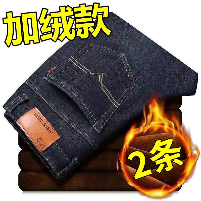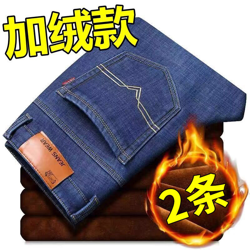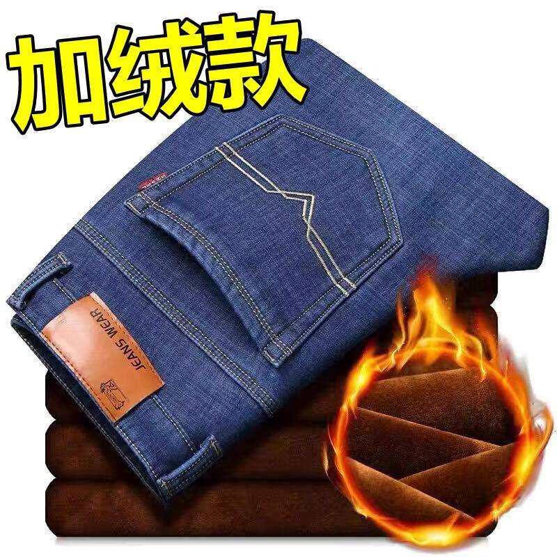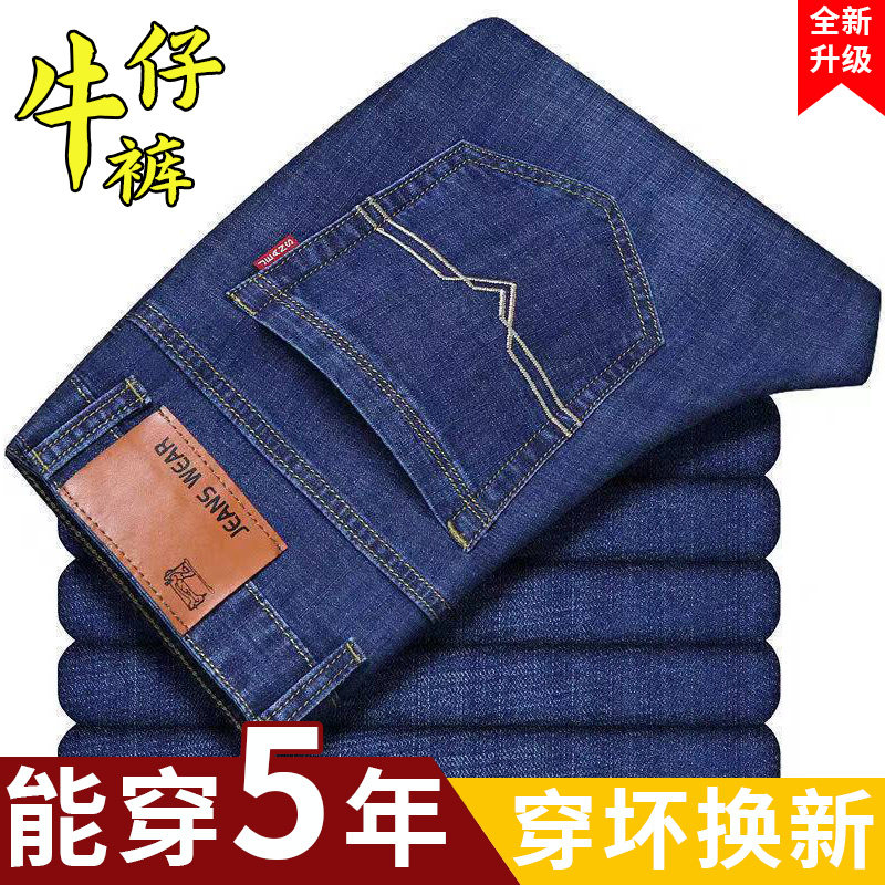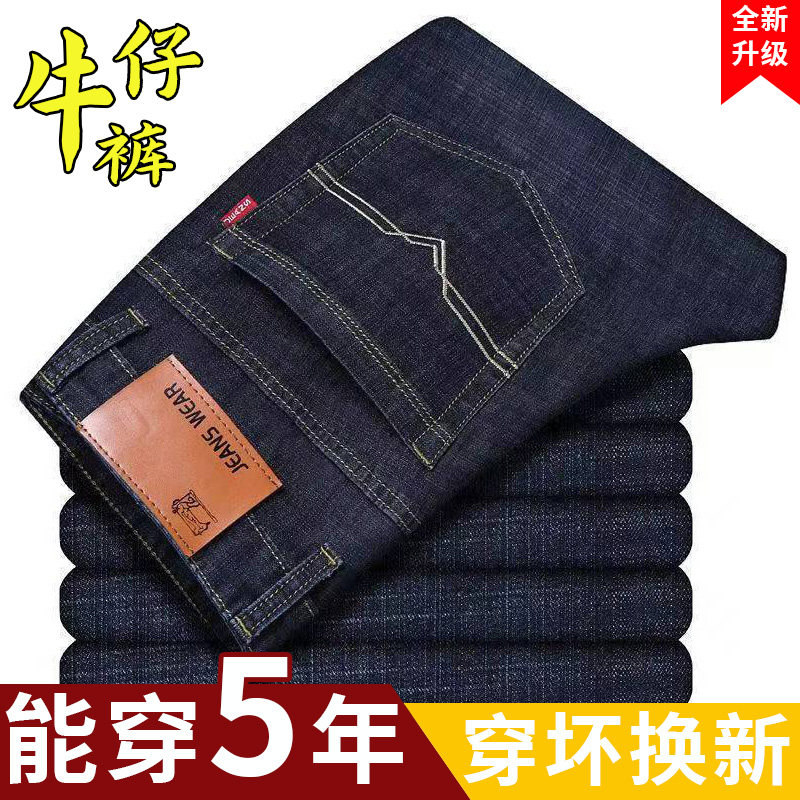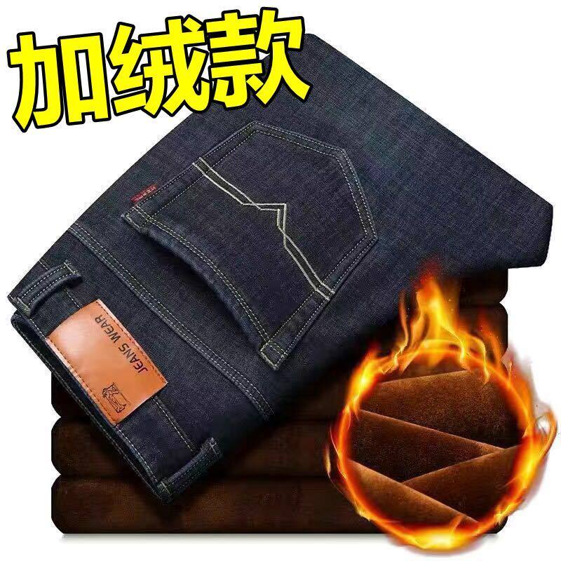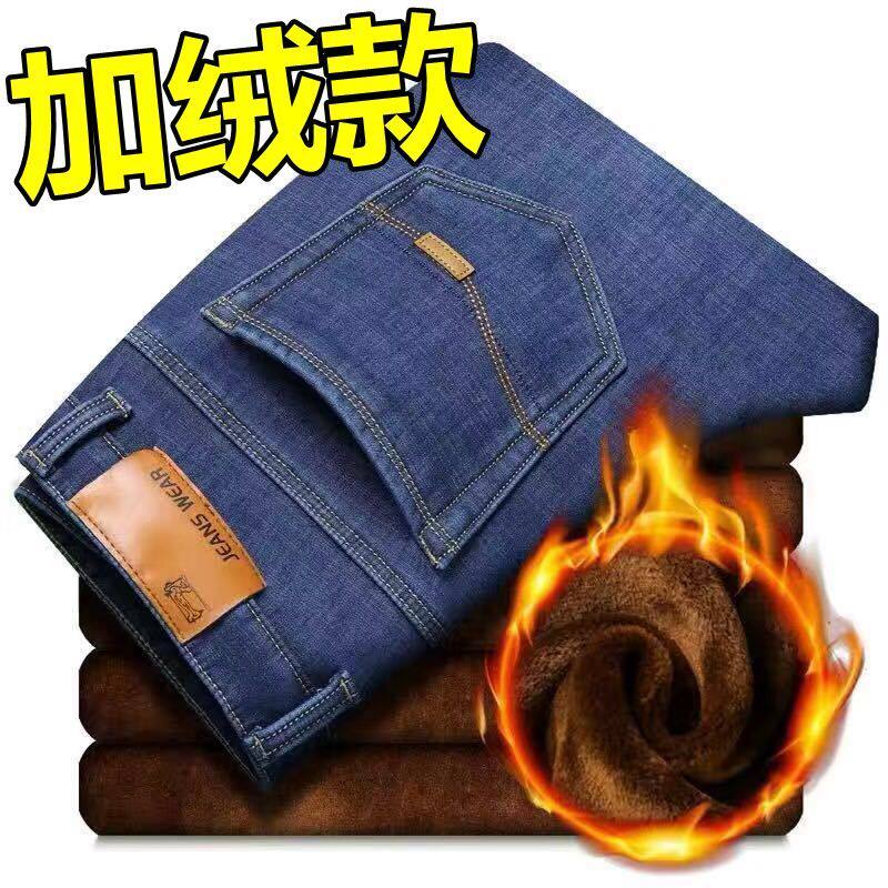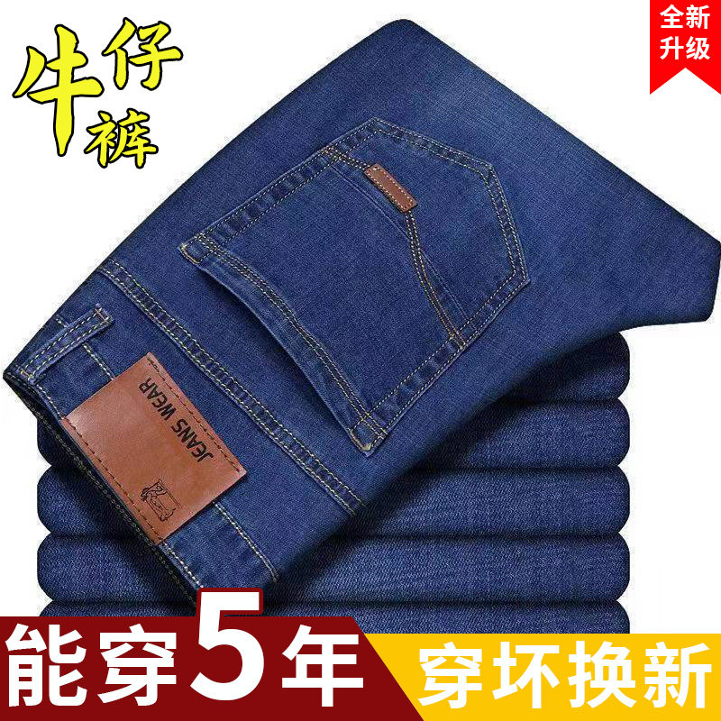 Jeans men's loose straight stretch summer new explosive spring and autumn casual pants autumn and winter plush pants