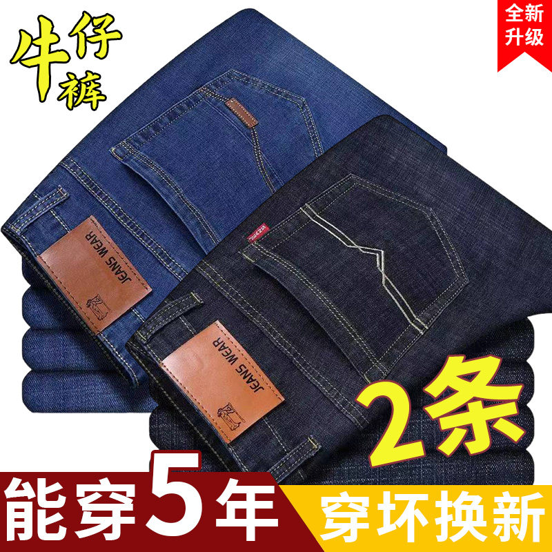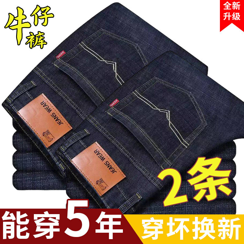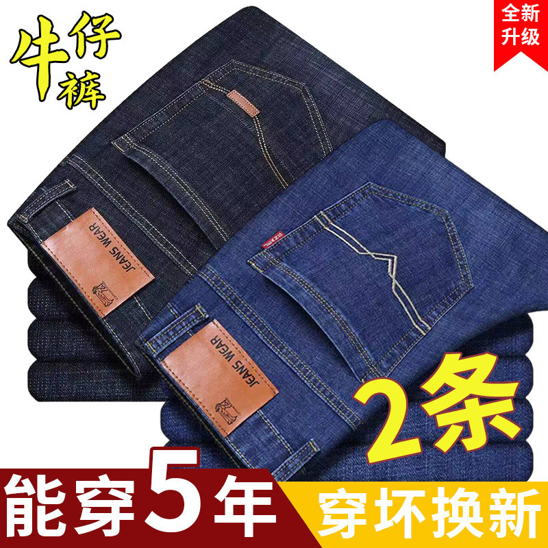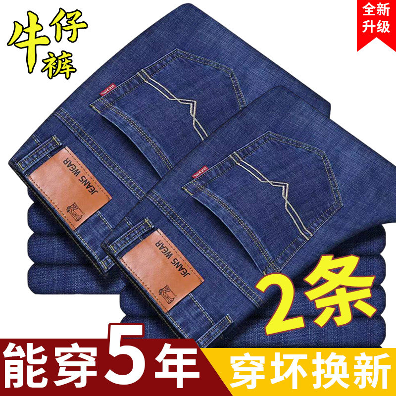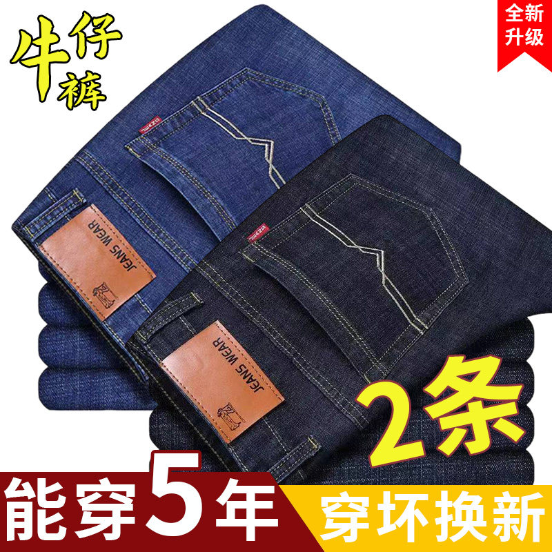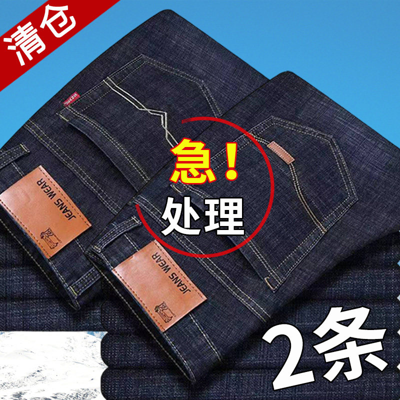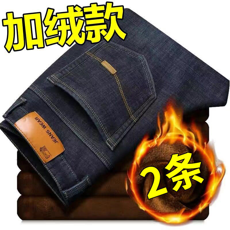 Jeans men's loose straight stretch summer new explosive spring and autumn casual pants autumn and winter plush pants
