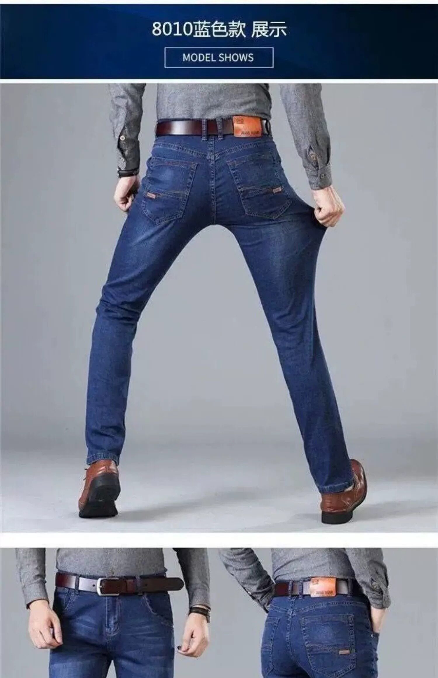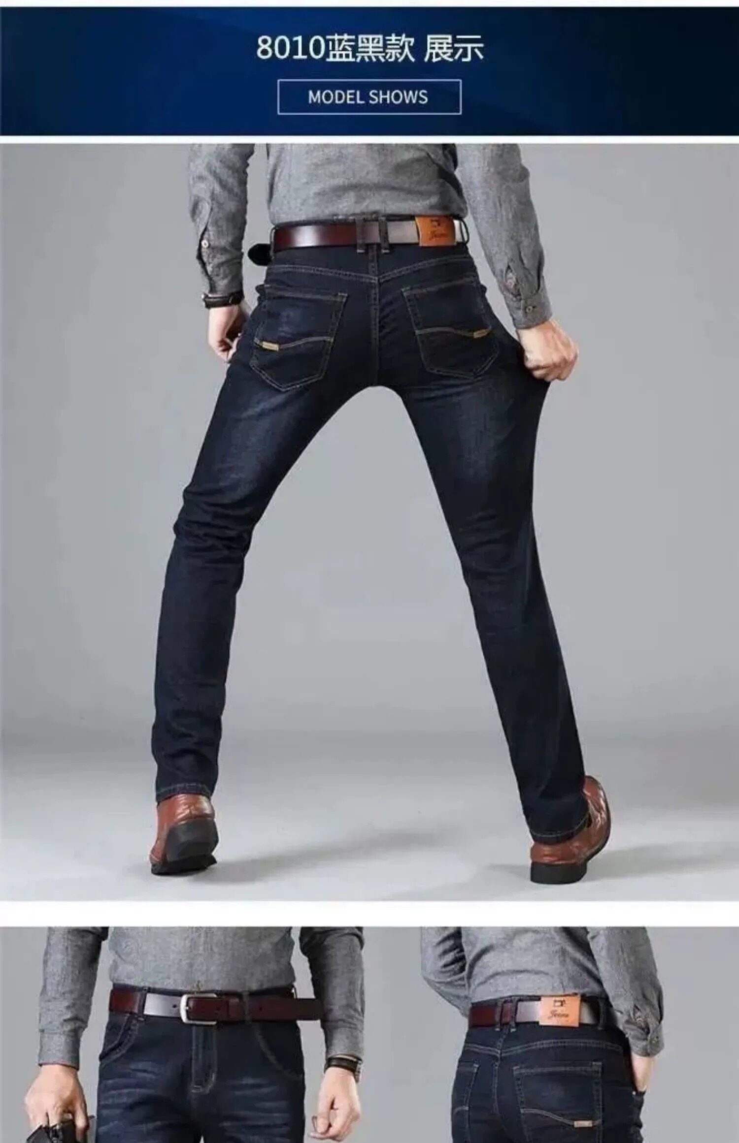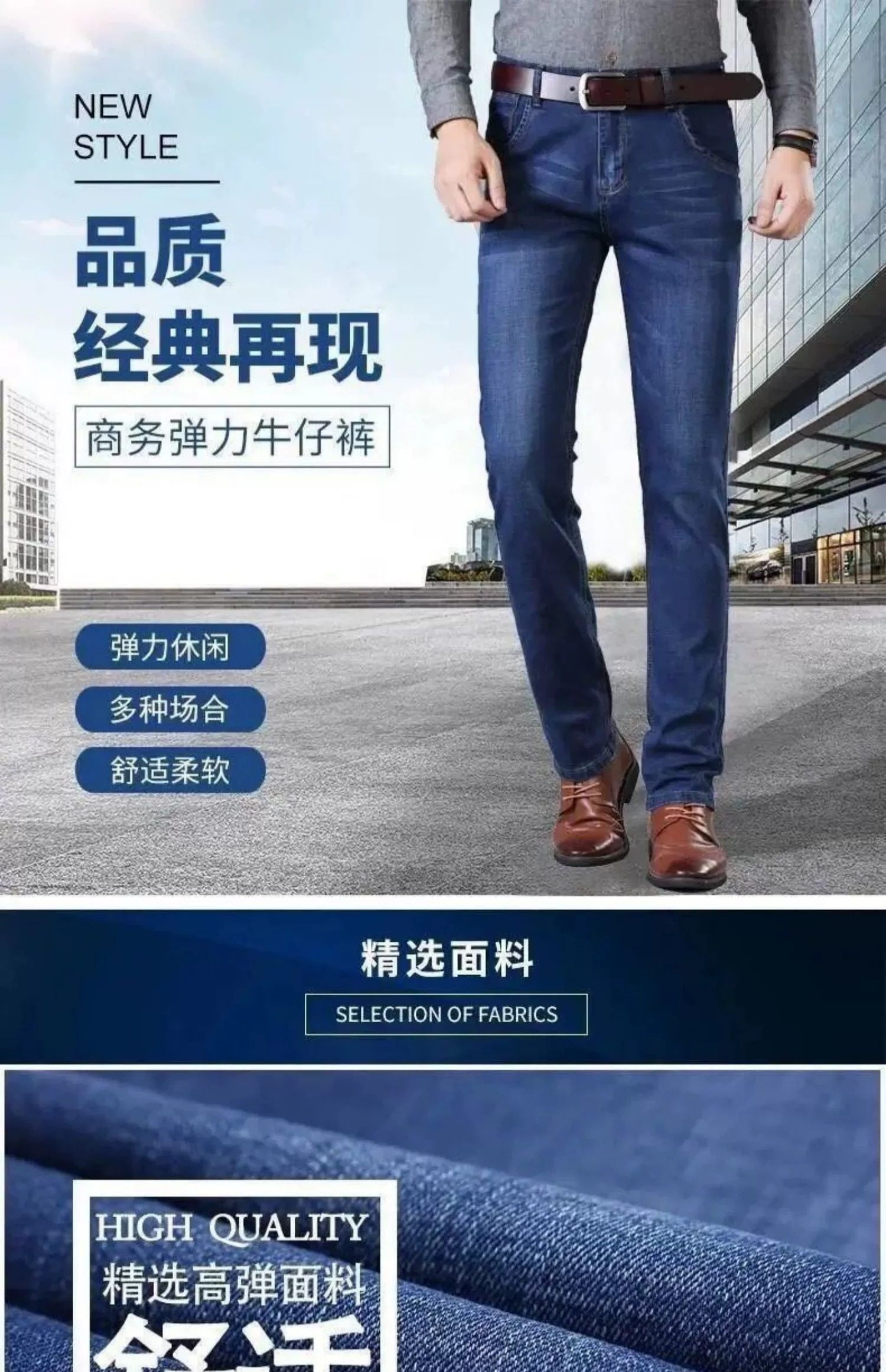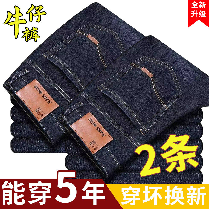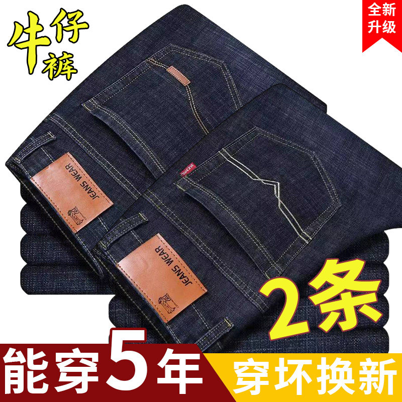 Jeans men's loose straight stretch summer new explosive spring and autumn casual pants autumn and winter plush pants