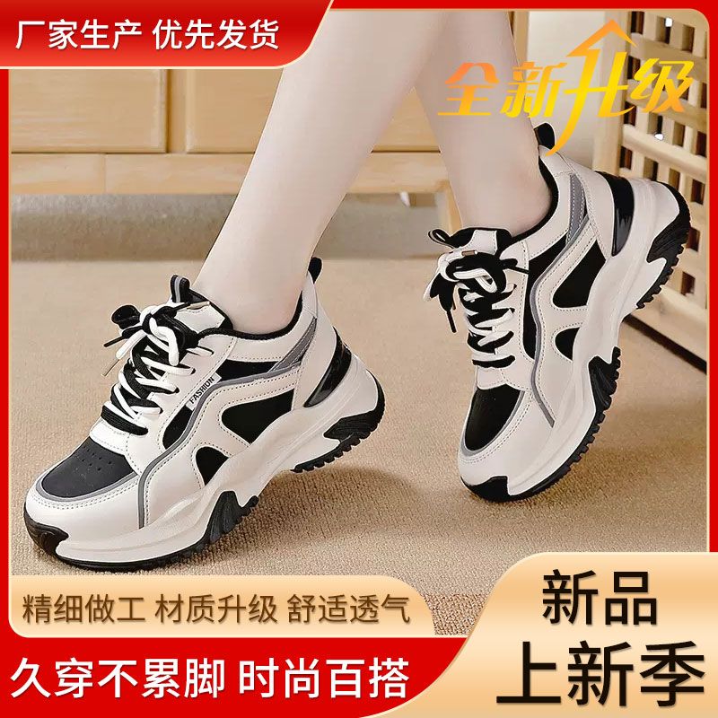 Popular women's shoes thick-soled daddy shoes women's height increase new versatile casual slimming soft-soled fleece sneakers in 2025