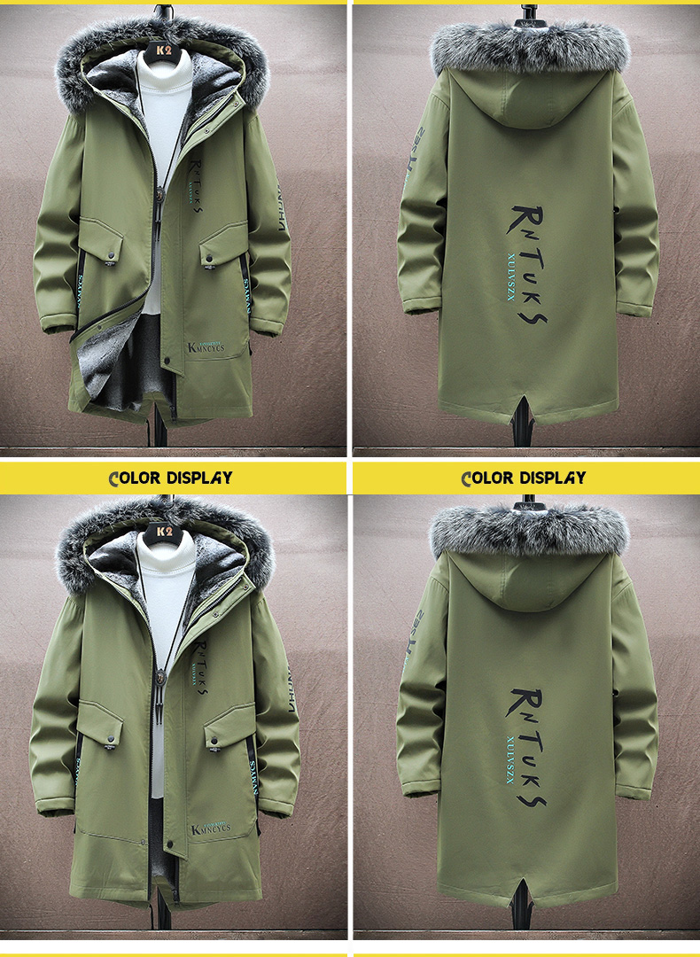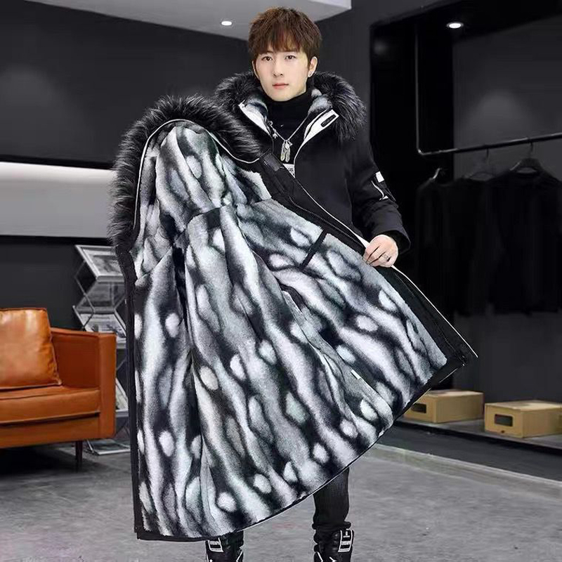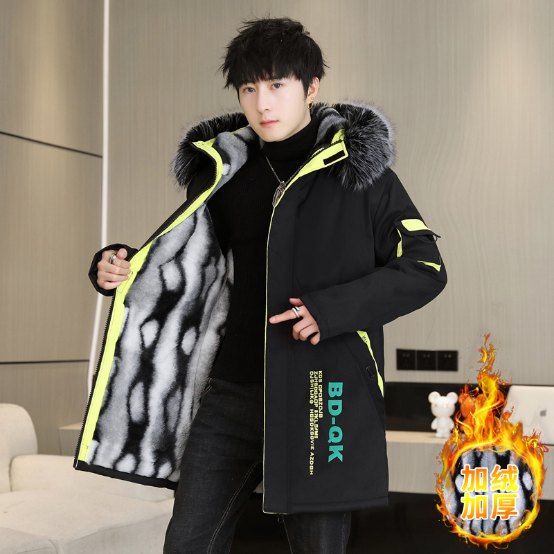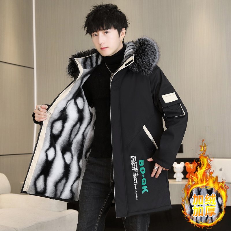 Down jacket men's mid-length winter 2025 new youth trend parka cotton jacket men's pile thickened jacket