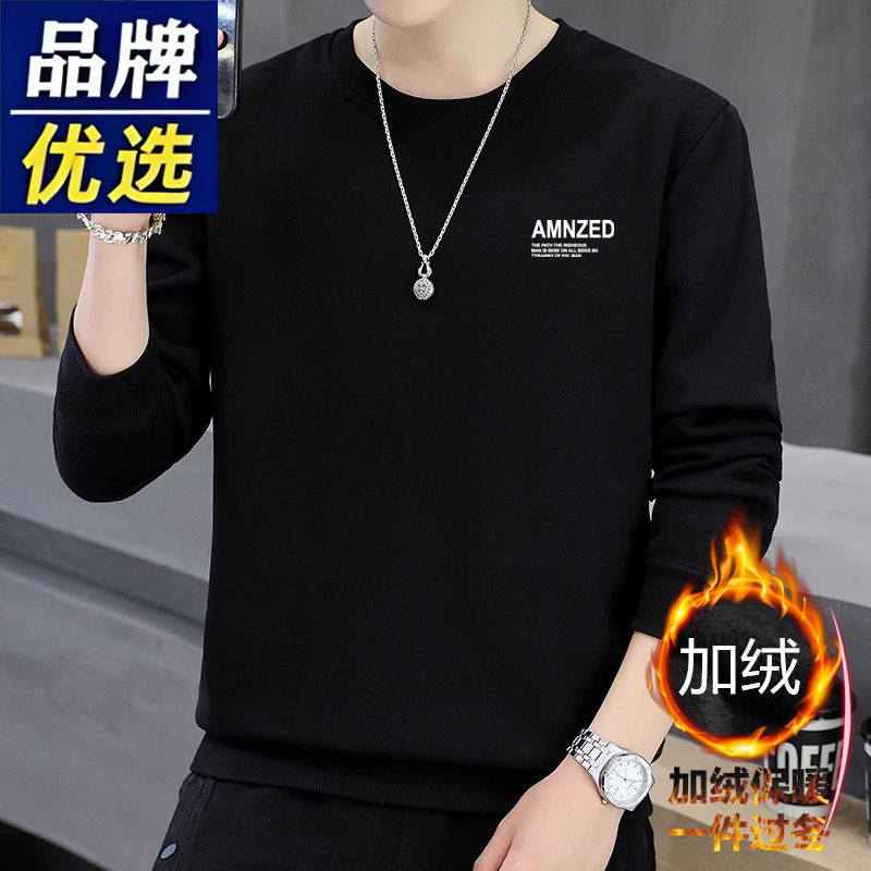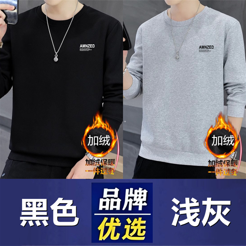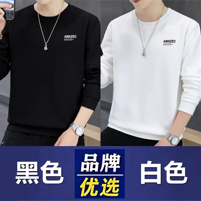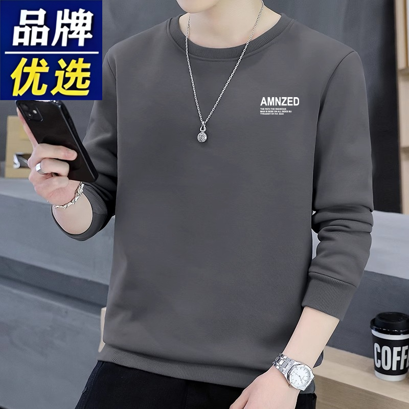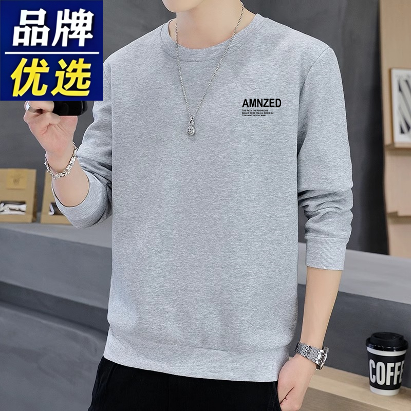 Branded men's sweatshirts, men's cotton, spring, autumn, winter, crew necks, boys' casual thickened tops, long-sleeved T-shirts as a base