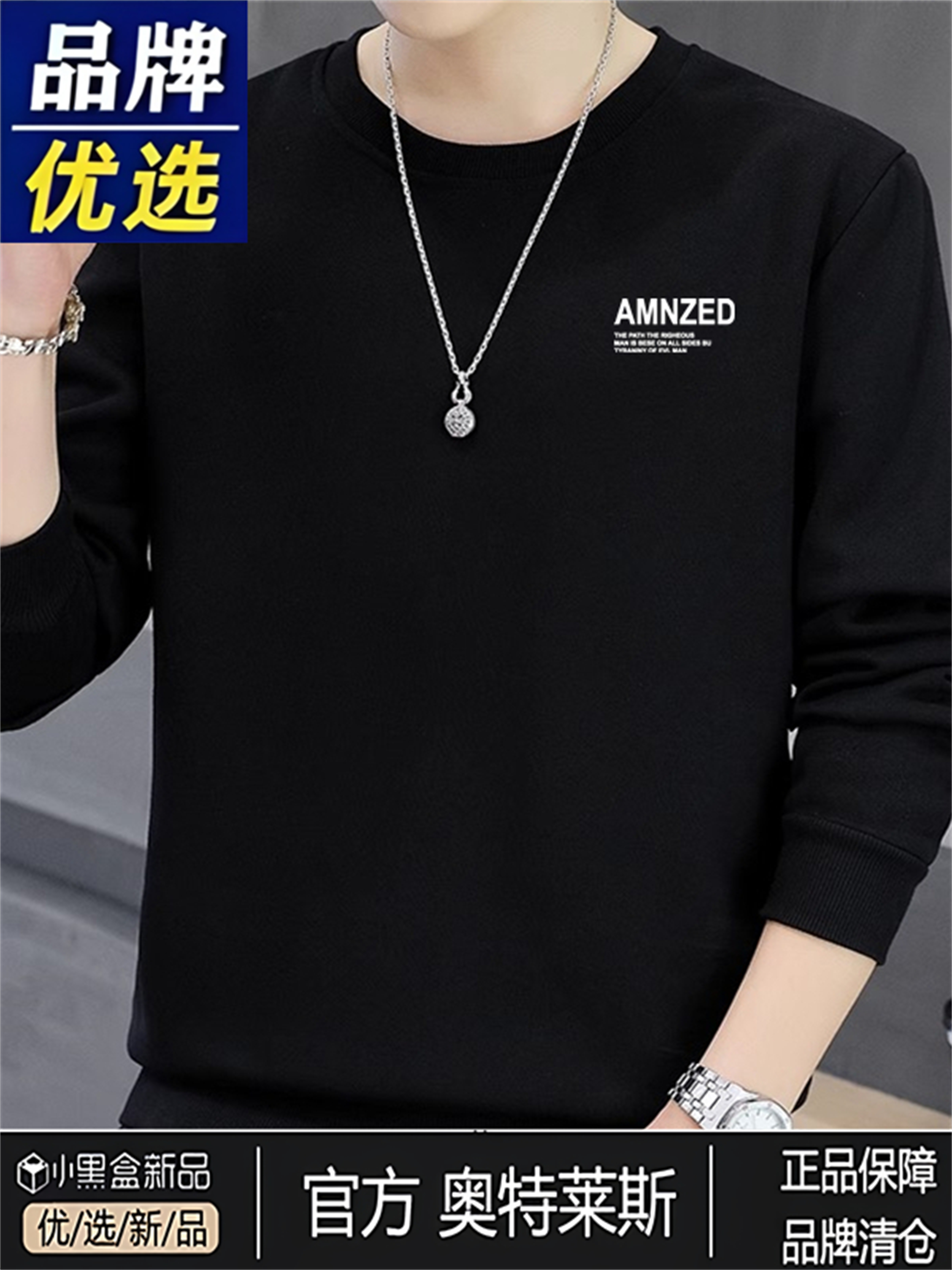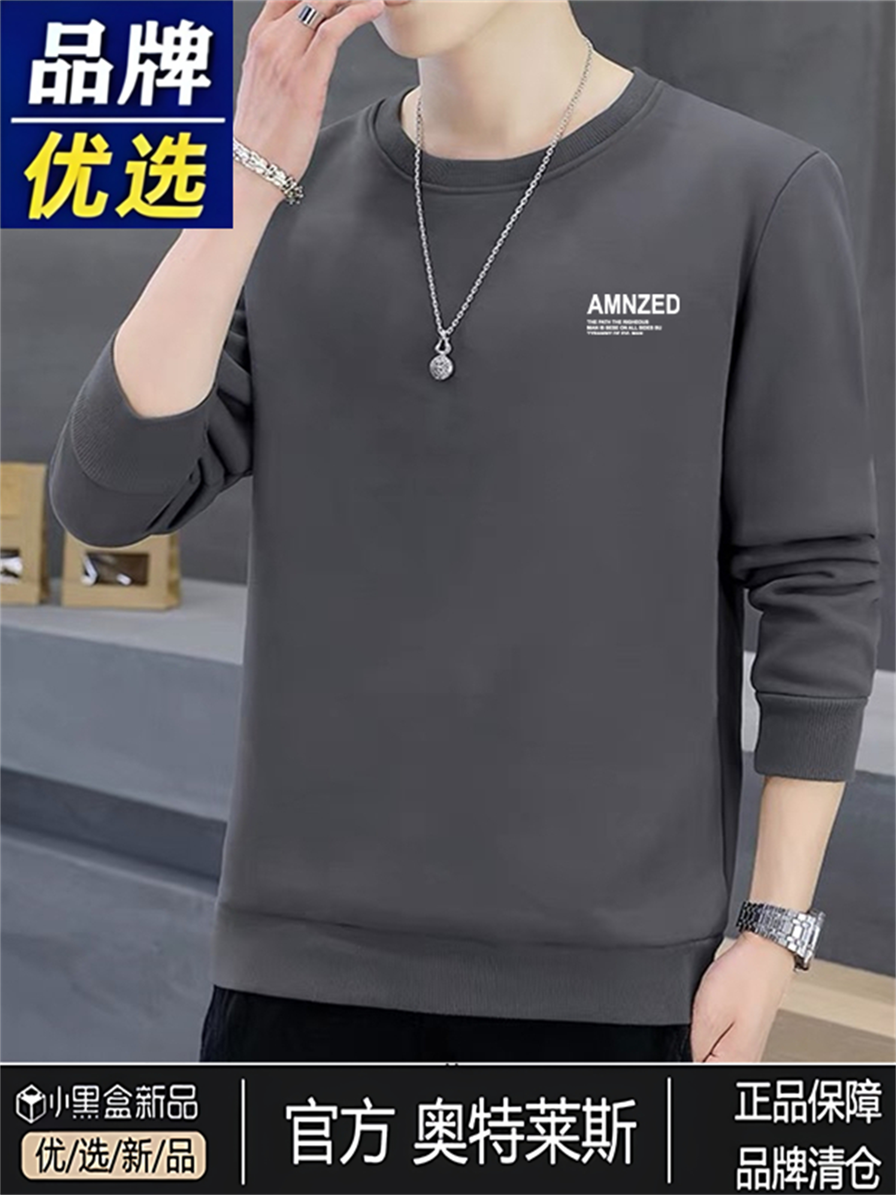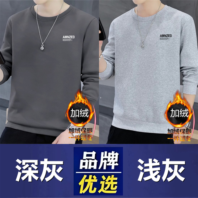 Branded men's sweatshirts, men's cotton, spring, autumn, winter, crew necks, boys' casual thickened tops, long-sleeved T-shirts as a base