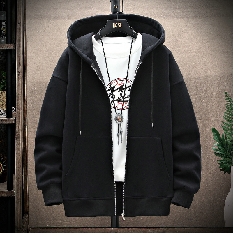 Clearance and leakage, foreign trade cabinet withdrawal, zipper sweatshirt, men's autumn and winter, fleece cardigan, hooded, wear-resistant and dirt-resistant youth coat