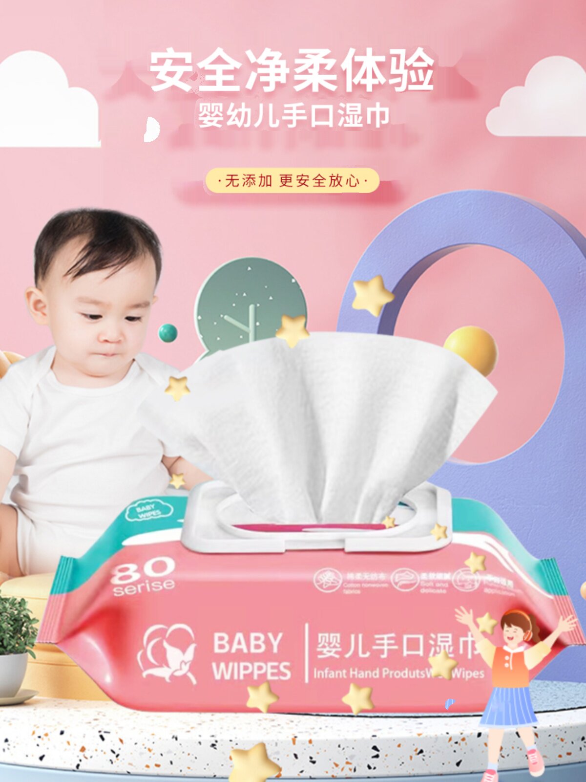 Wet wipes 80 large bags for outdoor babies and young children, new children, special wet wipes for face washing, face wiping for household use