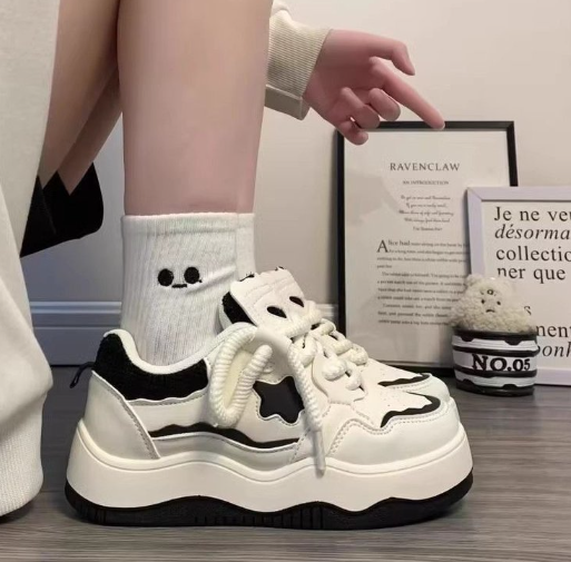 Star Little White Shoes Woman Autumn New Platform Student Board Shoes Children's Hong Kong Style Vintage INS Sports Casual Shoes Woman