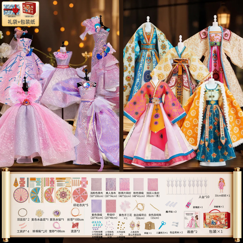 Time optical girl clothing design DIY handmade toys children's birthday gifts girls dress up dolls national style