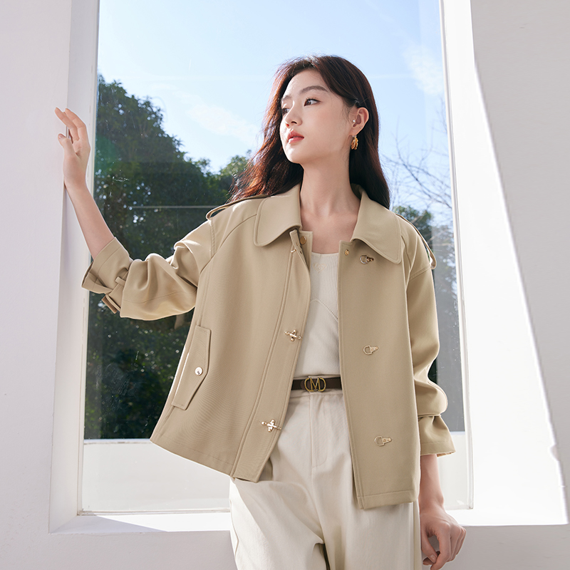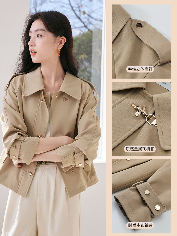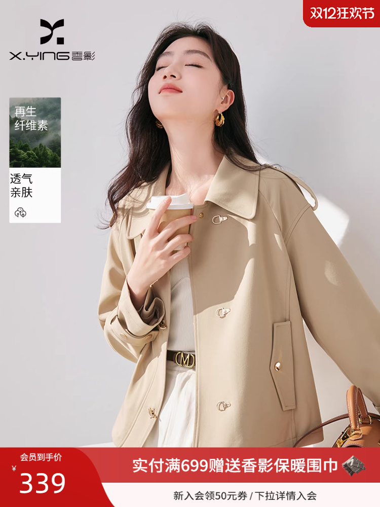 Xiangying short women's trench coat jacket spring 2026 new British style casual khaki petite jacket