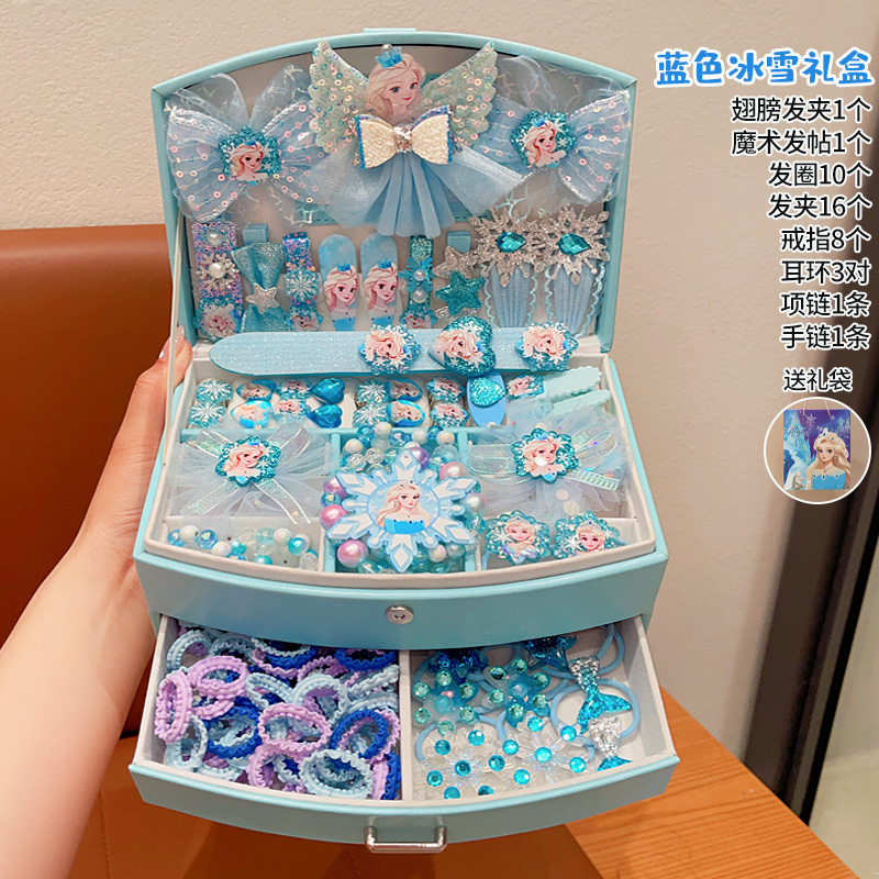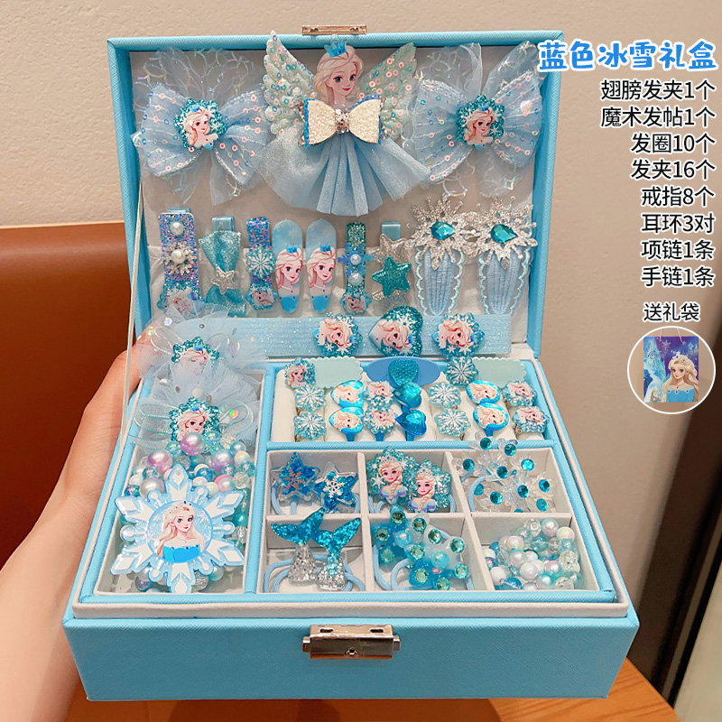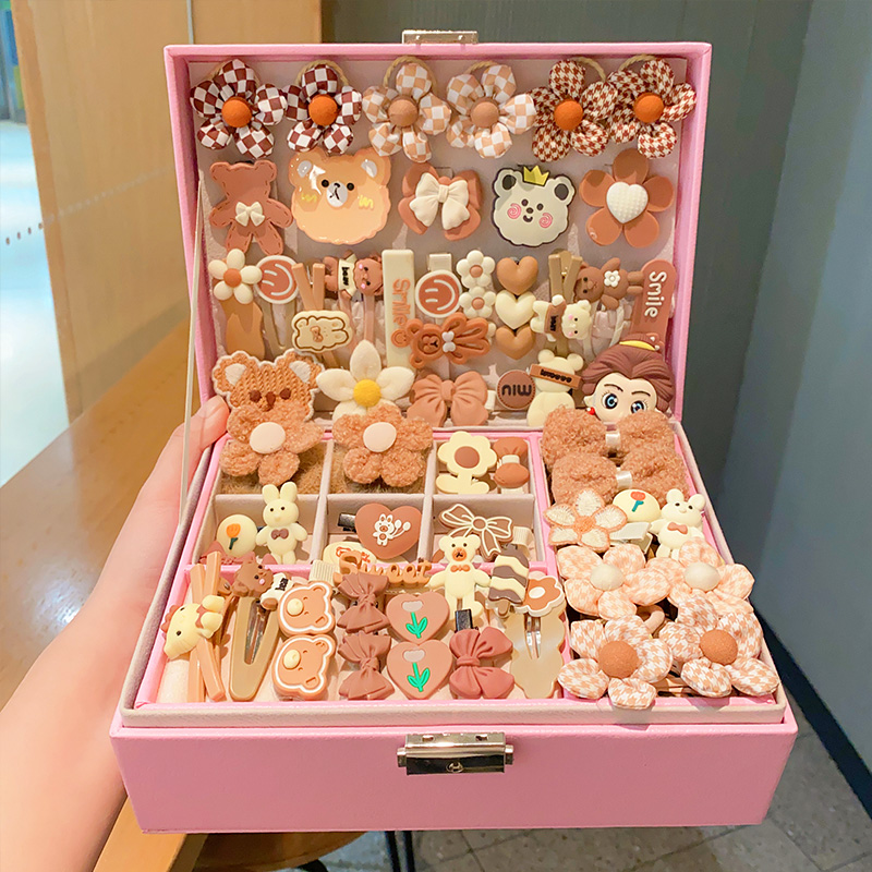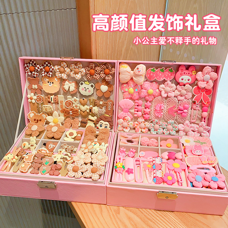Children's hairpins, hair accessories, gift box set, little girl's birthday gift, Korean princess head rope, girl jewelry box, 61