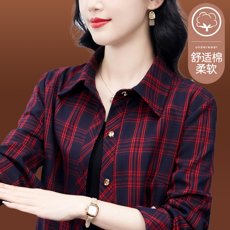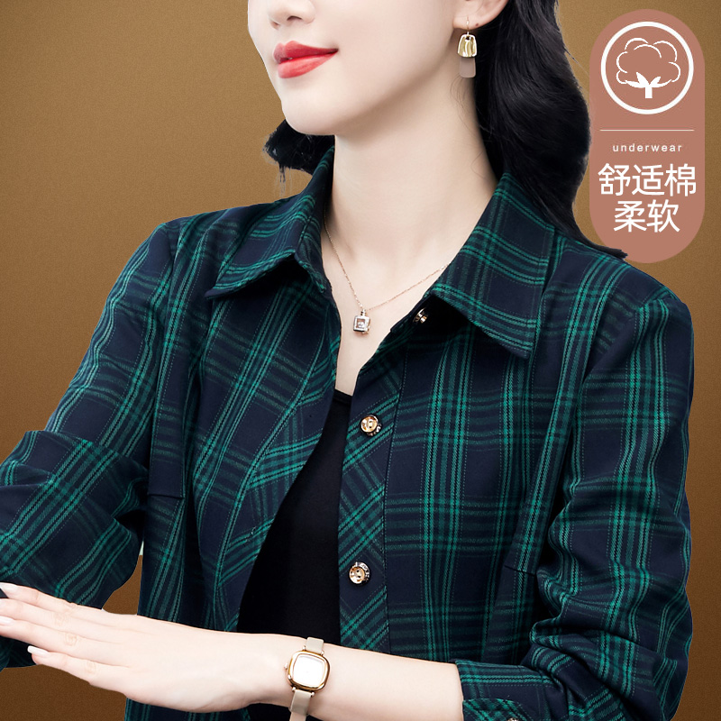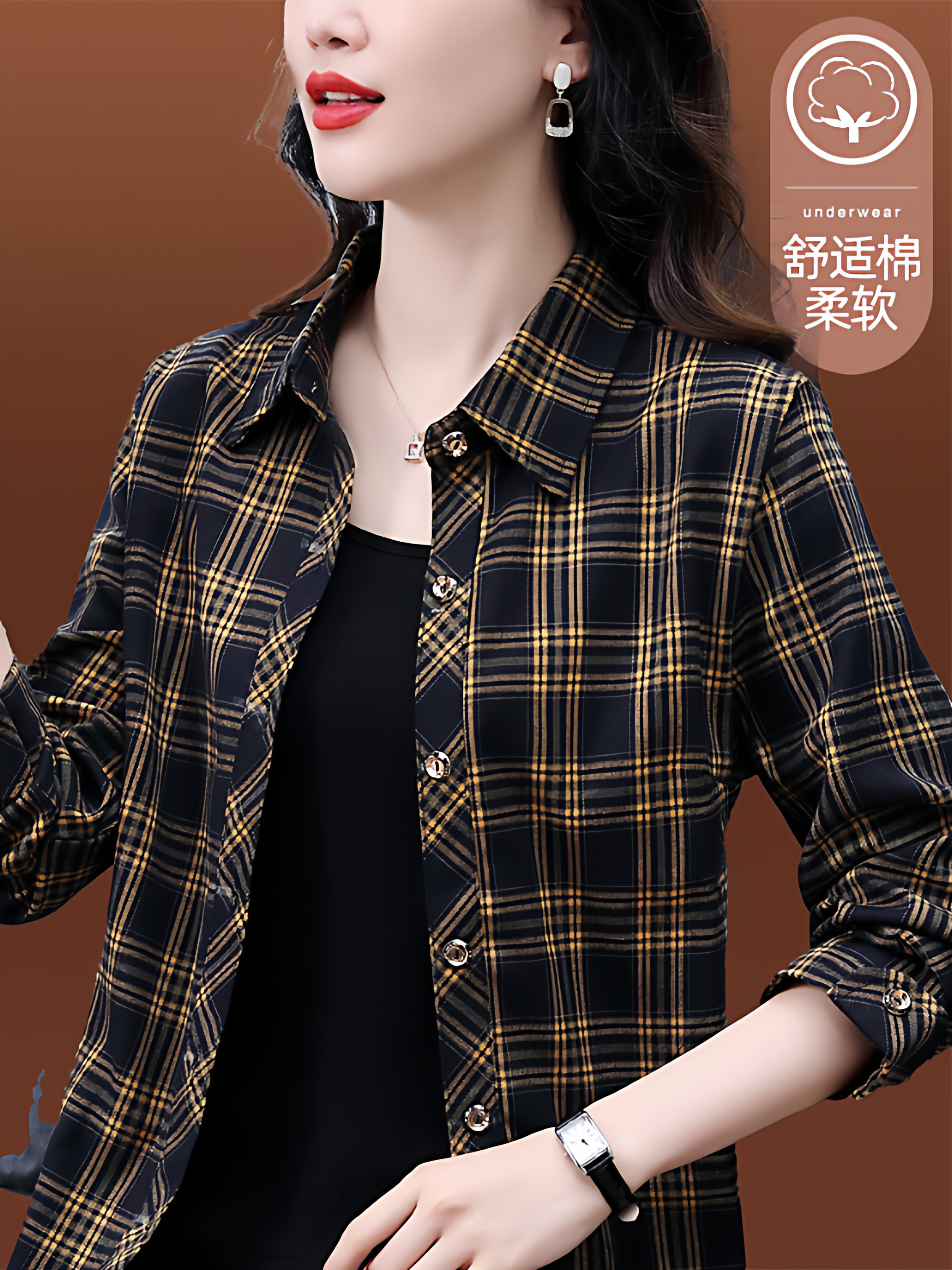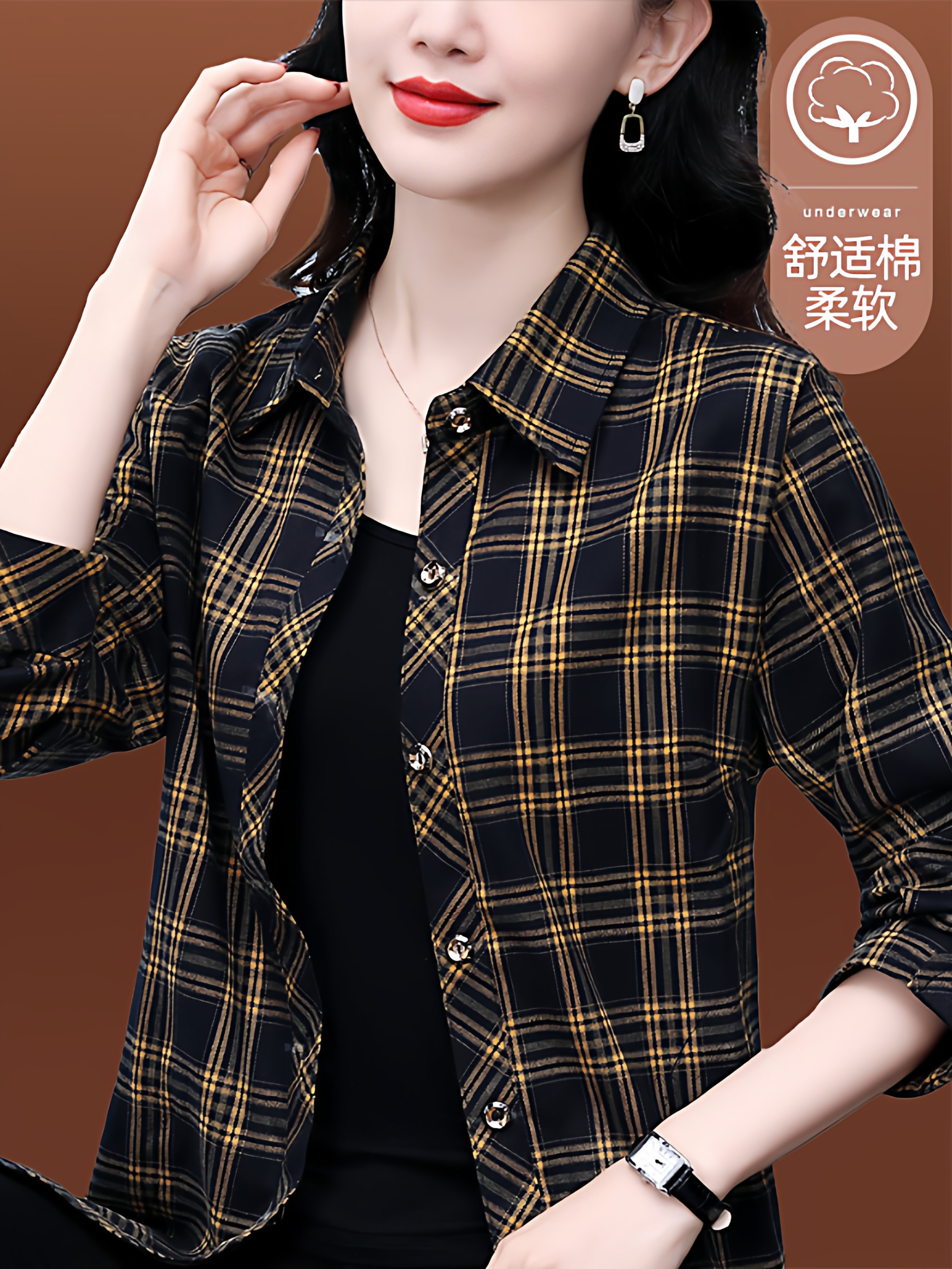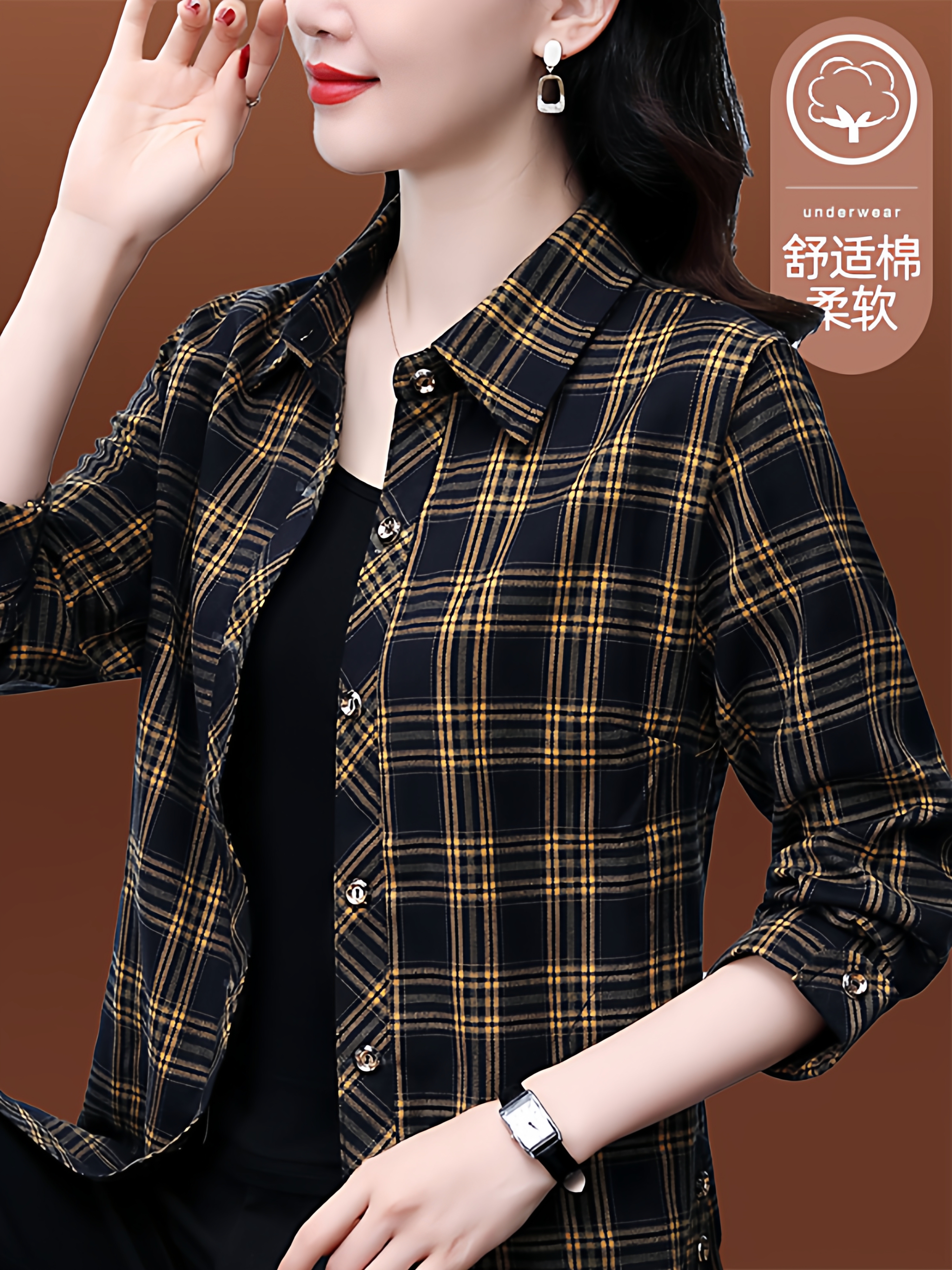Plaid short coat women's spring and autumn outfit 2025 new autumn long-sleeved shirt middle-aged mother foreign style top shirt