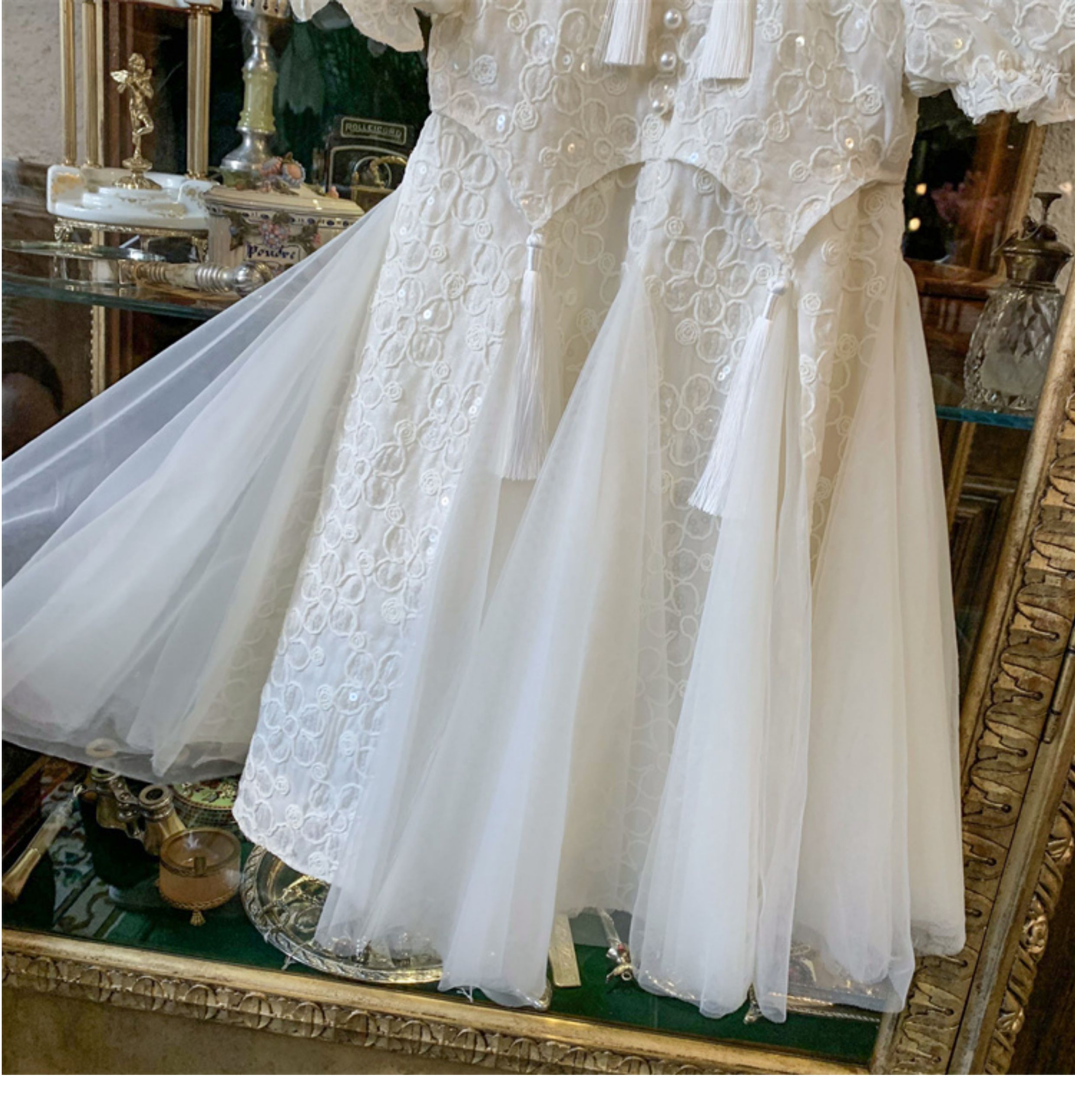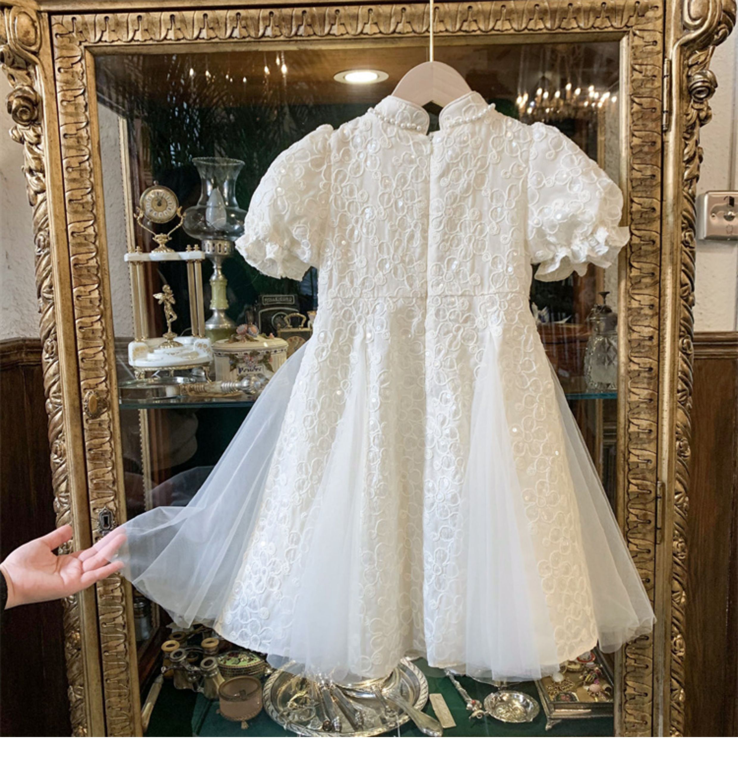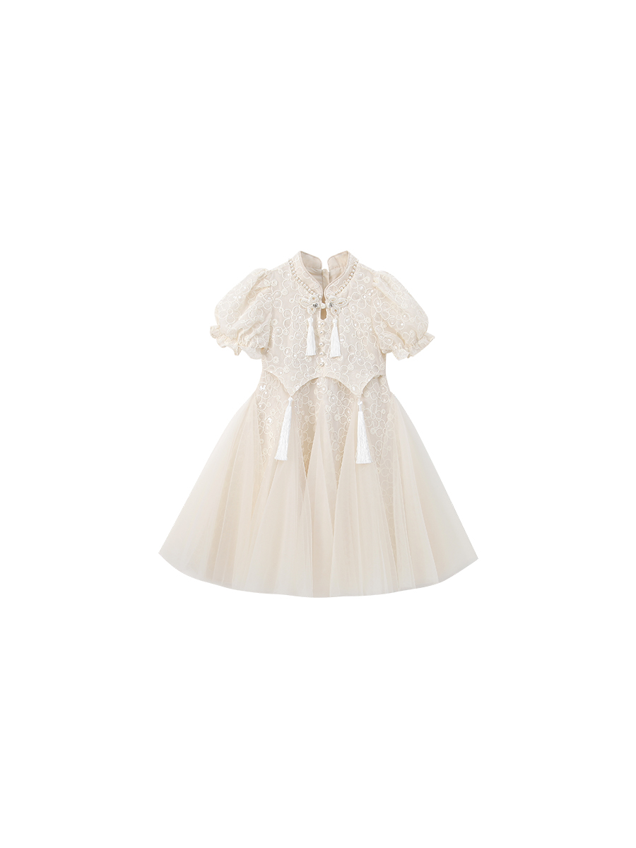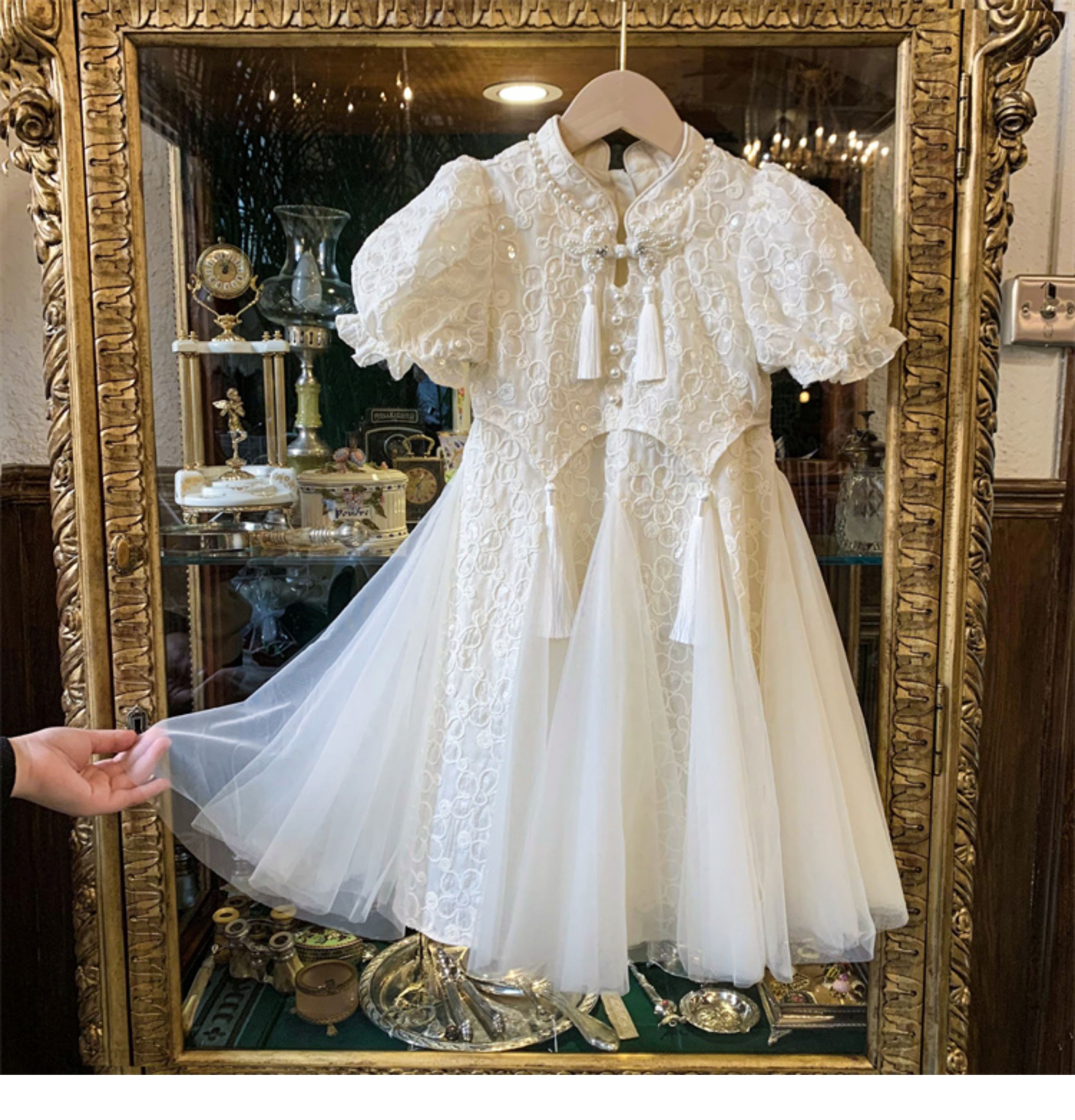 Girls Dress New Chinese Style Children's Hanfu Summer Dress 2025 New Girl Cheongsam Puff Sleeve Mesh Princess Dress