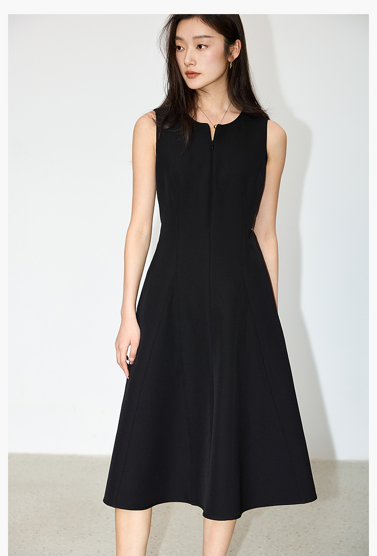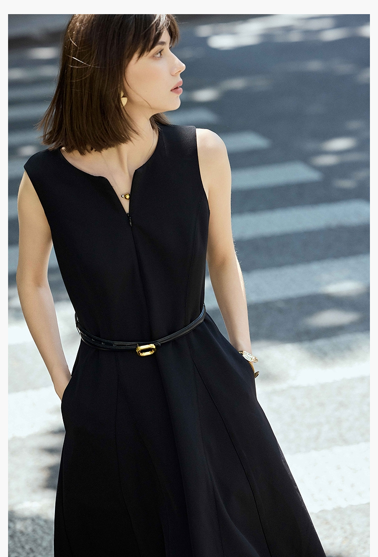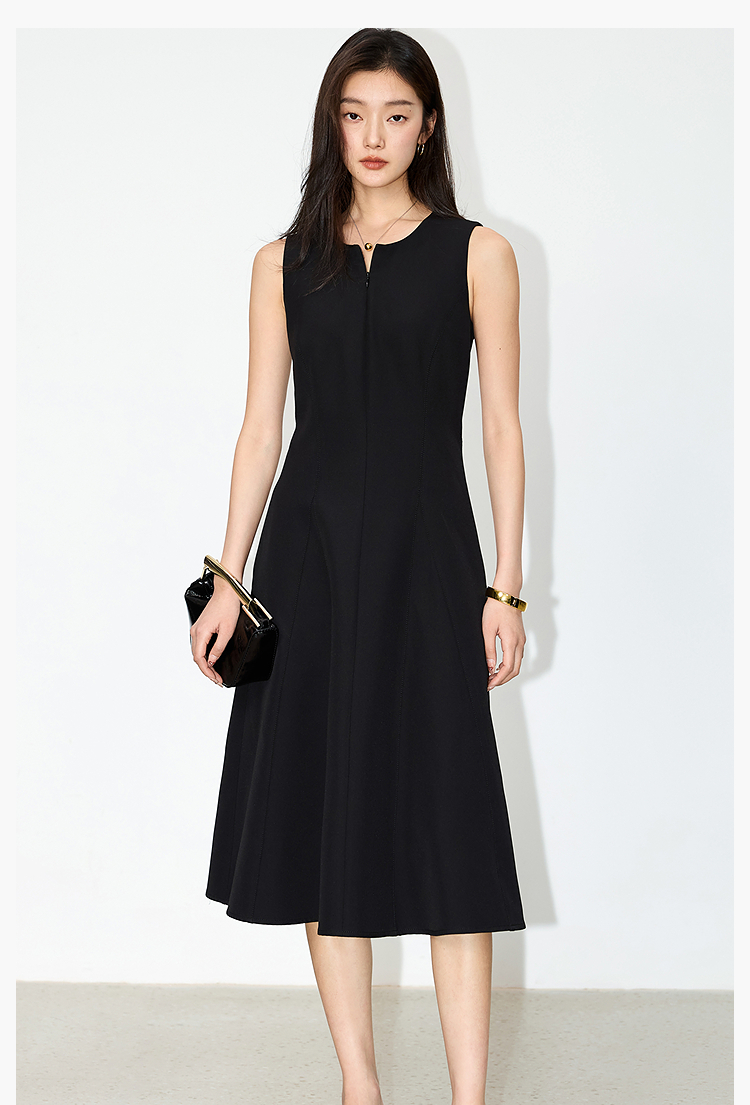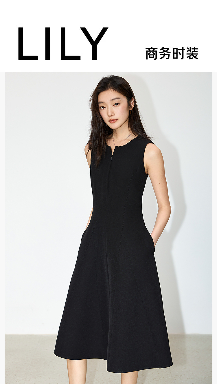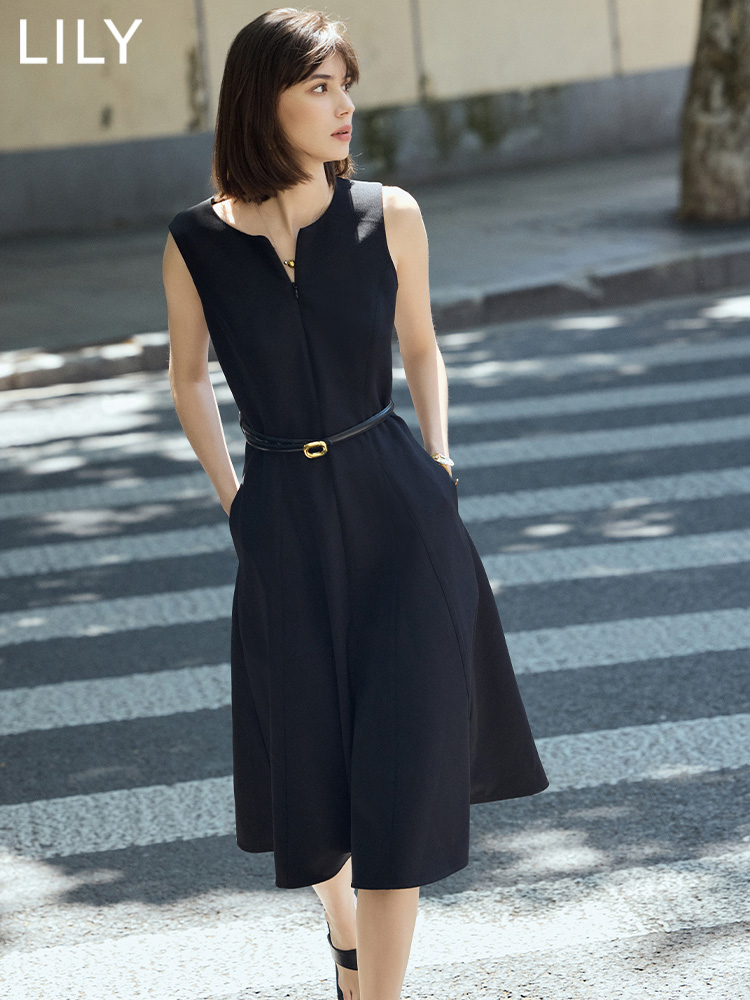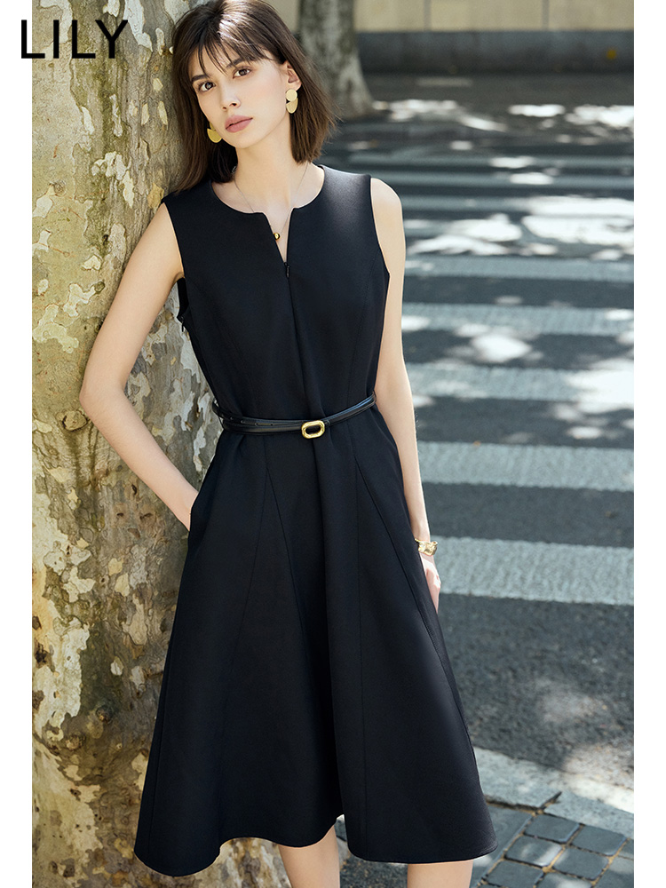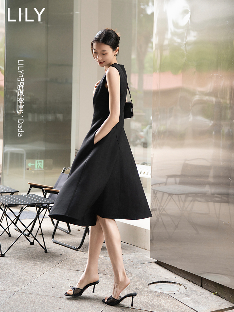 LILY's new women's temperament commuter style retro elegant and versatile slim sleeveless dress little black dress