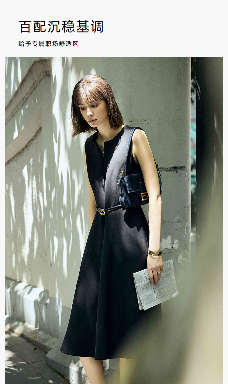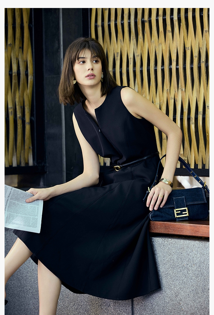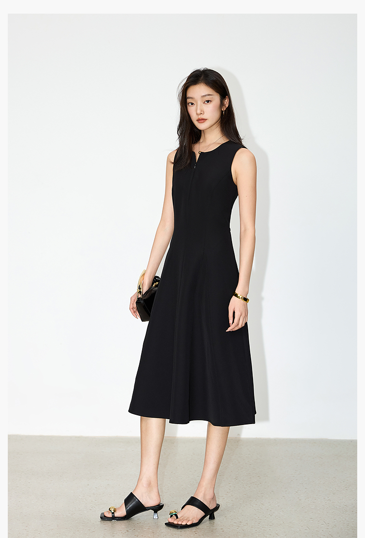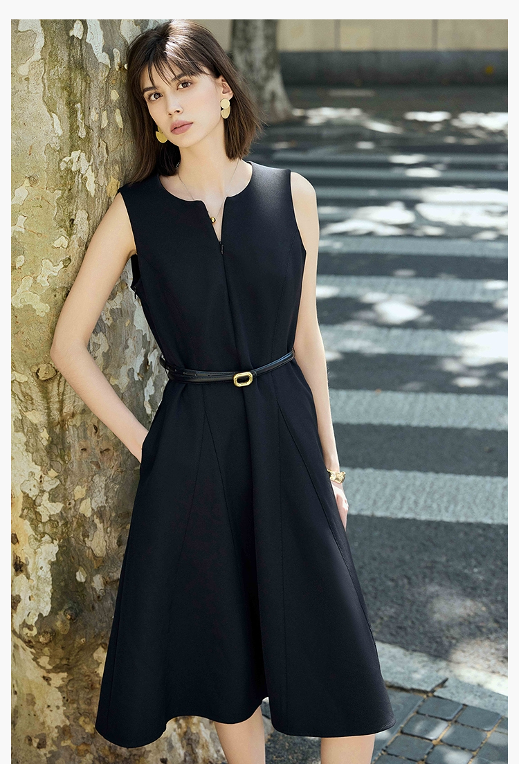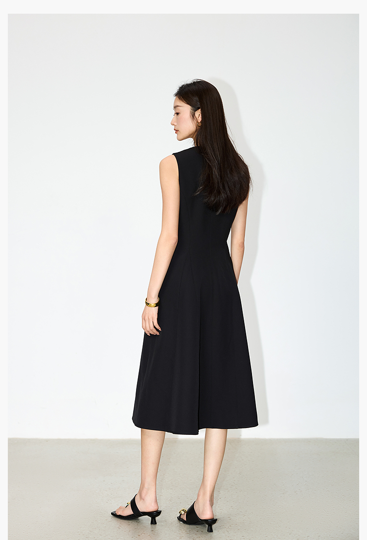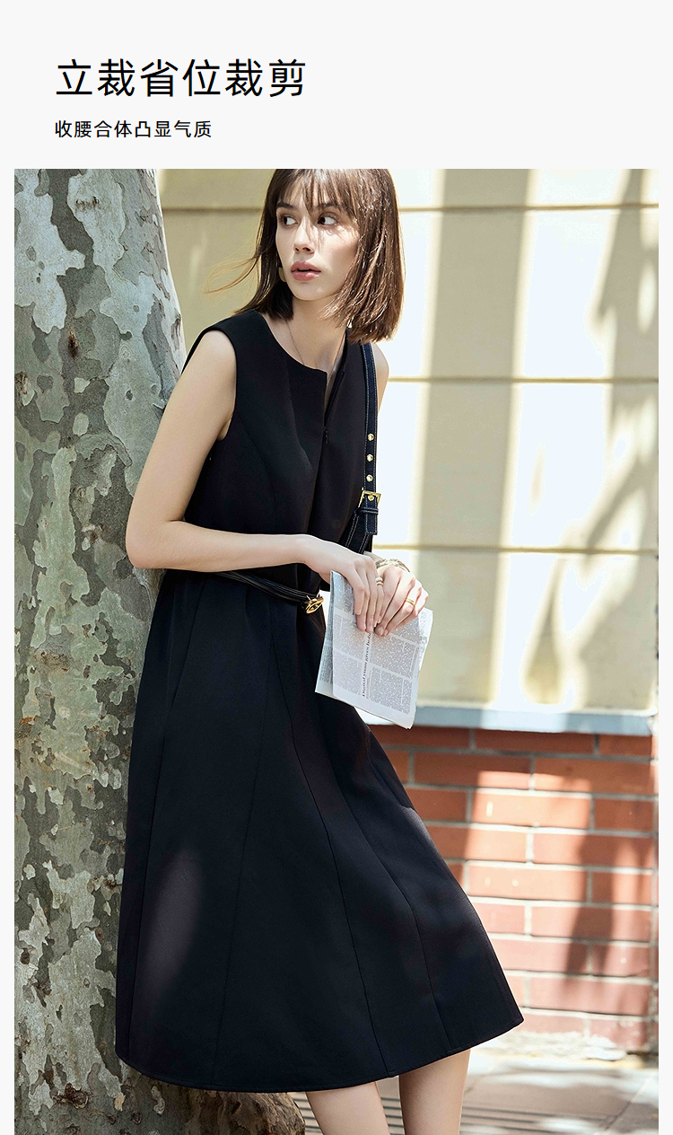 LILY's new women's temperament commuter style retro elegant and versatile slim sleeveless dress little black dress
