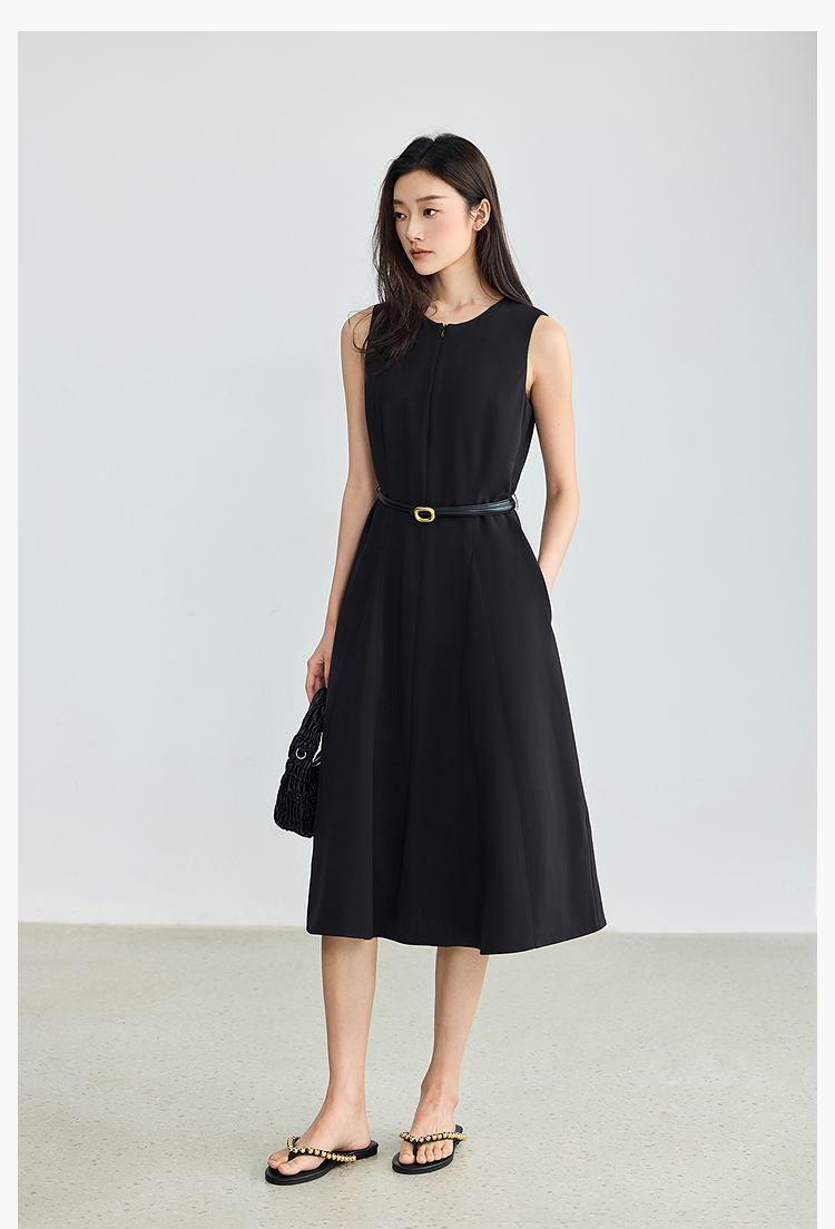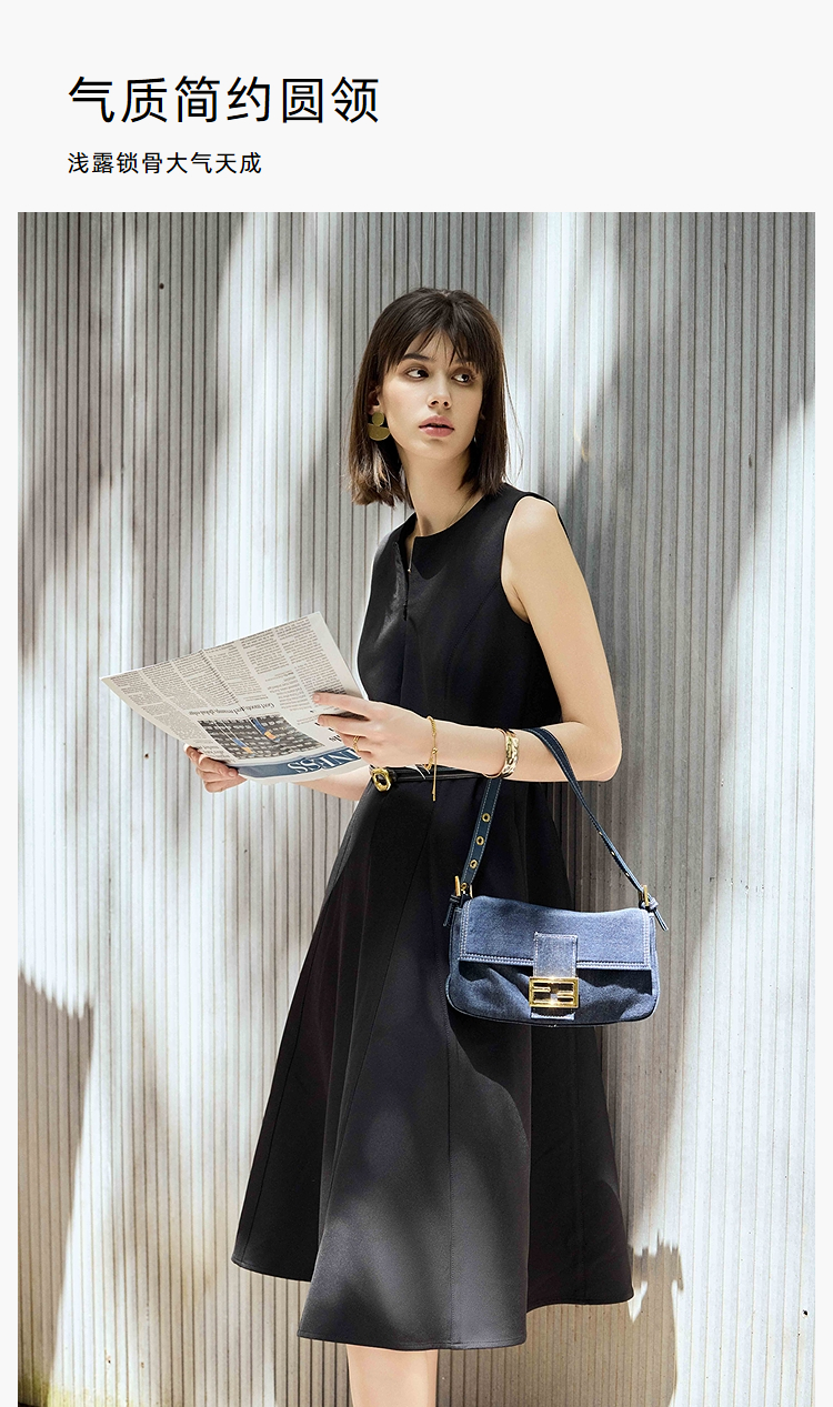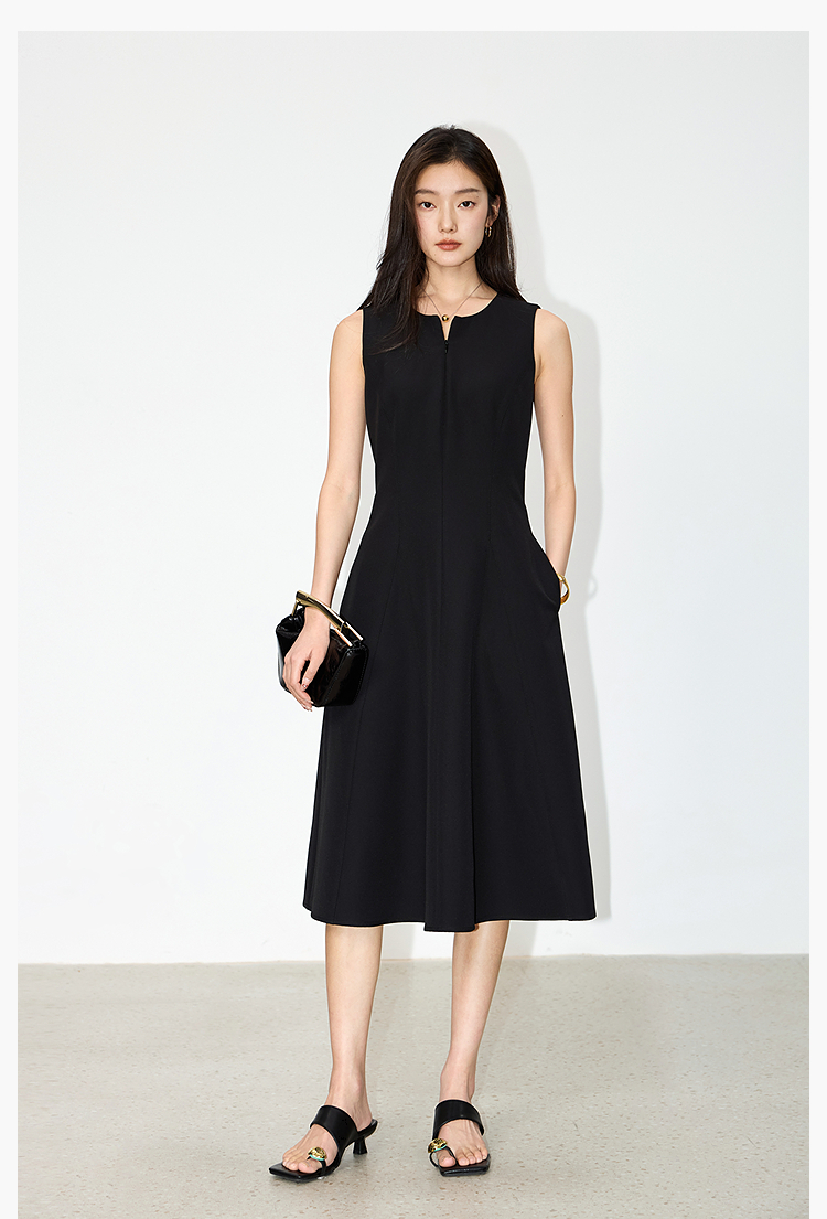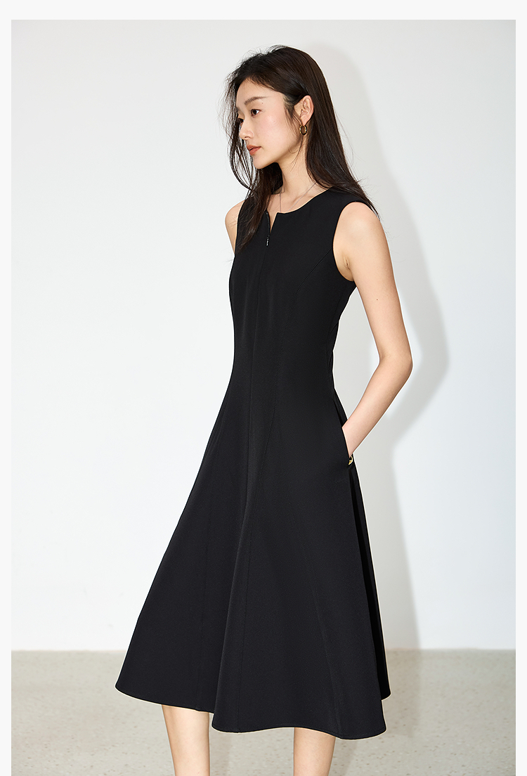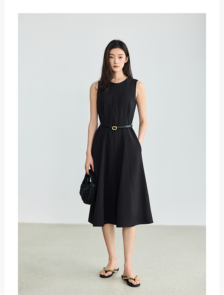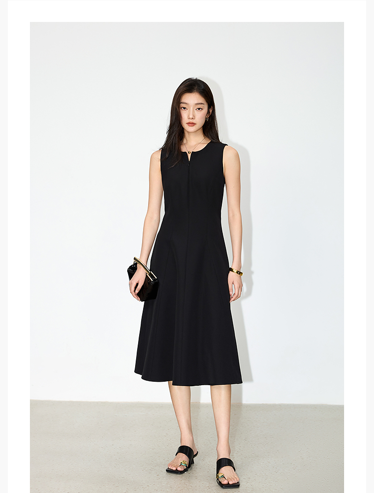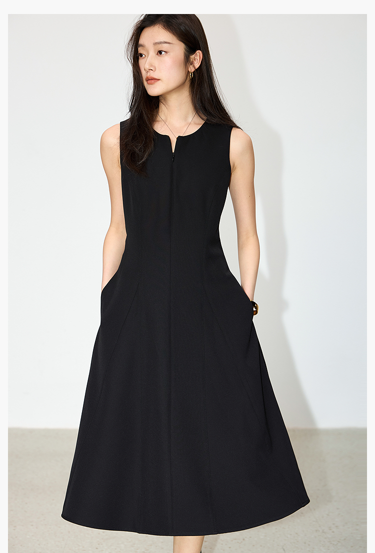 LILY's new women's temperament commuter style retro elegant and versatile slim sleeveless dress little black dress