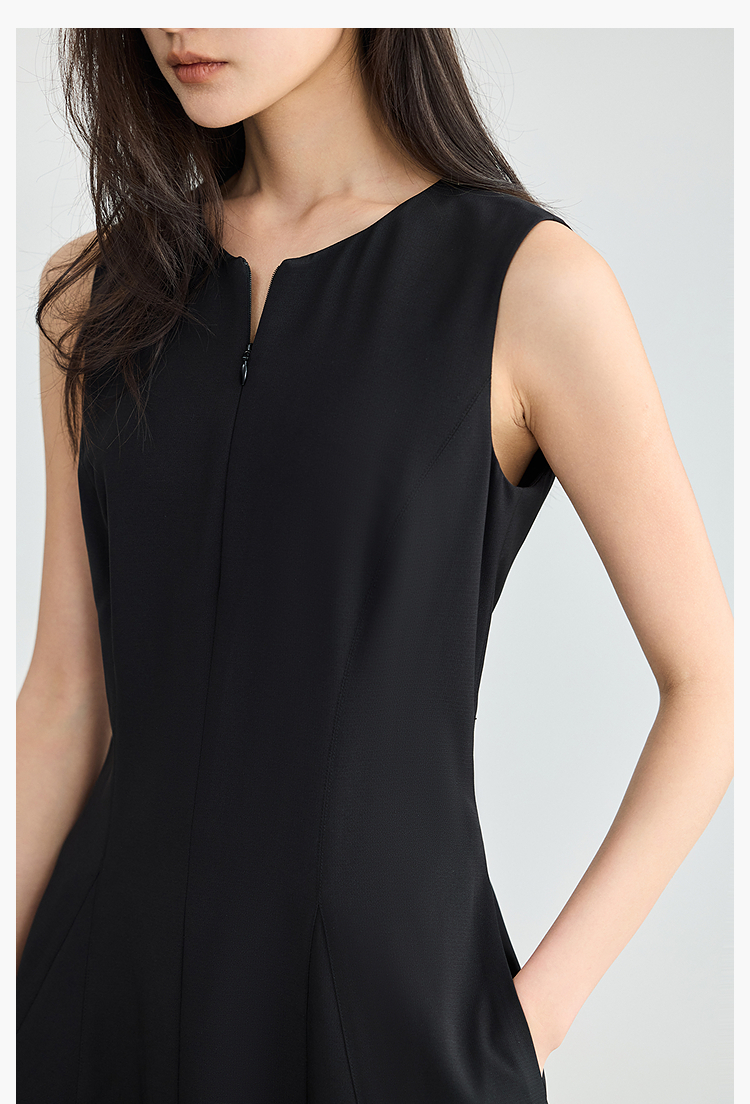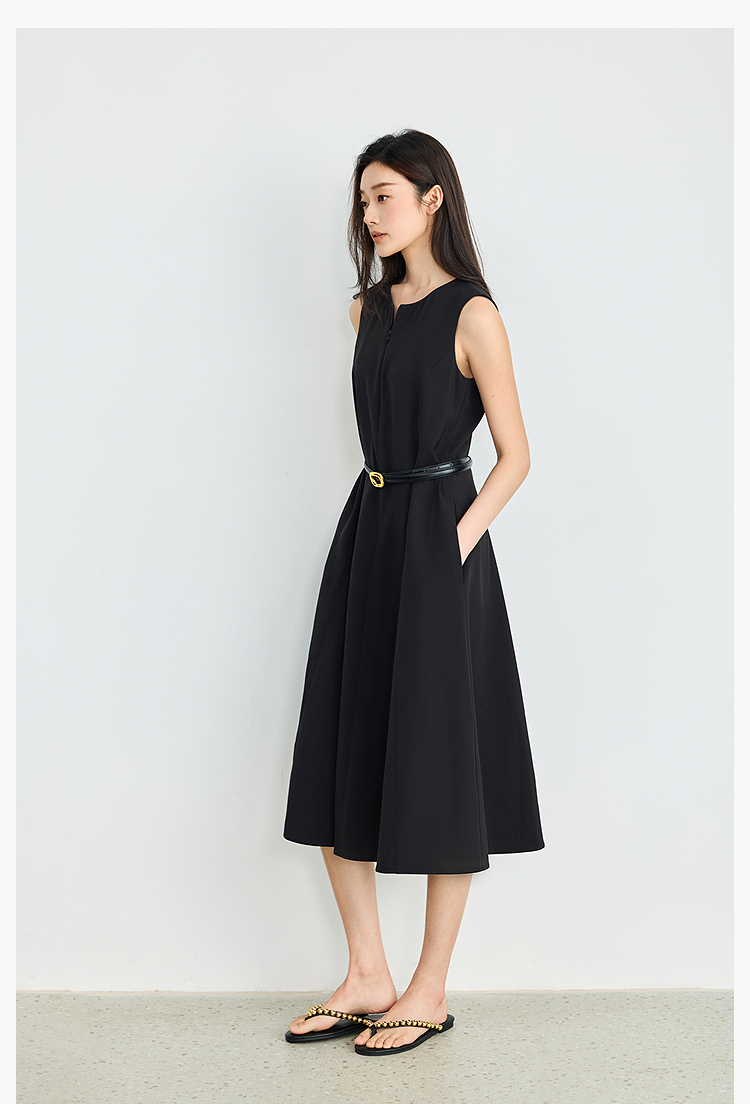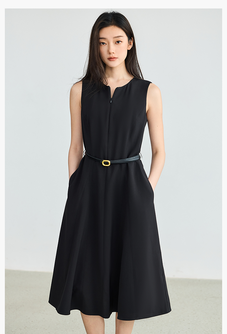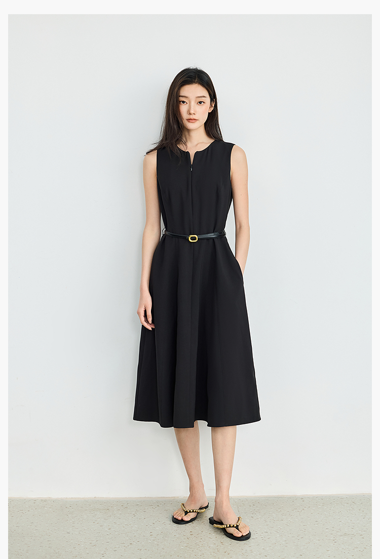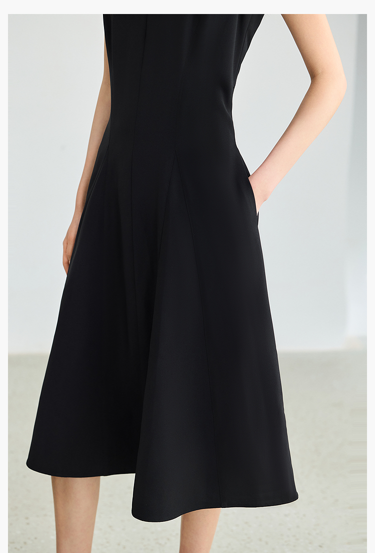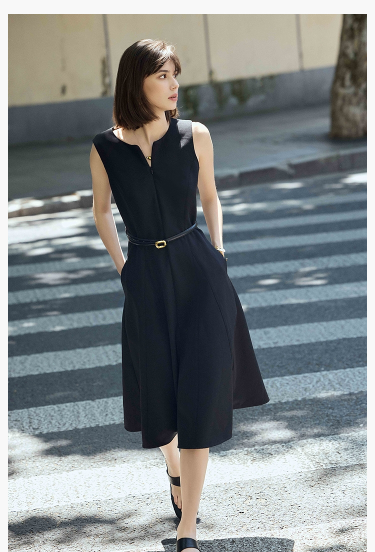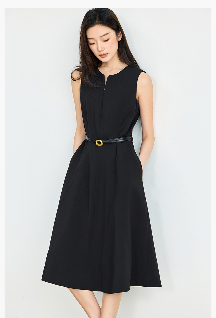 LILY's new women's temperament commuter style retro elegant and versatile slim sleeveless dress little black dress